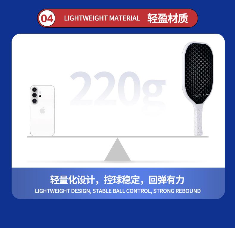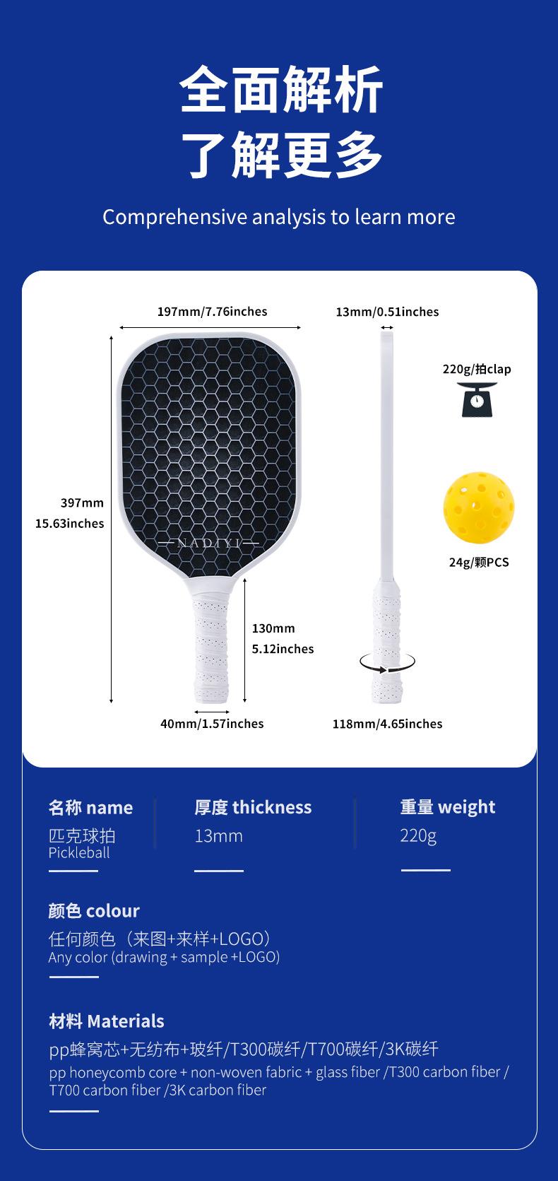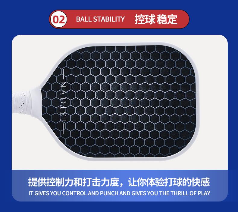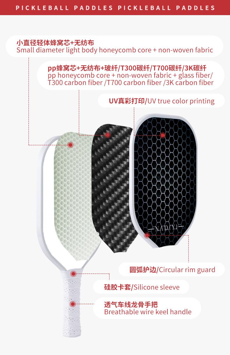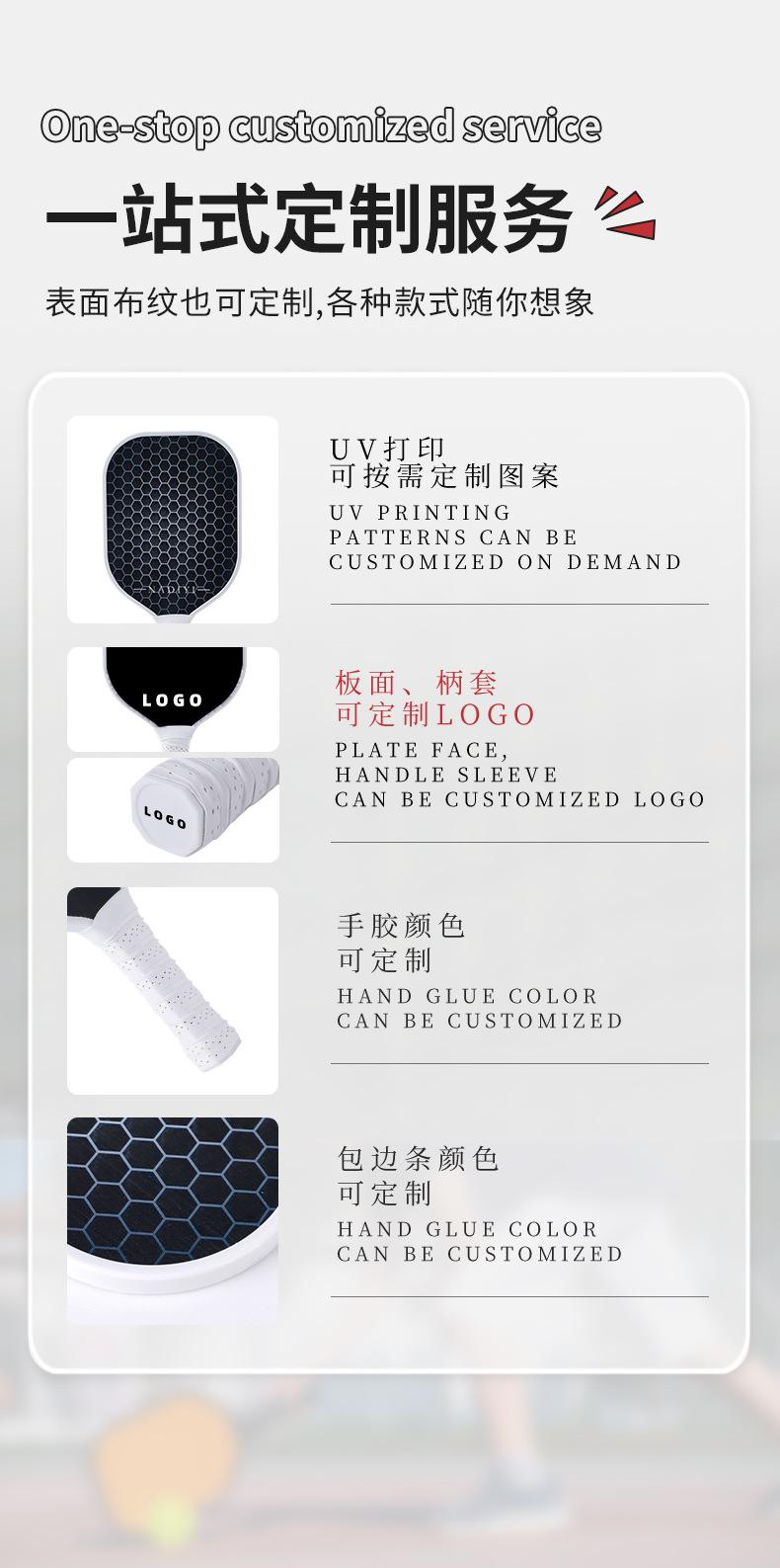 Raqueta de pickleball de fibra de carbono transfronteriza, combinación de traje de competición, raqueta de fibra de vidrio con núcleo de panal de PP