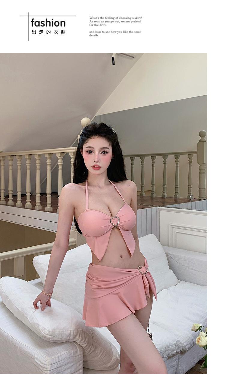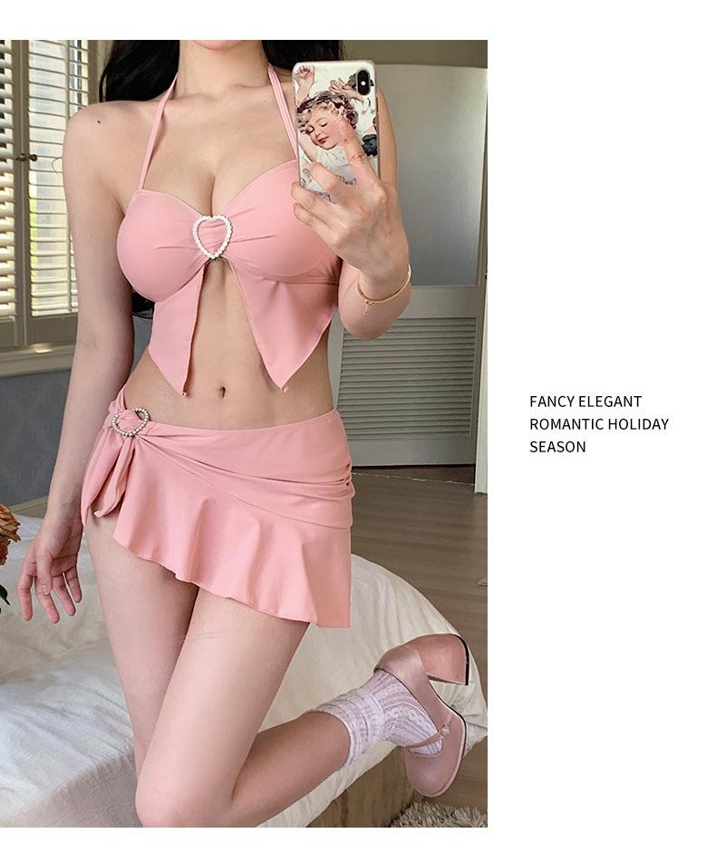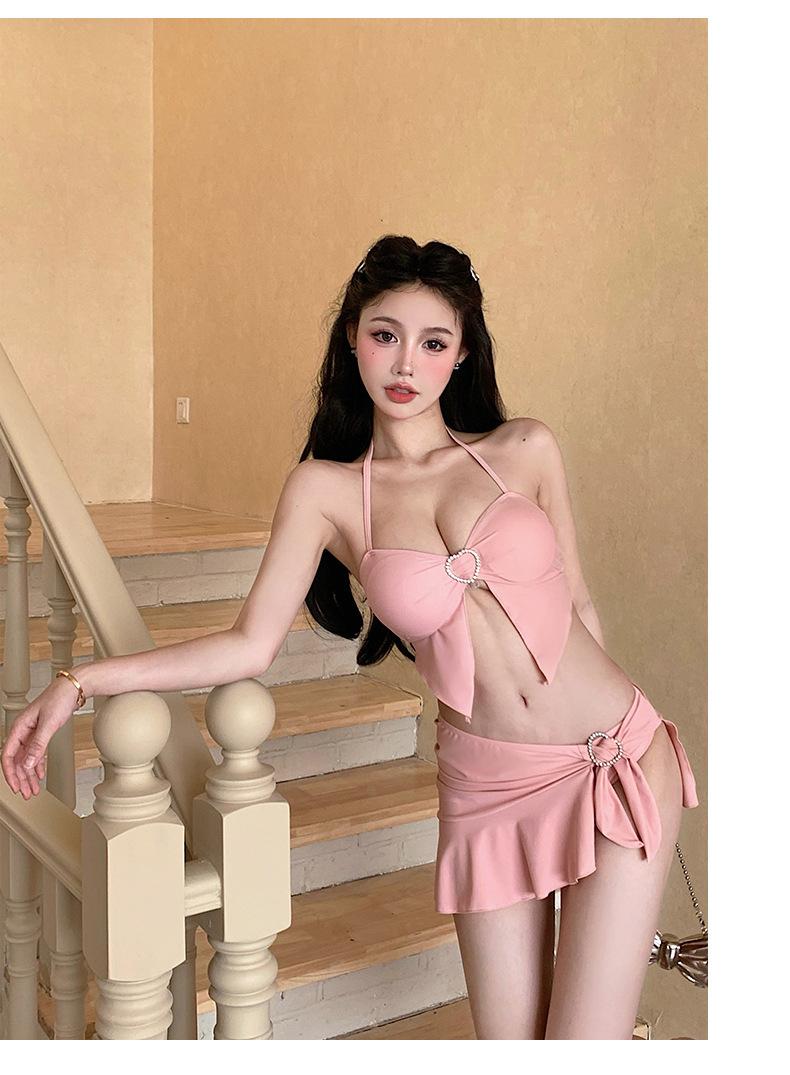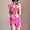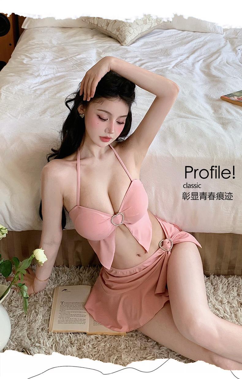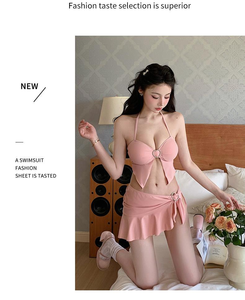 Traje de baño para mujer dulce con abertura, conjunto de tres piezas sexy para pecho pequeño, adelgazante, súper hada, verano, conservador, traje de baño para aguas termales, hada fan