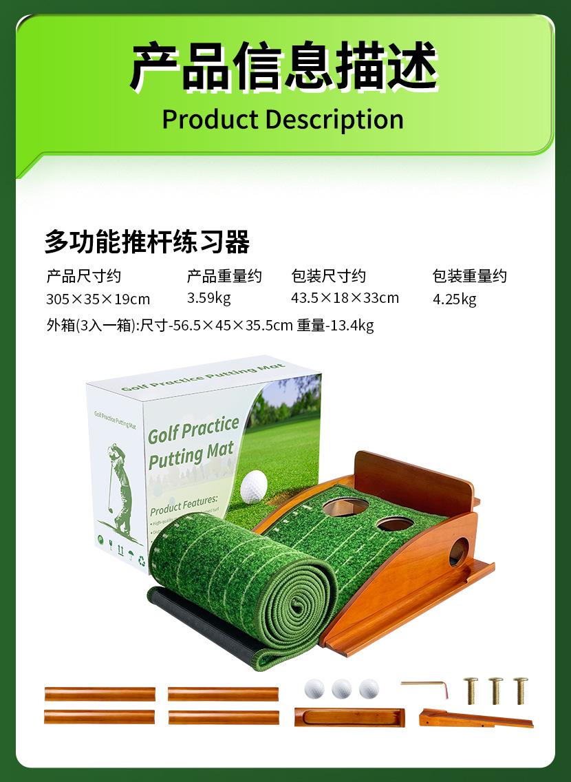Nuevo Ejercitador de Putting de Golf Removible de Pequeño Volumen Transfronterizo Entrenamiento en Interiores Madera Maciza Almohadilla de Putting Verde
