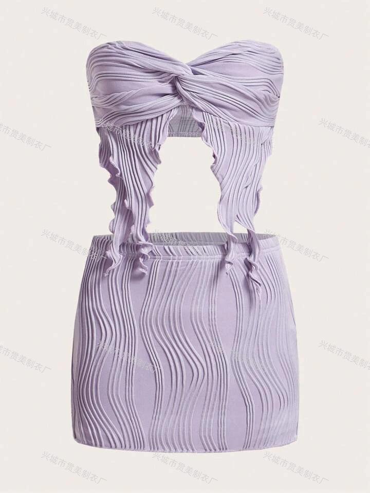 [5 colores] Nuevo traje de baño con abertura en el pecho y lazo de viento Pure Desire para mujer, bikini de vacaciones con falda a la cadera y bolsa de hadas súper ins