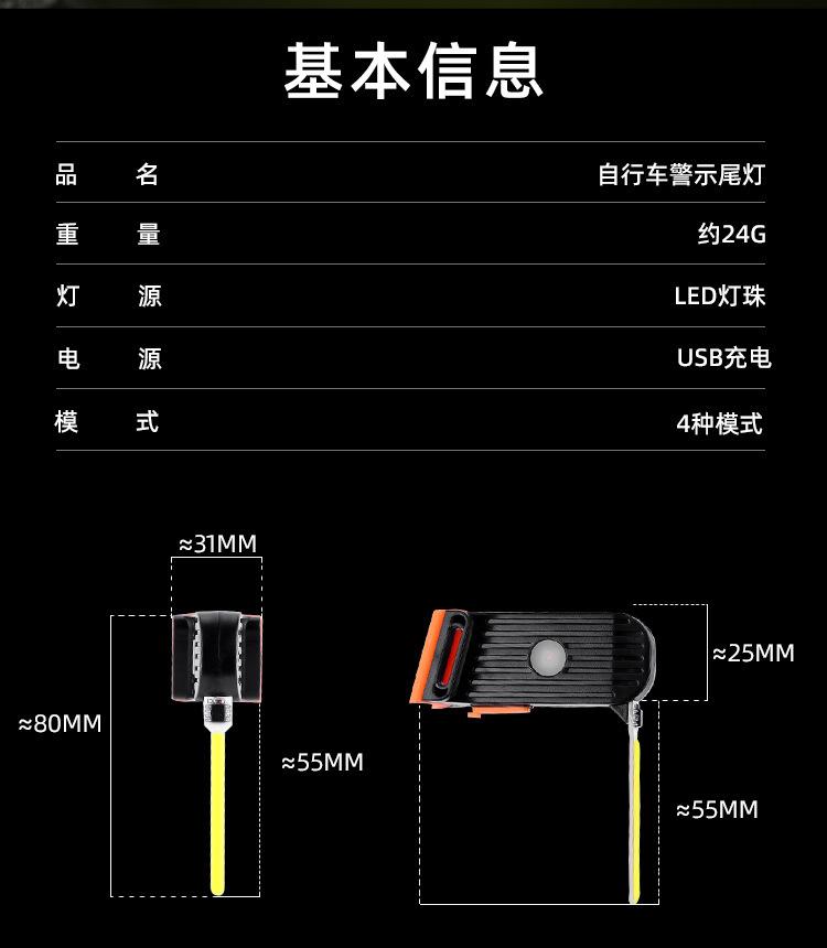 Luz trasera de bicicleta, luz trasera para agua corriente, carga USB, luz trasera creativa para bicicleta de montaña, luz trasera de advertencia para bicicleta de carretera