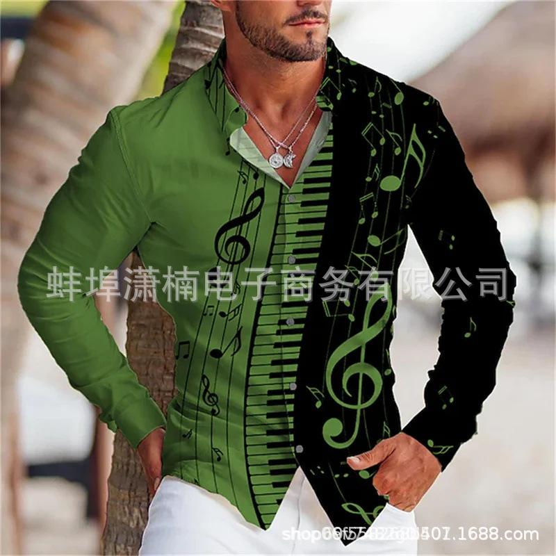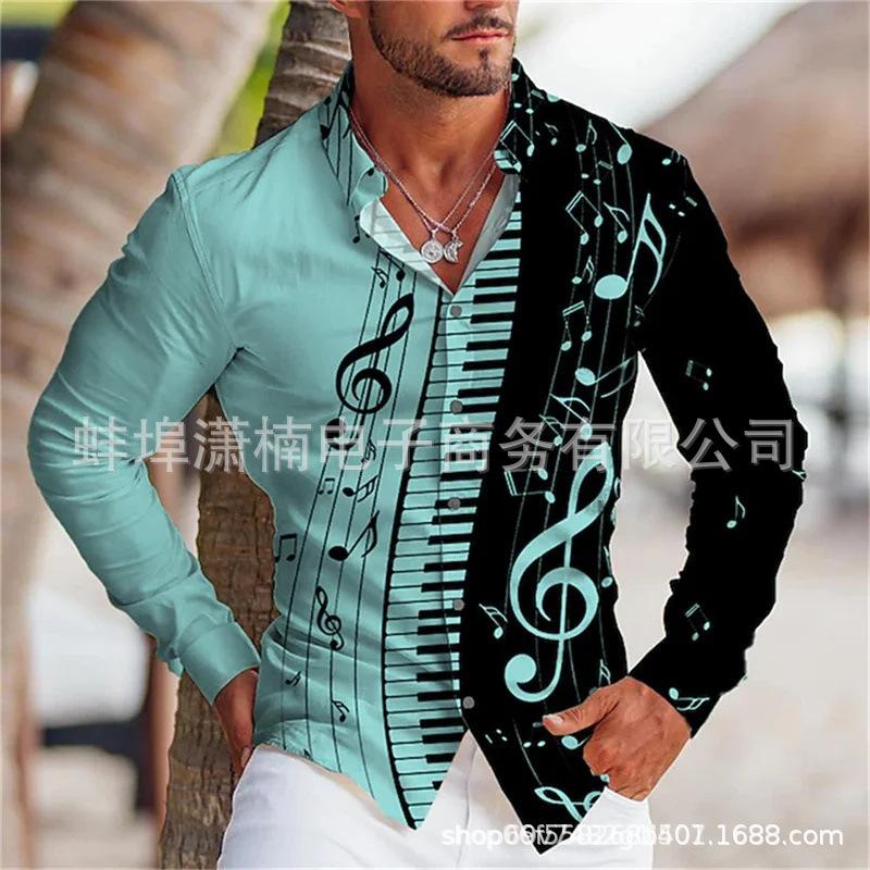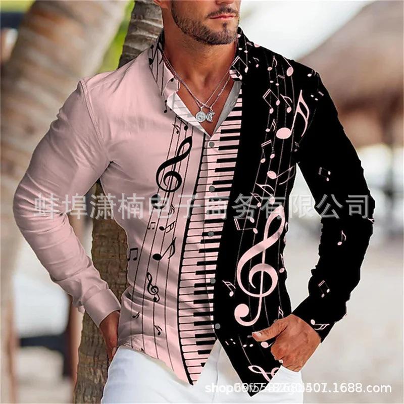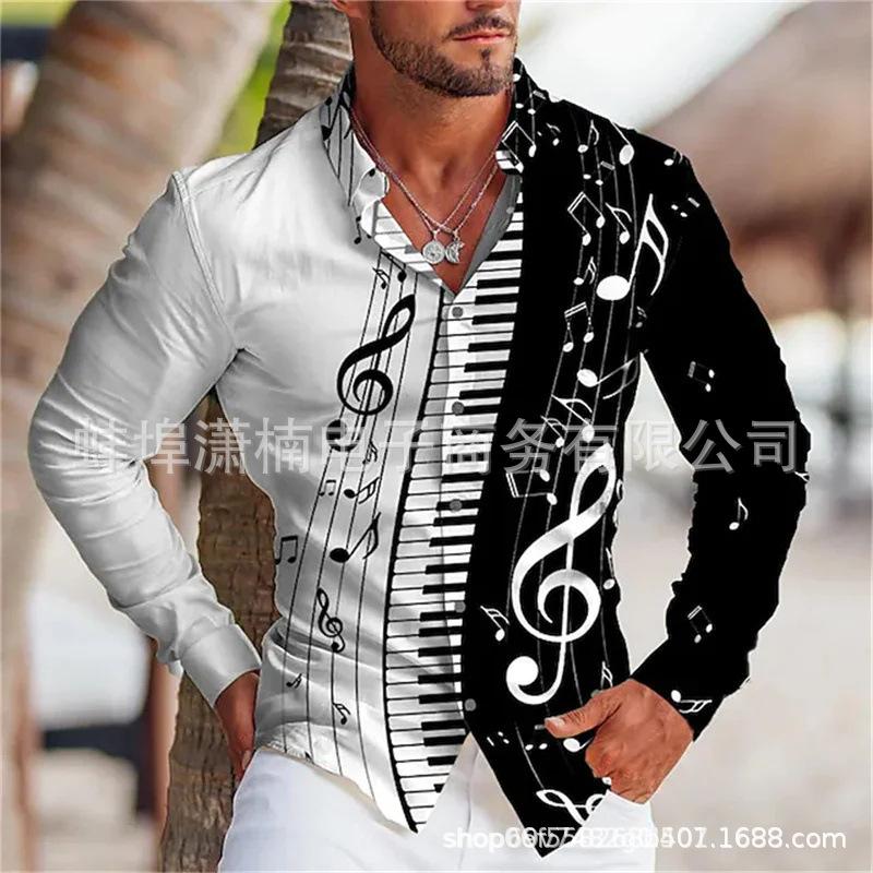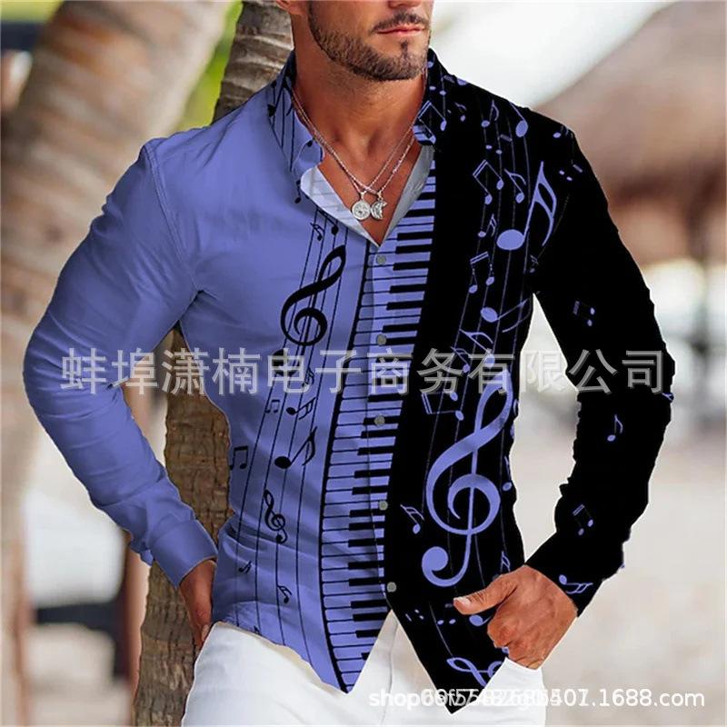 2024 Comercio Exterior Transfronterizo Nueva Camisa de Manga Larga para Jóvenes Europeos y Americanos para Hombre Estampado 3D Casual Ajustada Estampado Moda Masculina