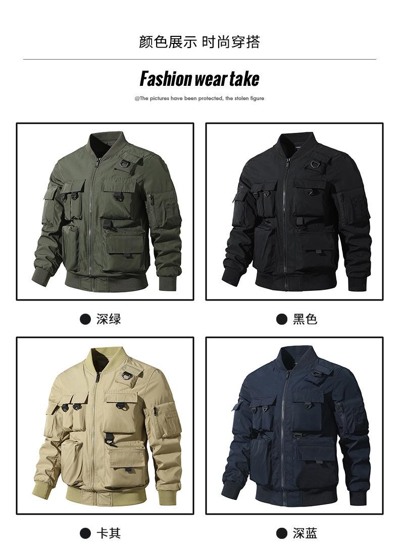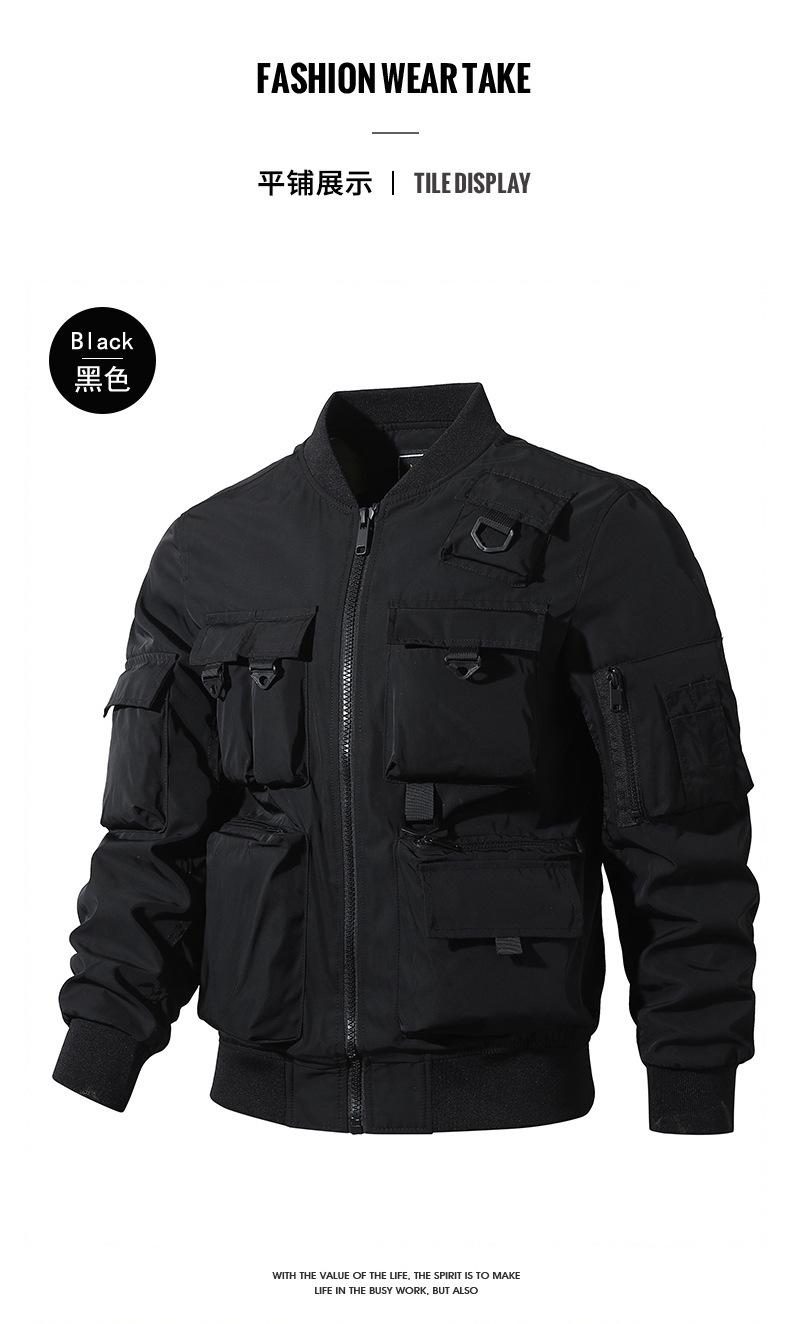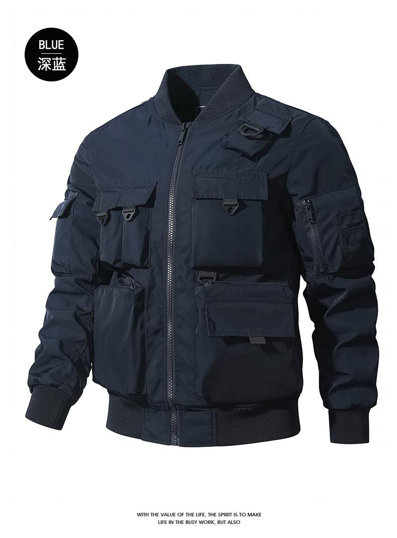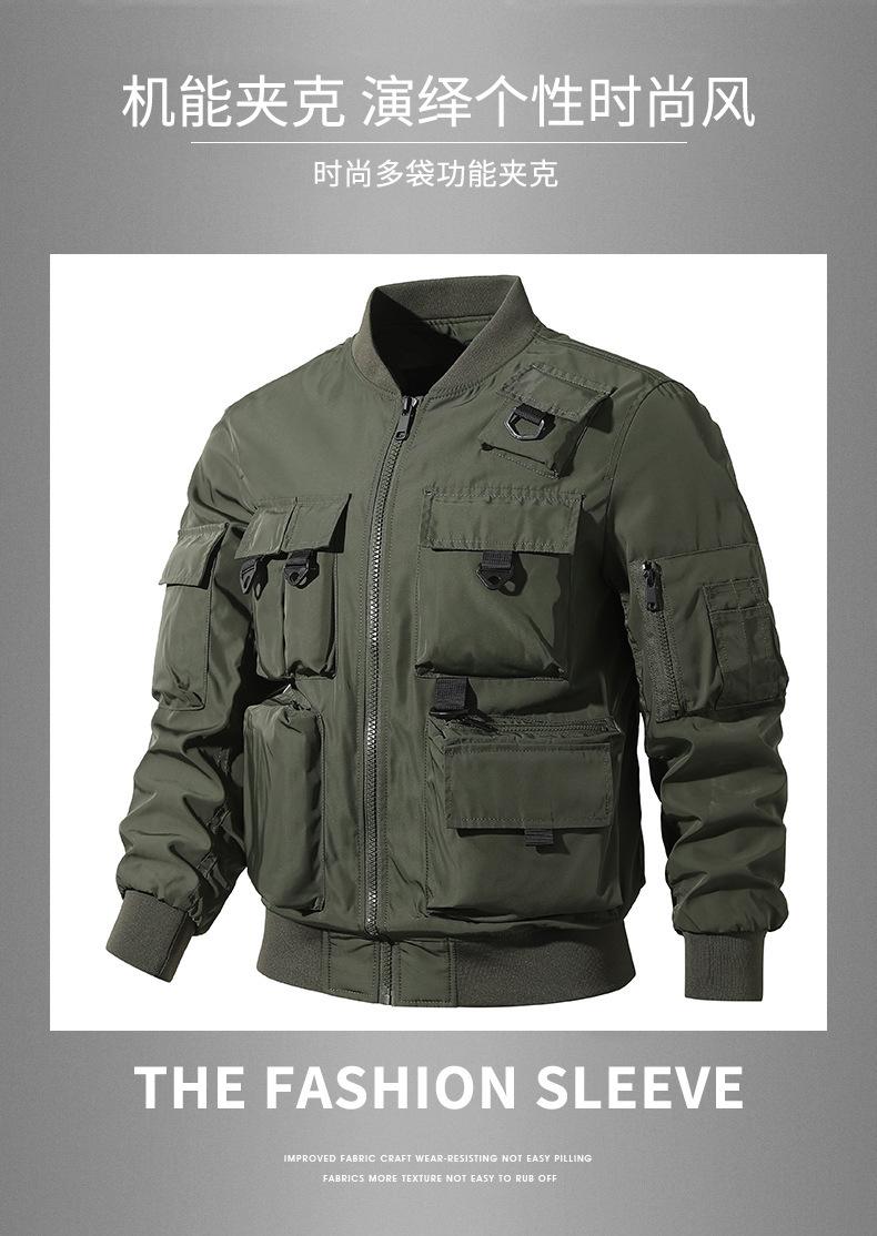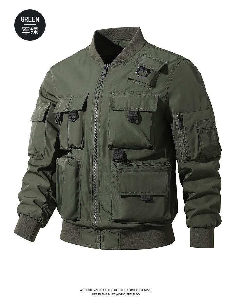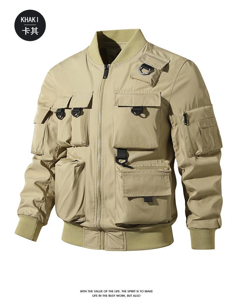 Chaqueta bomber para hombre, estilo béisbol retro americano, chaqueta de trabajo multibolsillos, chaqueta funcional, chaqueta de carga superior de tres pruebas