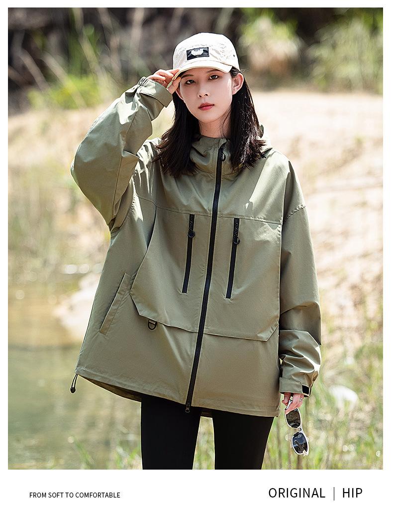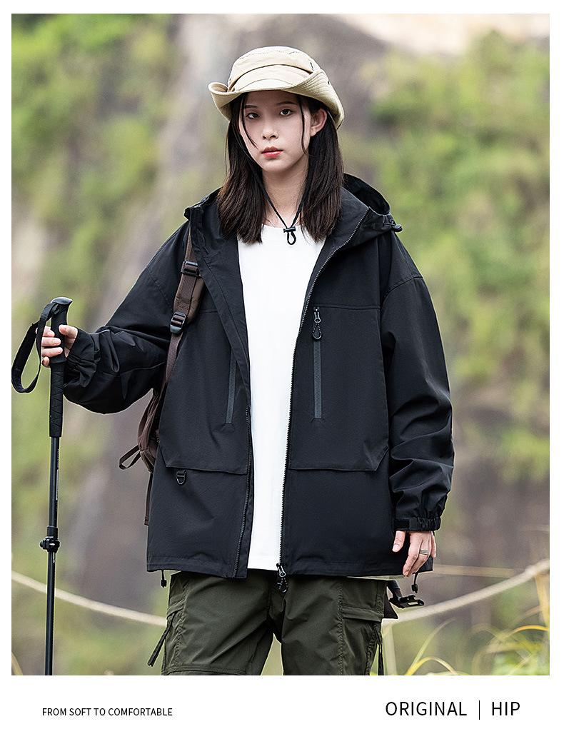 Chaqueta con capucha para exteriores de montaña para hombre, otoño, nueva, impermeable, resistente al viento, holgada, informal, de color sólido, con cremallera