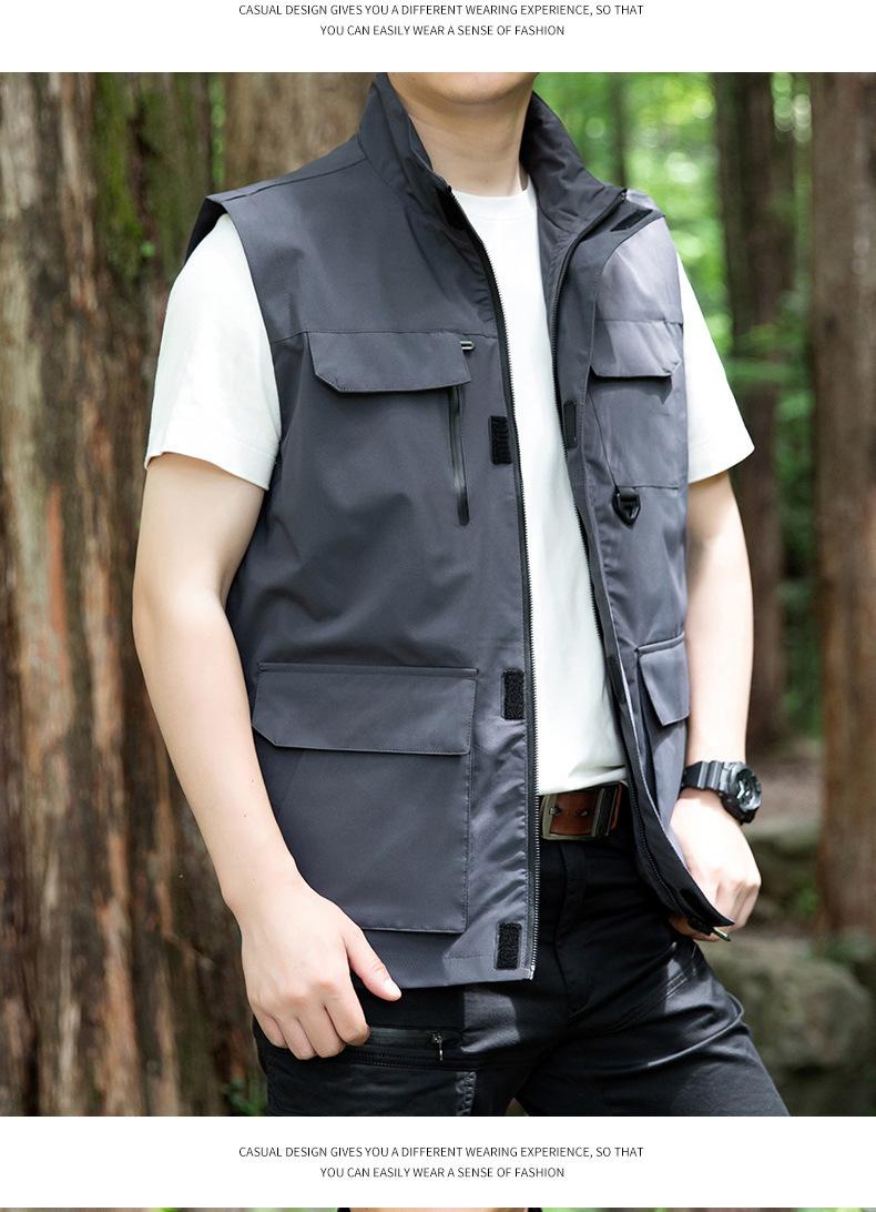 Chaleco informal holgado de verano para hombre, con múltiples bolsillos, talla grande, para exteriores