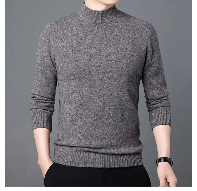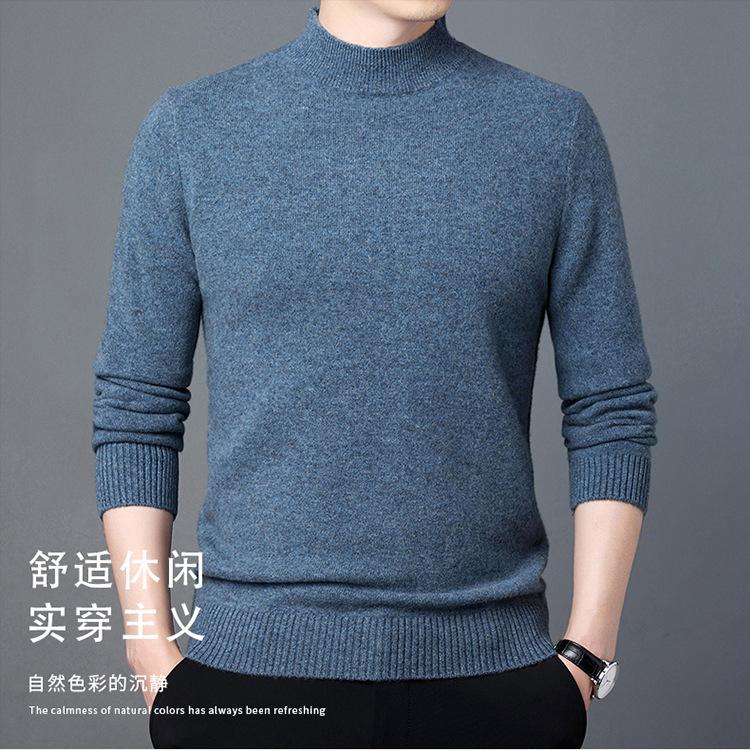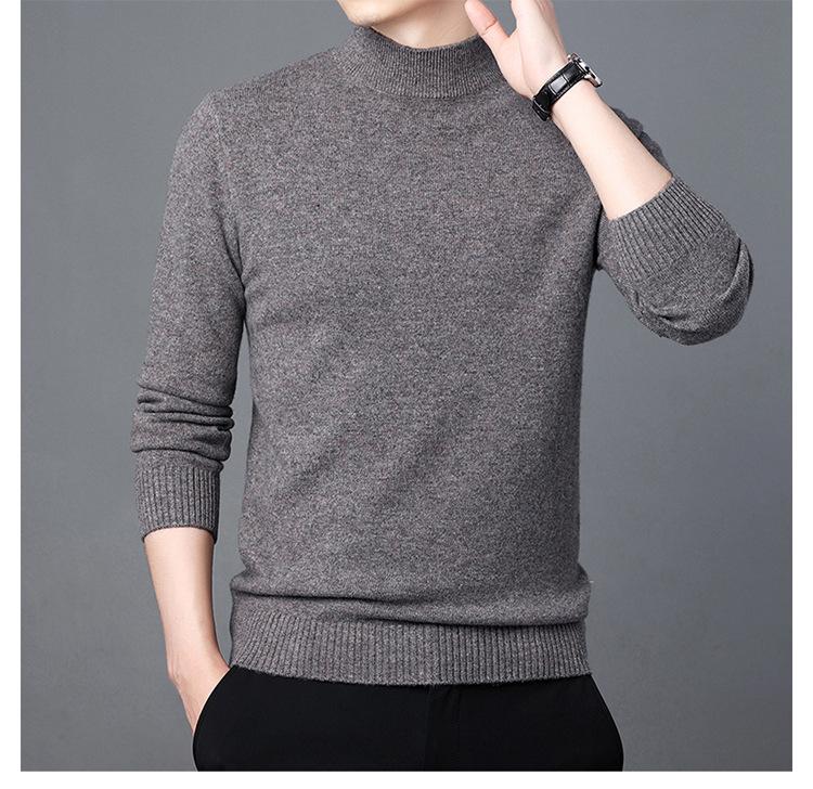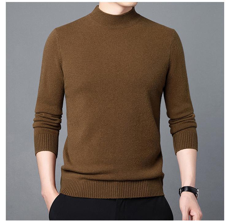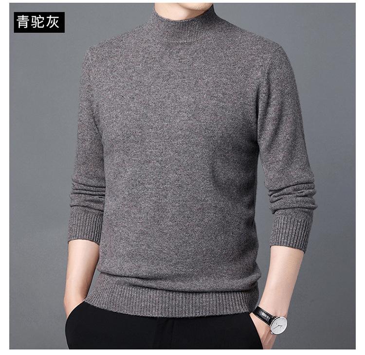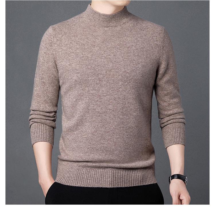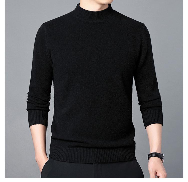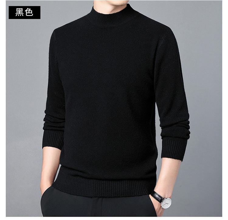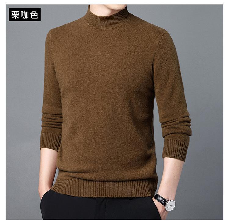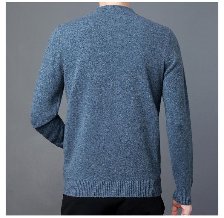 Suéter de Lana para Hombre Cuello Redondo Cuello Alto Otoño e Invierno Nuevo Color Sólido Manga Larga Camiseta Base para Hombre Casual de Mediana Edad Suéter de Punto para Hombre