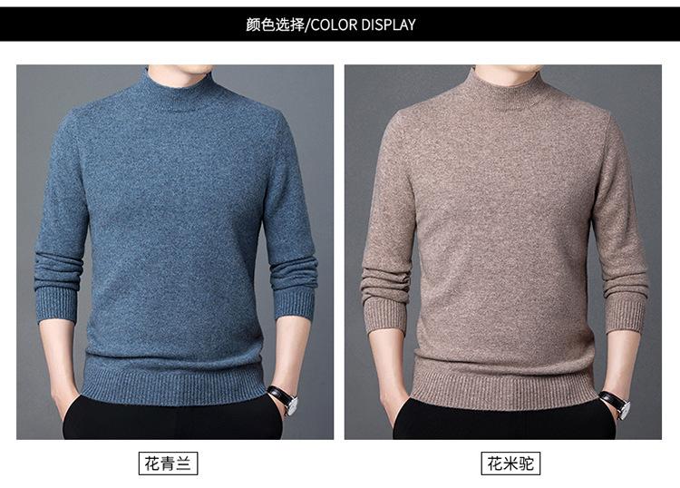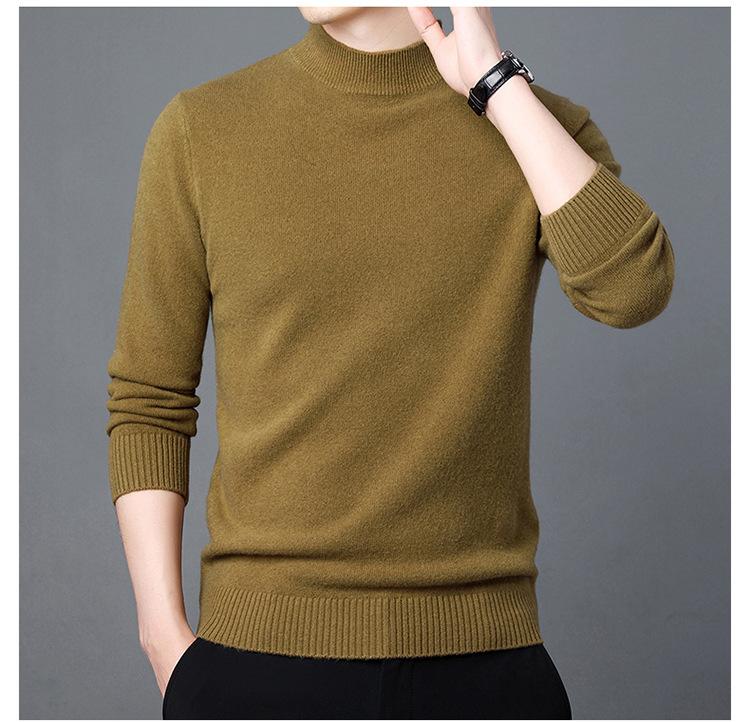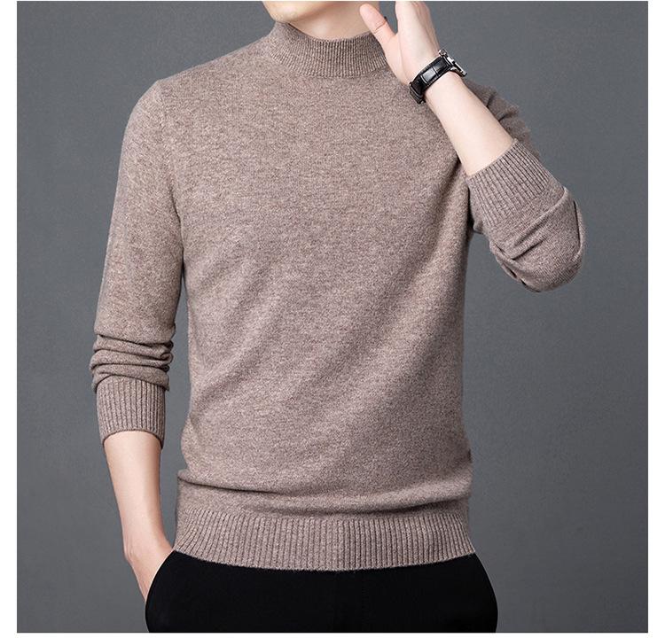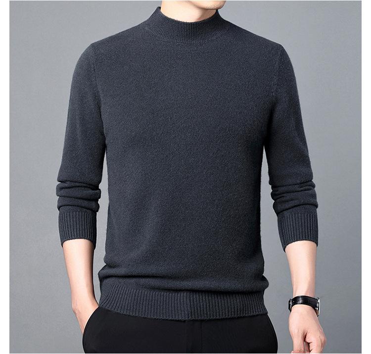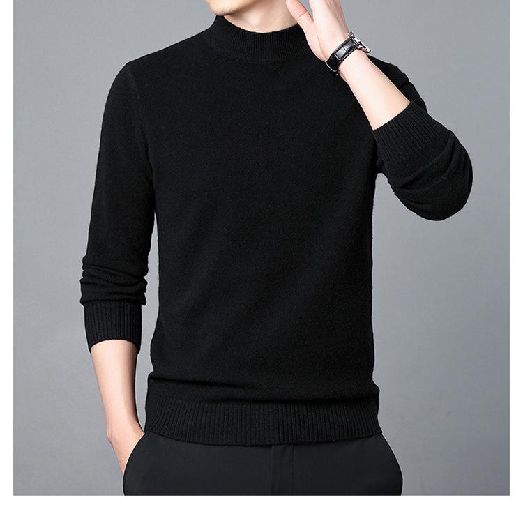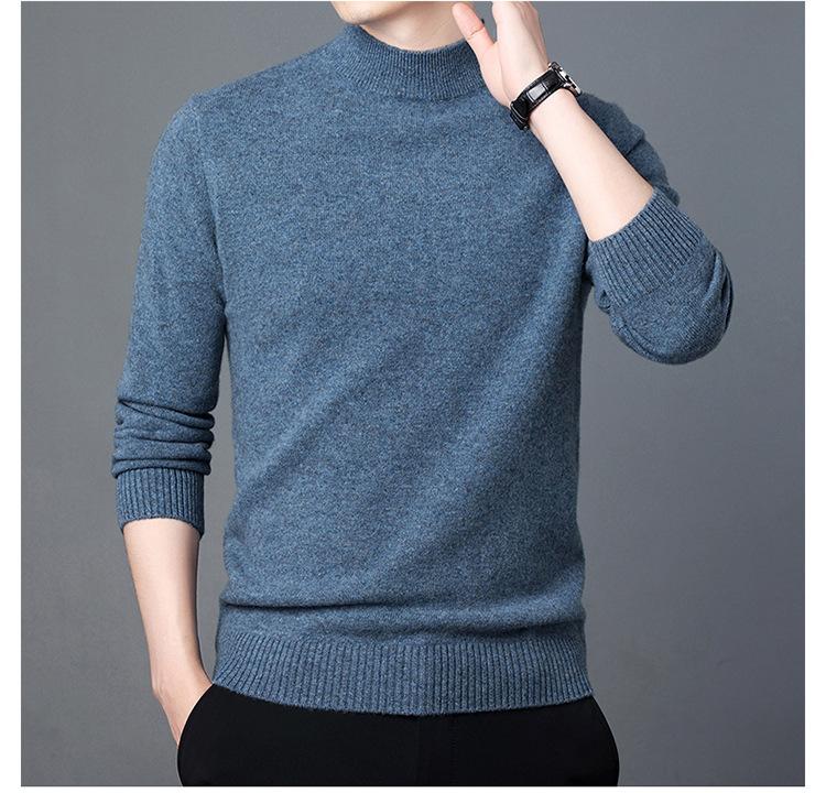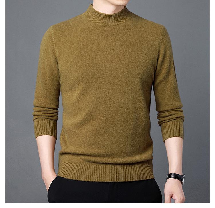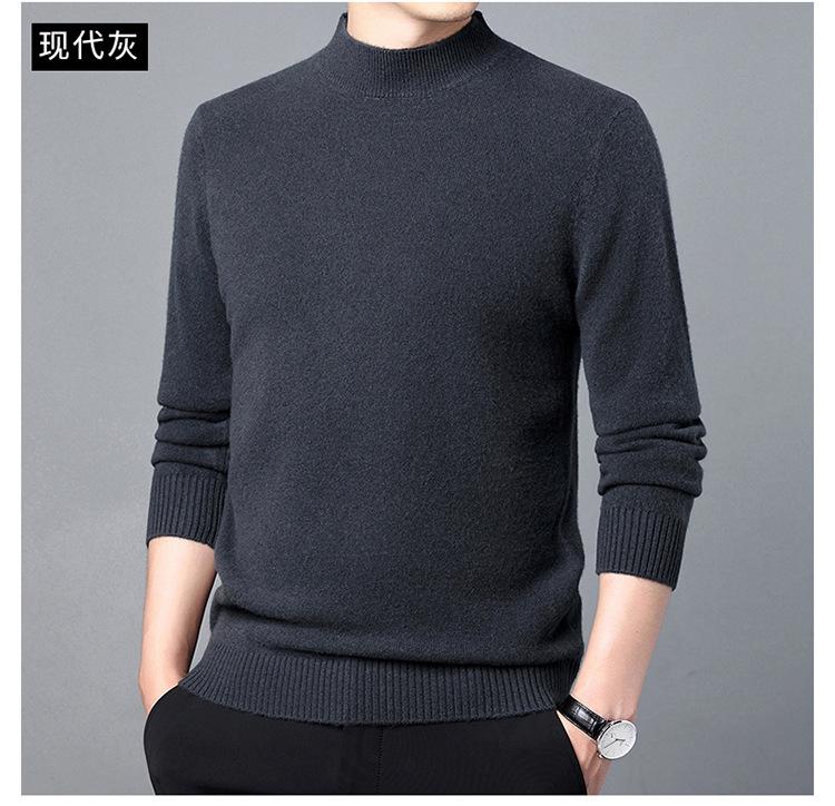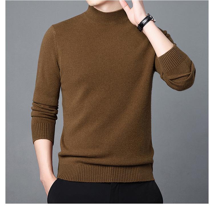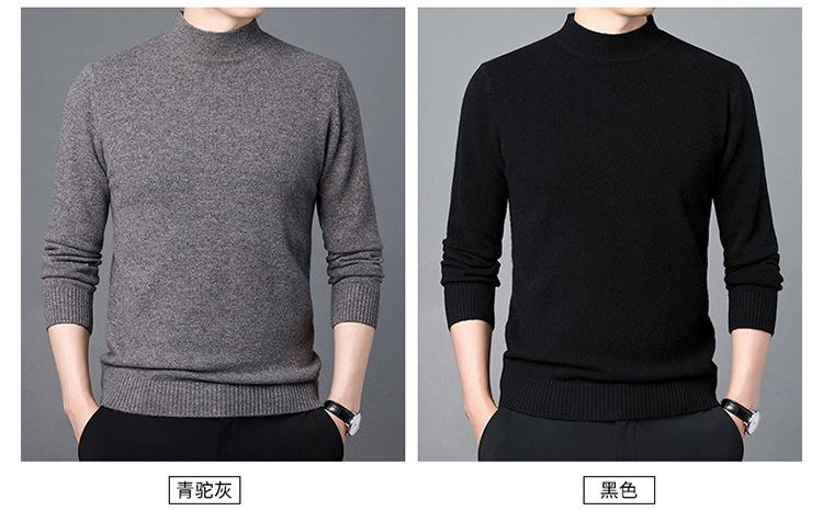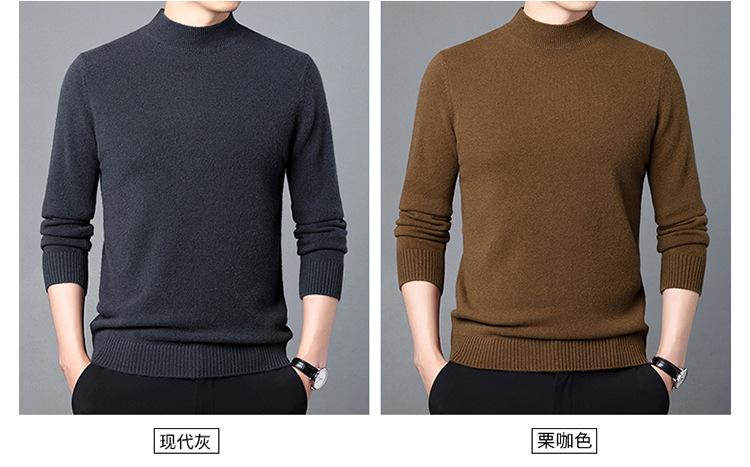 Suéter de Lana para Hombre Cuello Redondo Cuello Alto Otoño e Invierno Nuevo Color Sólido Manga Larga Camiseta Base para Hombre Casual de Mediana Edad Suéter de Punto para Hombre