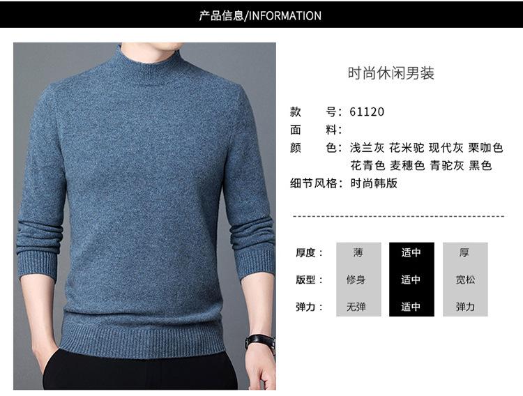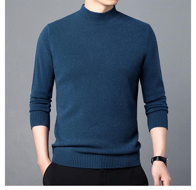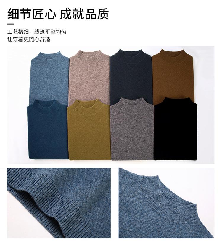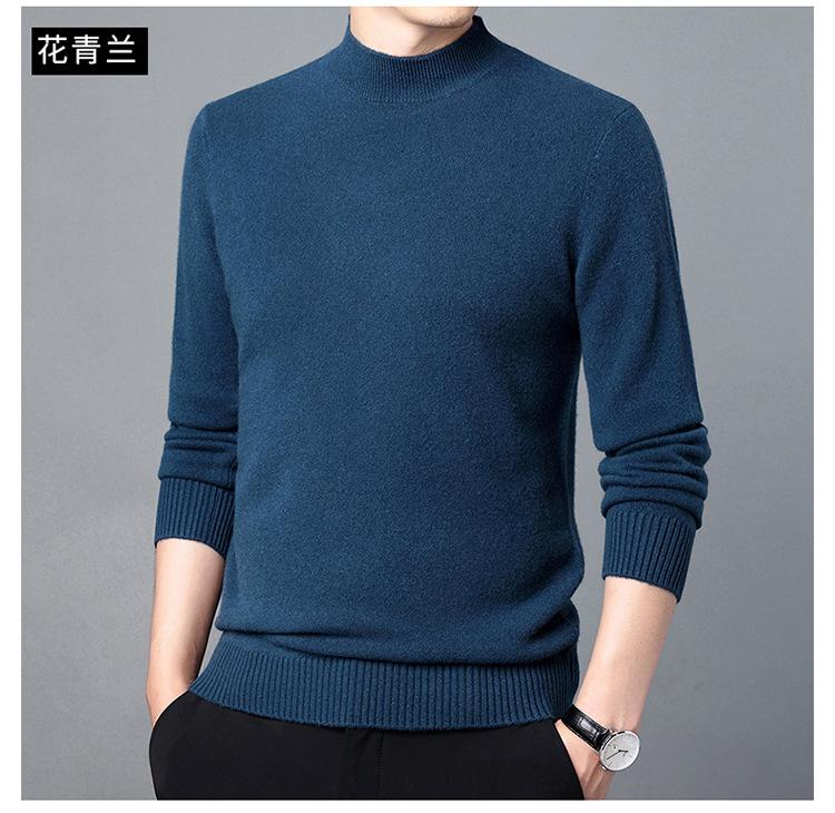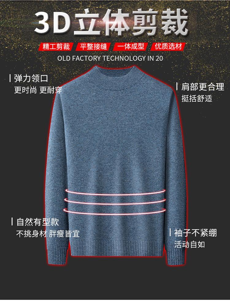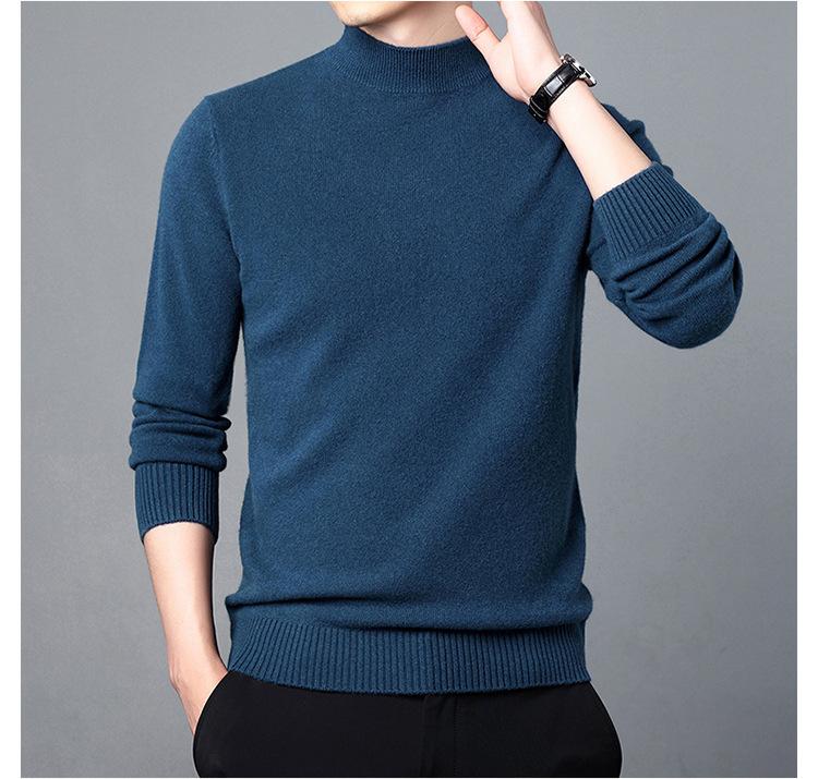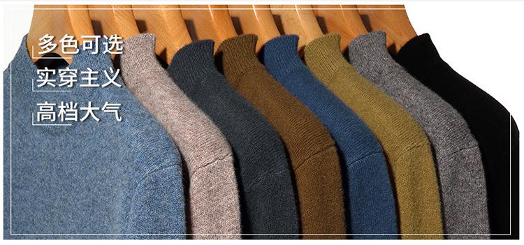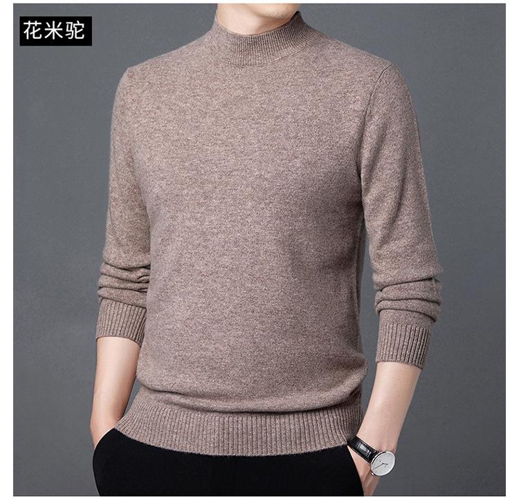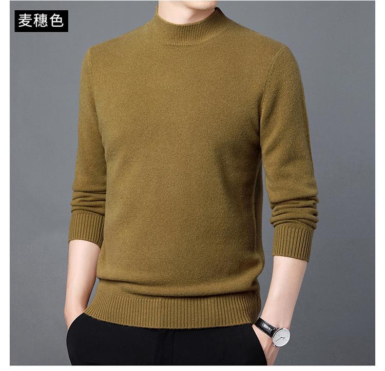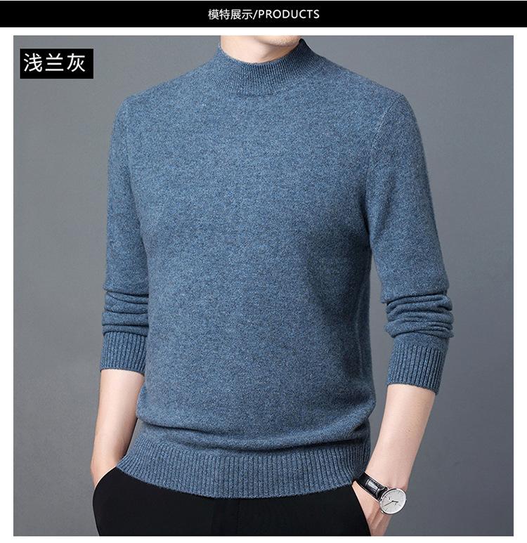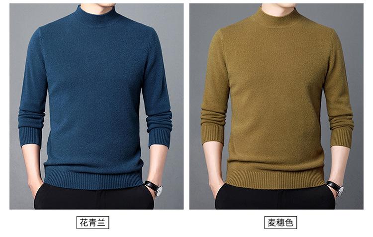 Suéter de Lana para Hombre Cuello Redondo Cuello Alto Otoño e Invierno Nuevo Color Sólido Manga Larga Camiseta Base para Hombre Casual de Mediana Edad Suéter de Punto para Hombre