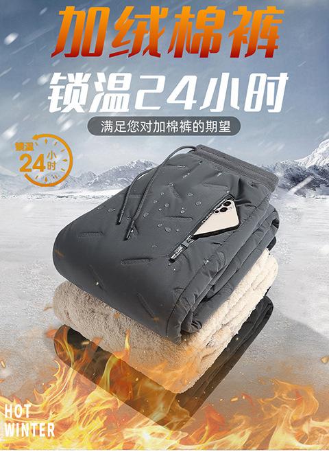 Pantalones de terciopelo de cordero resistentes al frío e impermeables para otoño e invierno, holgados, forrados de vellón, gruesos, de talla grande, rectos, cálidos, de algodón, pantalones deportivos para hombres