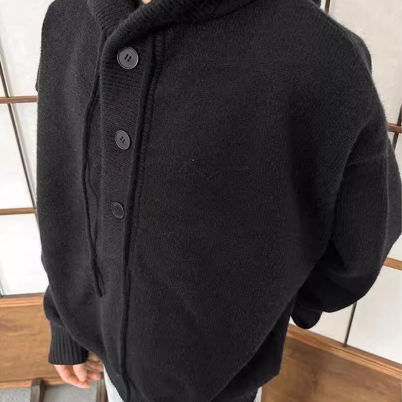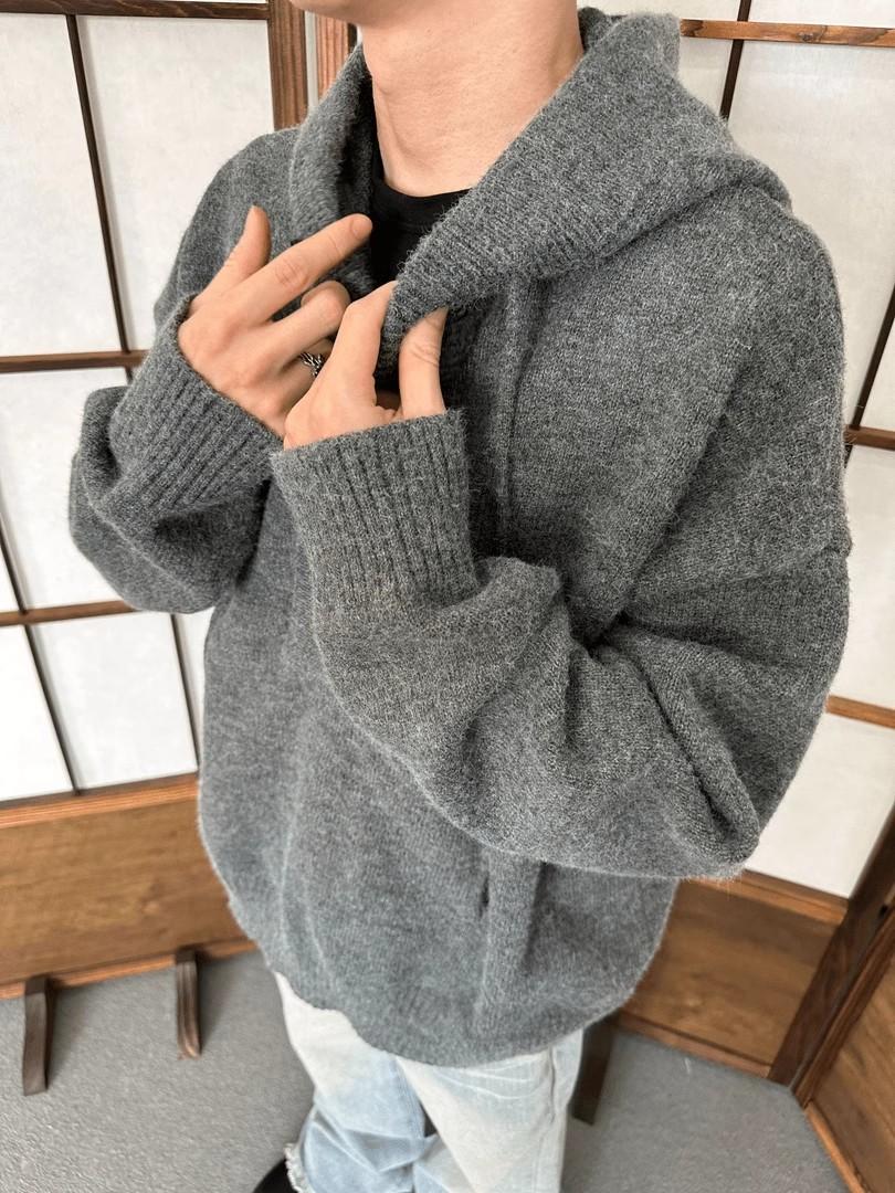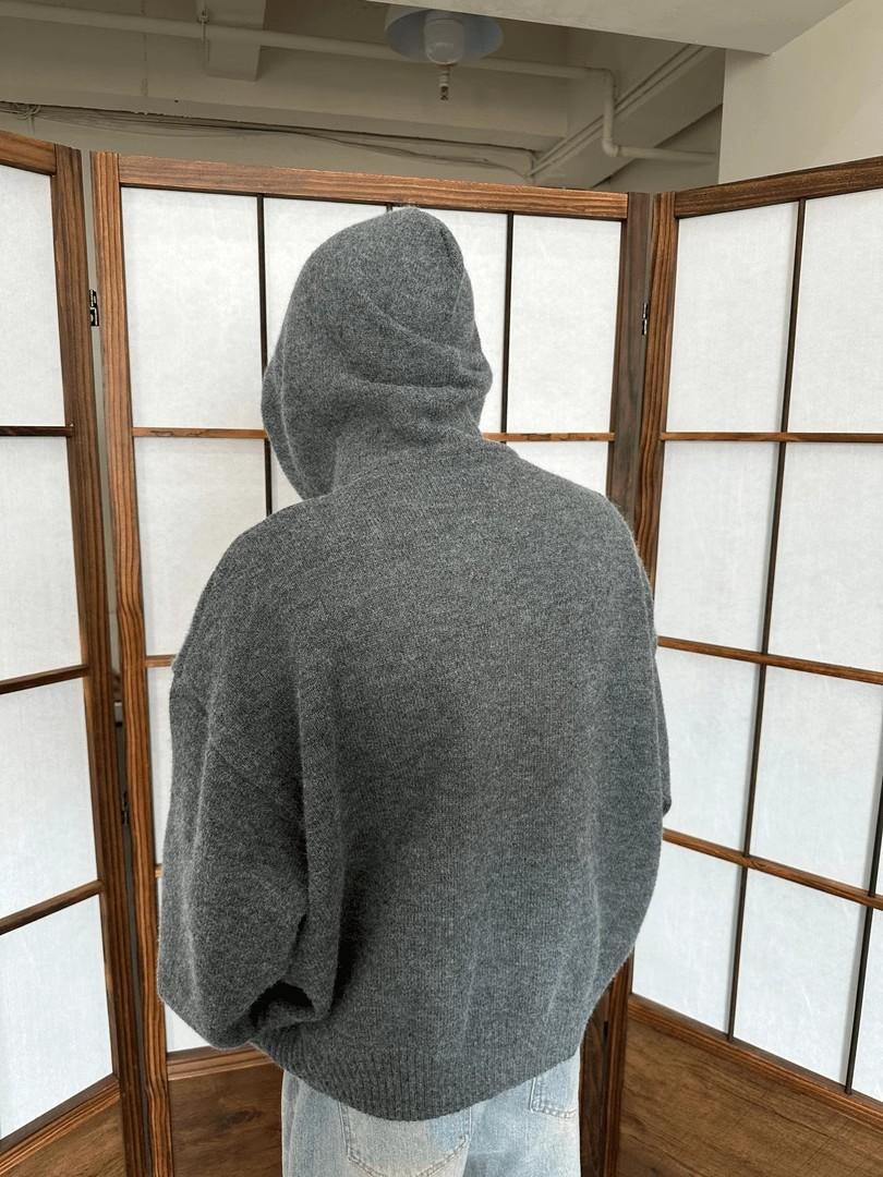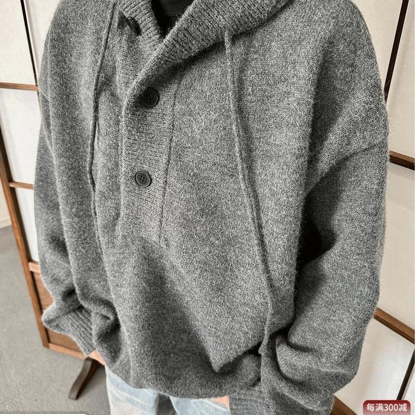 Suéter con Capucha Retro Gris Estilo Americano para Hombre Otoño e Invierno Estilo Perezoso Sensación de Alta Gama Suelto Moderno Marca Tejido de Punto Suéter Chaqueta