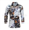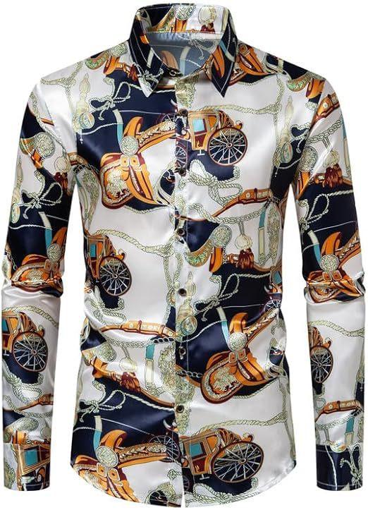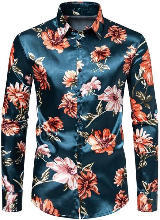 Camisa Estampada de Manga Larga para Hombre Ajuste Slim Hebilla Brillante Floral Seda Camisa de Vestir Adecuada para Fiesta Baile de Graduación Boda