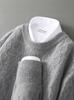 Suéter de cuello redondo 100% lana pura para hombre, suéter holgado y combinable, camisa de punto jacquard gruesa, otoño e invierno, nuevo