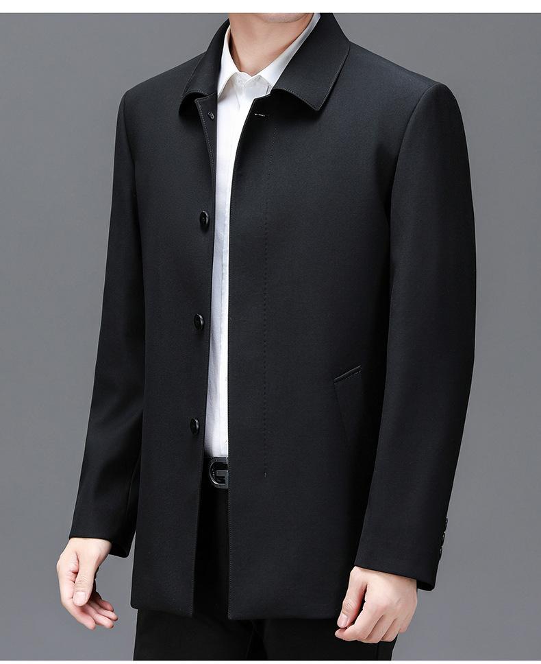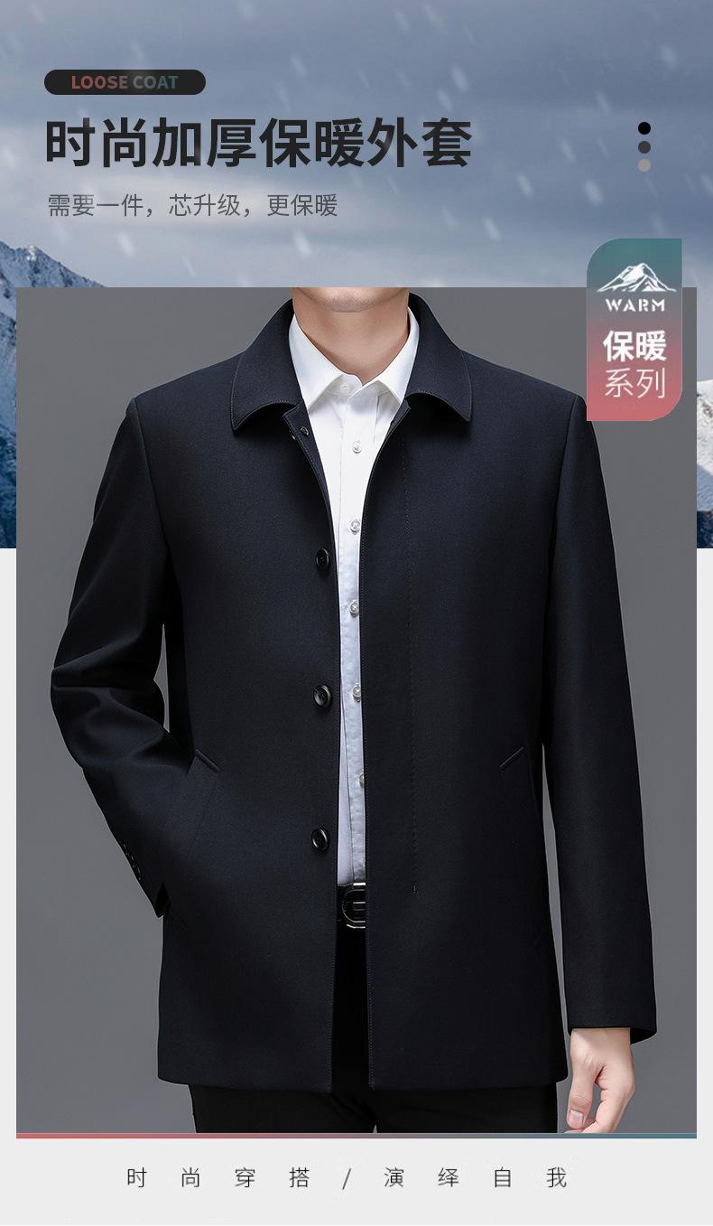 Abrigo de Invierno Grueso con Forro Polar para Hombre Largo Medio Solapa Business Casual Chaqueta de Alta Gama para Papá Chaqueta para Hombre