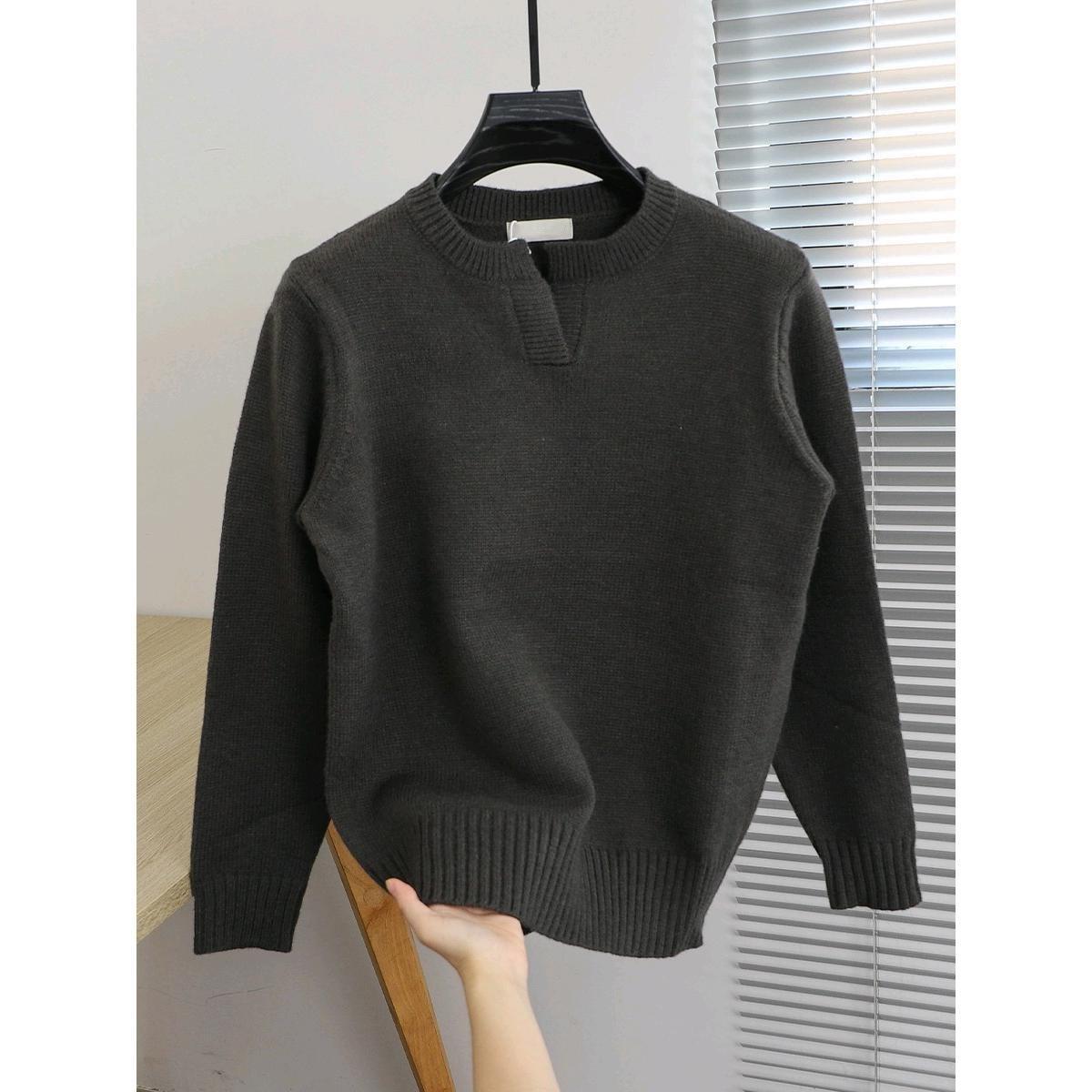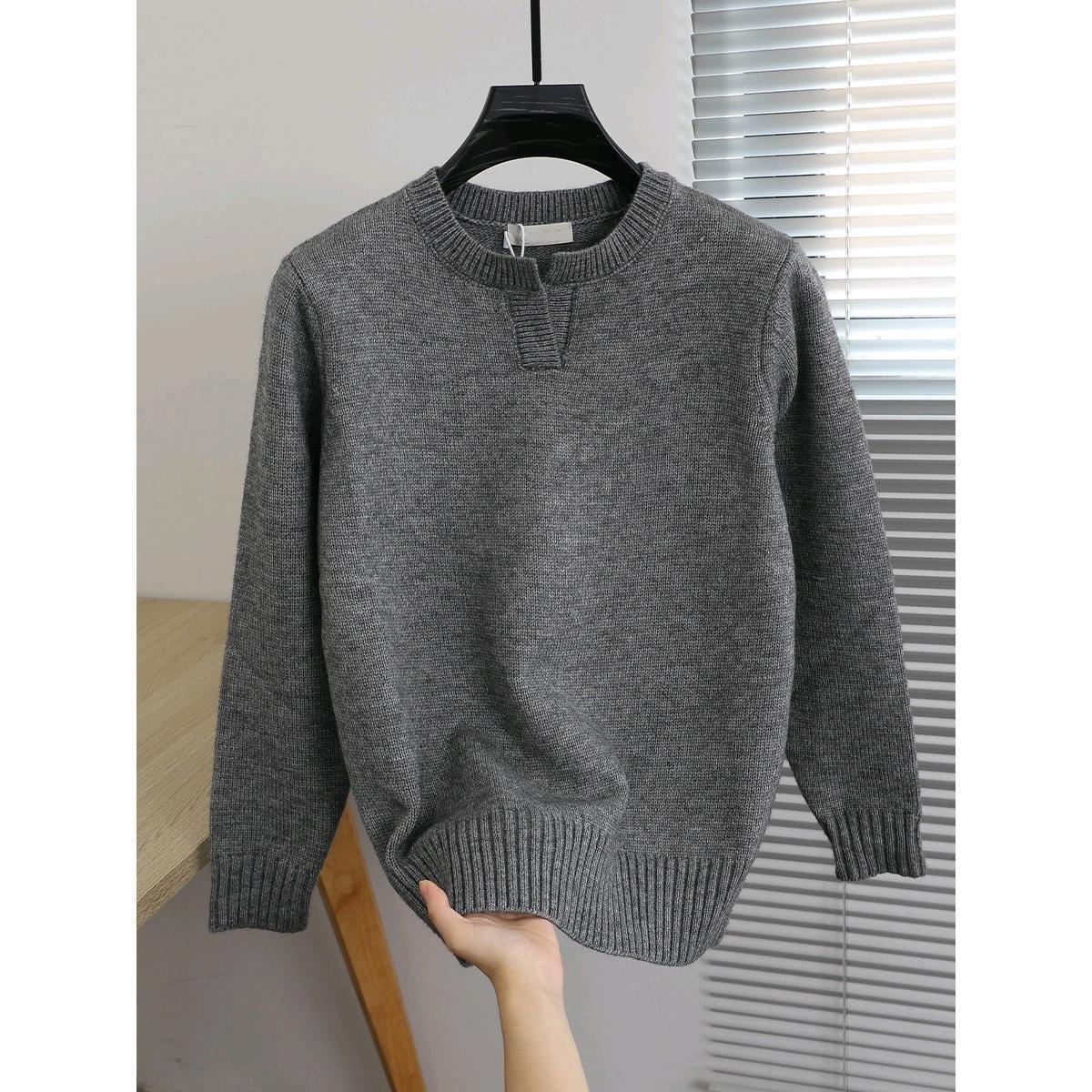 Suéter de otoño e invierno 2024 para hombre, jersey de color liso, cuello redondo, suave, juvenil, combinable, popular, con base interior.