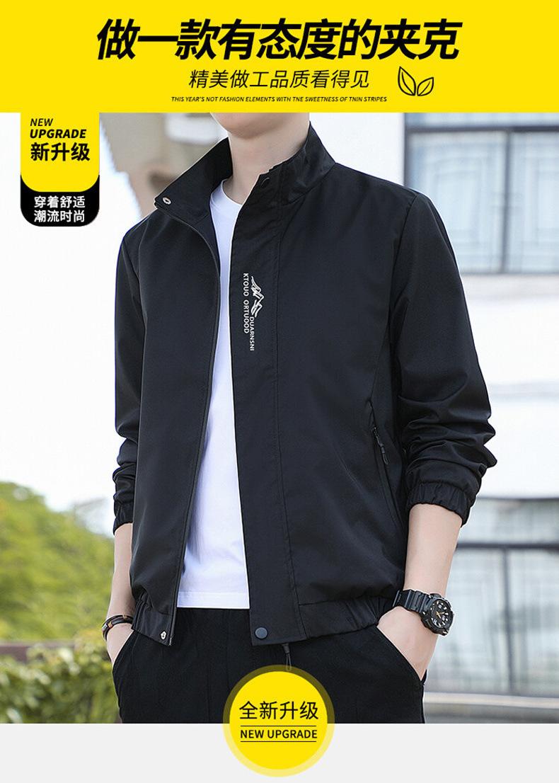 Chaqueta de hombre de primavera y otoño, nueva marca de moda, cuello vertical, chaqueta informal holgada, ropa superior de primavera a la moda para todo tipo de combinaciones.