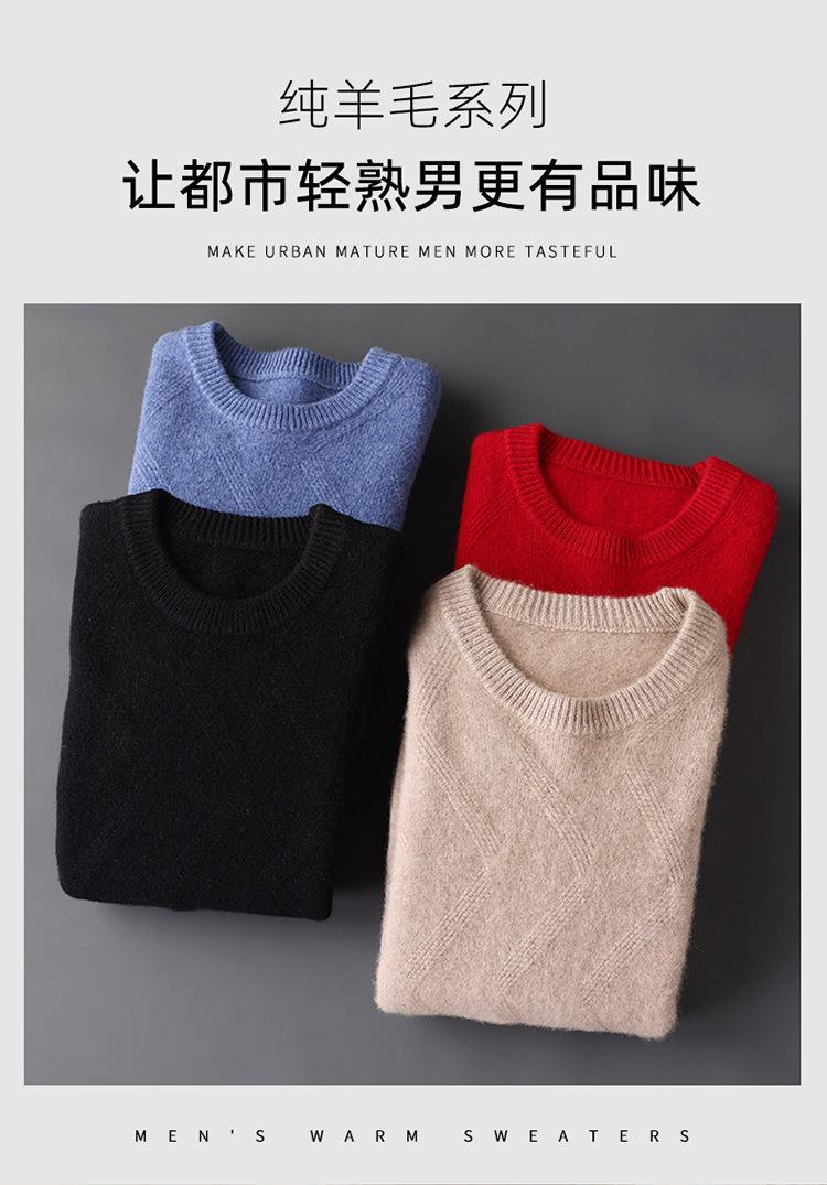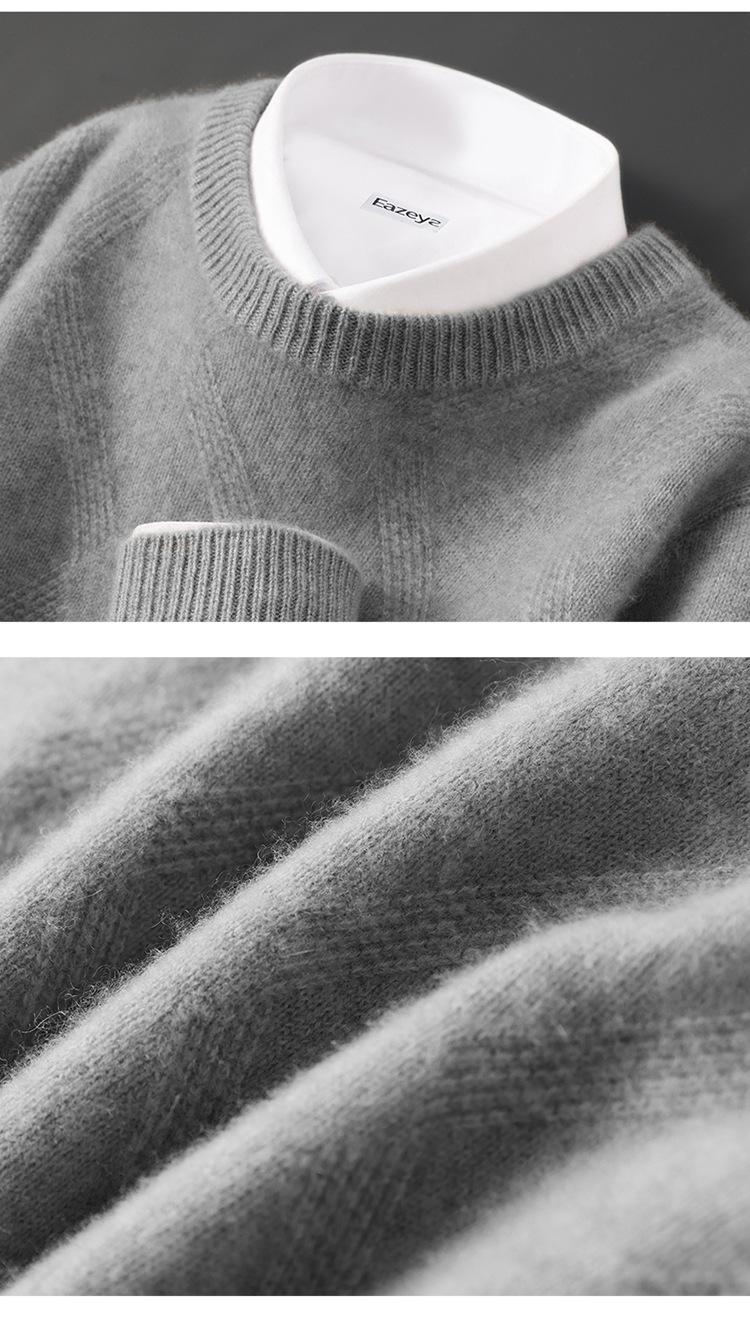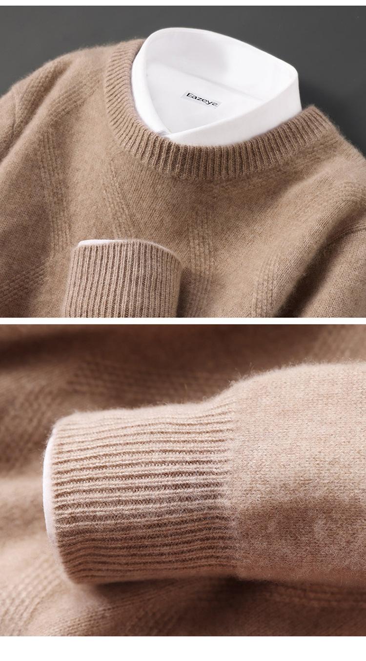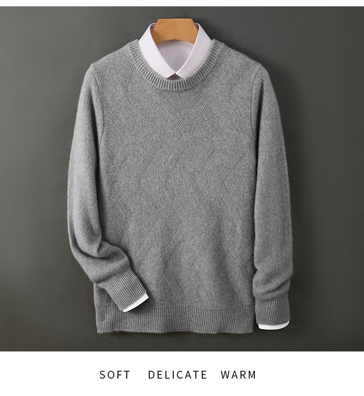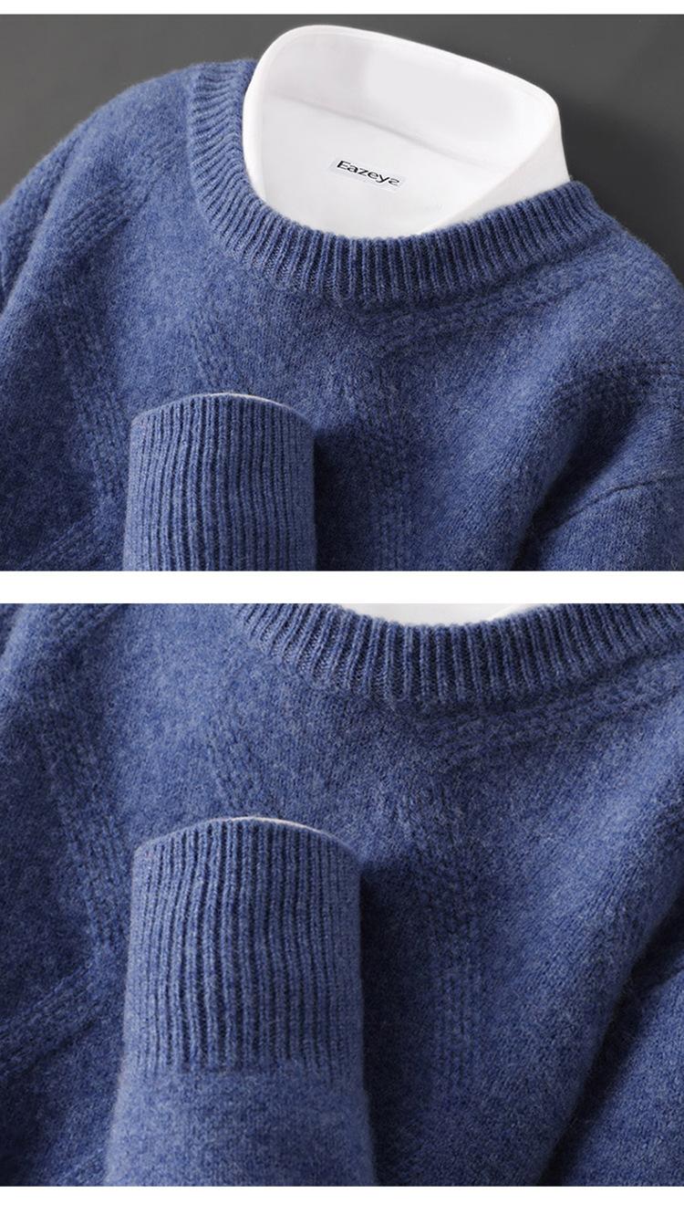 Otoño e Invierno Nuevo Suéter de Hombre Cuello Redondo Holgado Grueso Jacquard Suéter Casual Negocios Tejido Camiseta Base