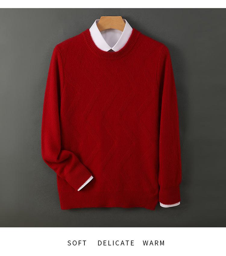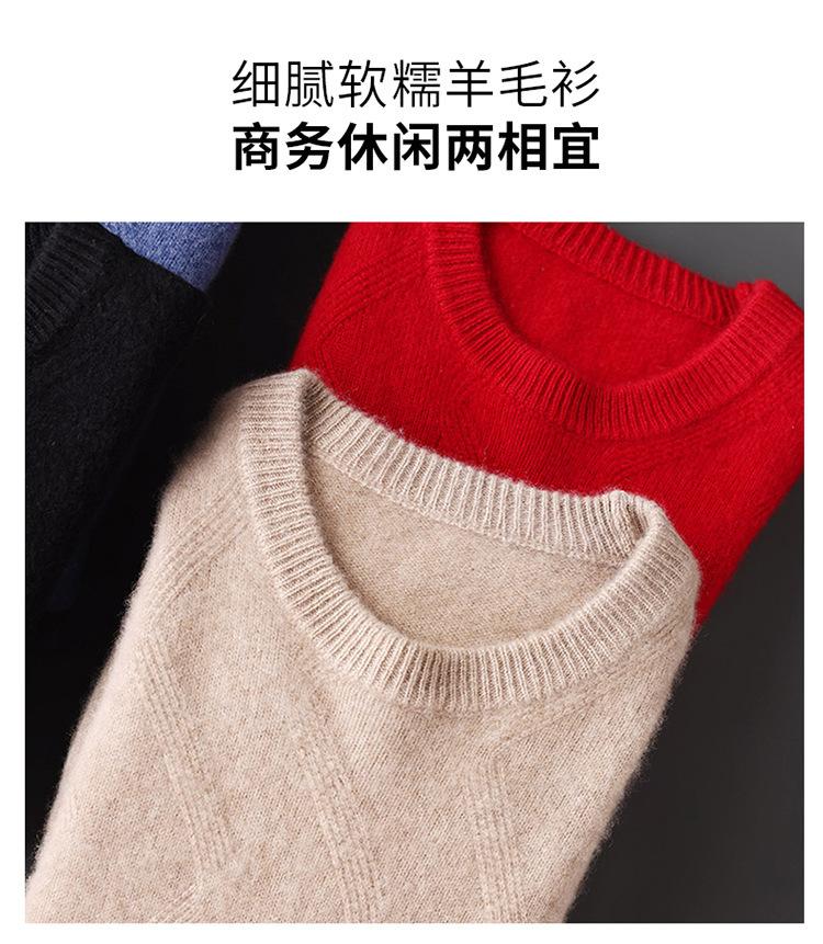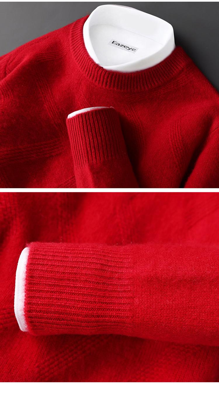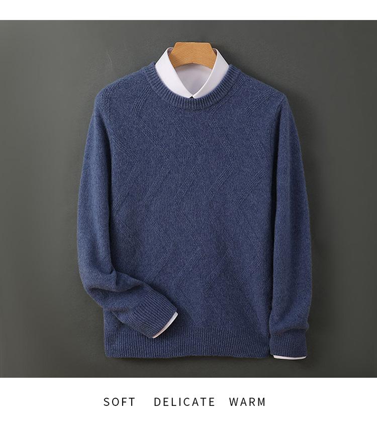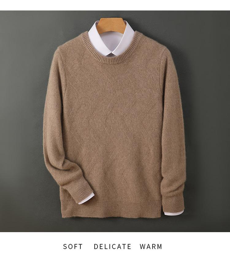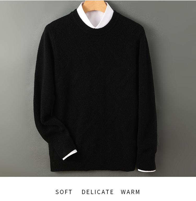 Otoño e Invierno Nuevo Suéter de Hombre Cuello Redondo Holgado Grueso Jacquard Suéter Casual Negocios Tejido Camiseta Base