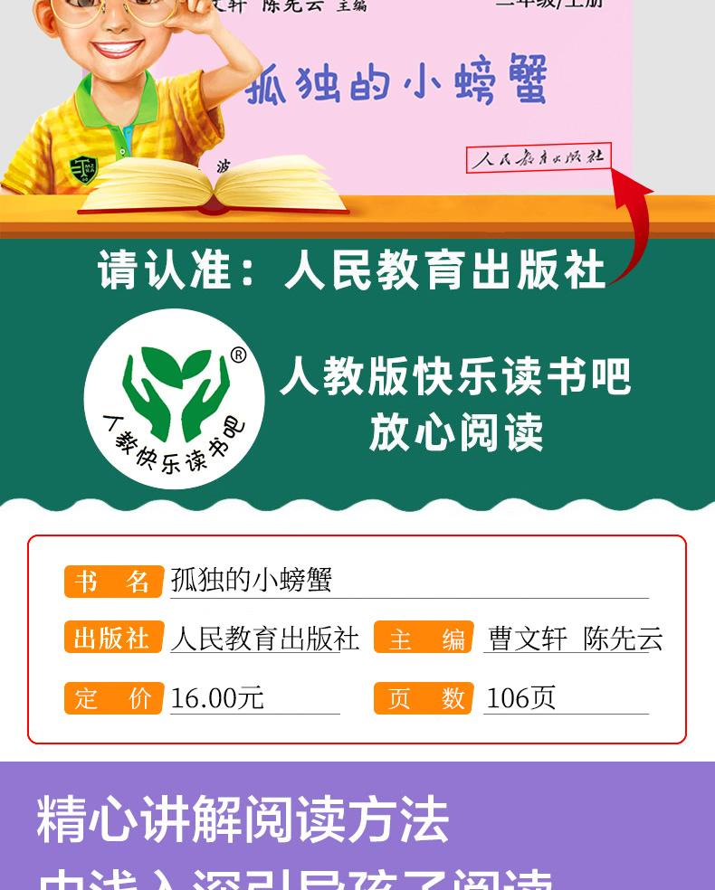 Auténtico Cangrejito Solitario Edición Educación Popular Segundo Grado Volumen 1 Barra de Lectura Feliz Tercer Grado Libro Extracurricular Lectura Lectura Obligatoria