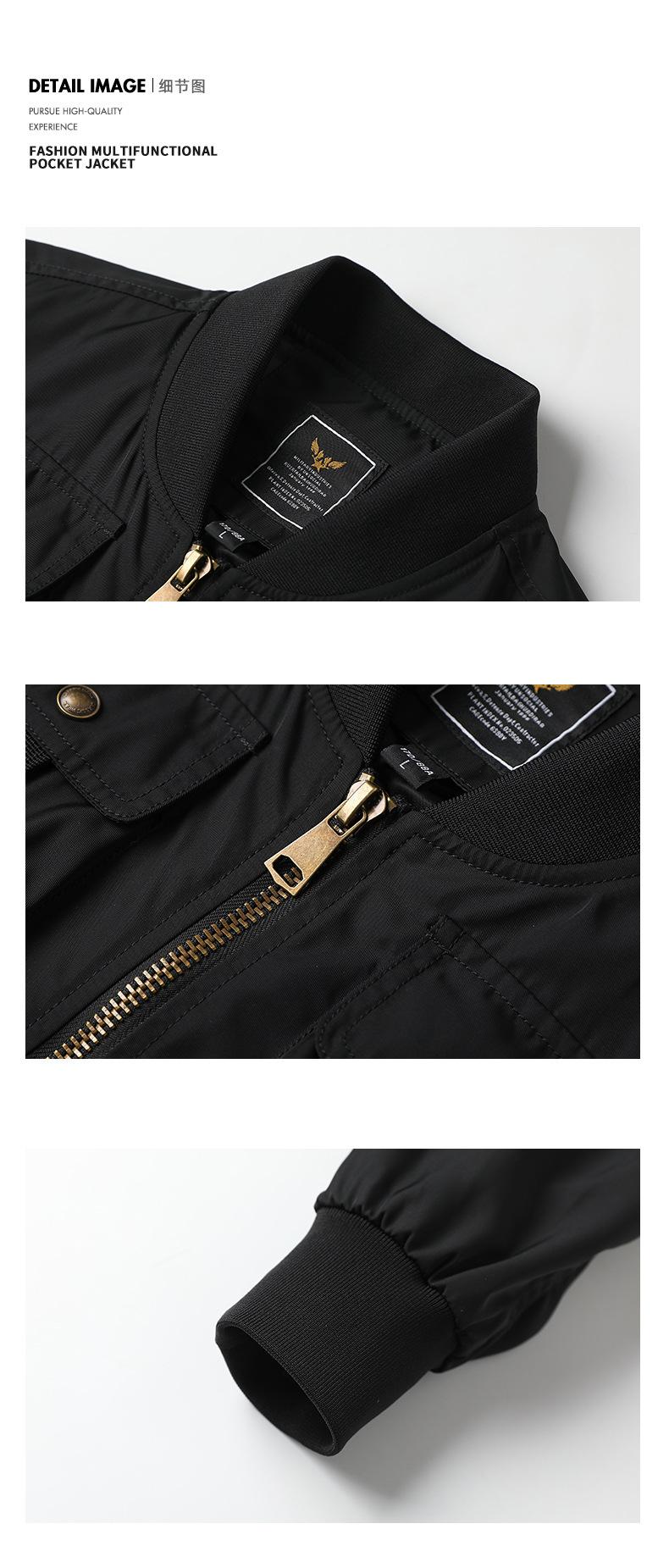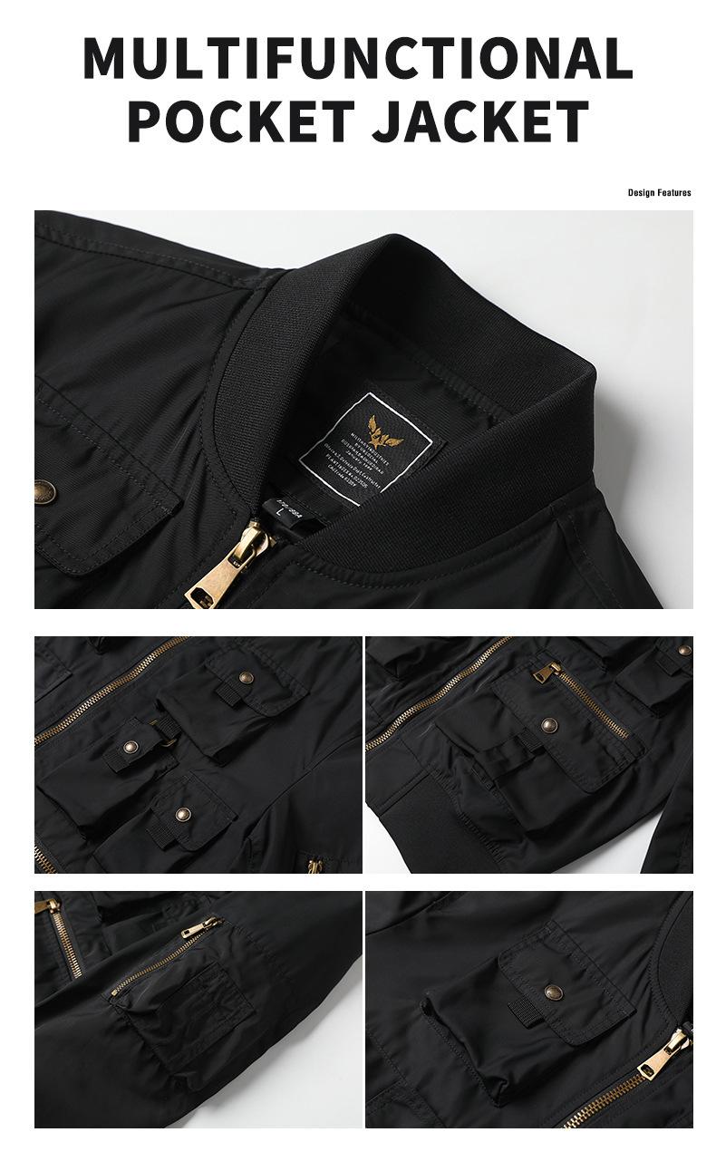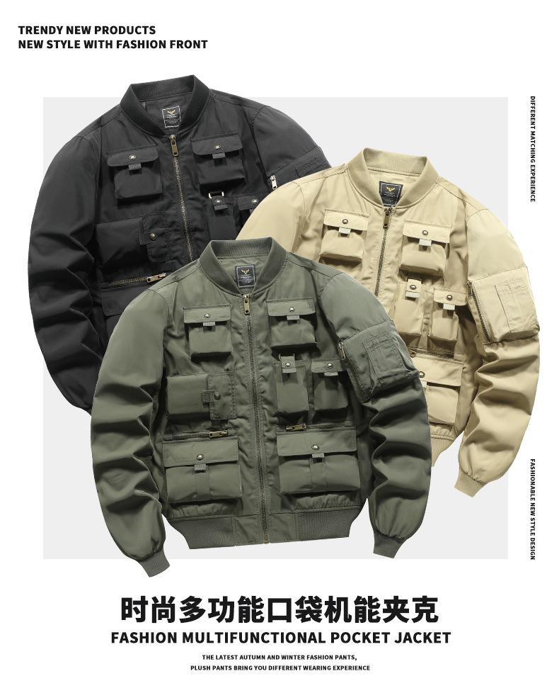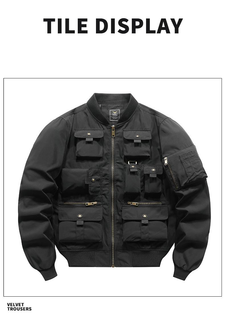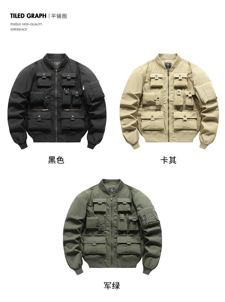 Chaqueta bomber para hombre, estilo béisbol retro americano, chaqueta de trabajo multibolsillos, chaqueta funcional, chaqueta de carga superior de tres pruebas