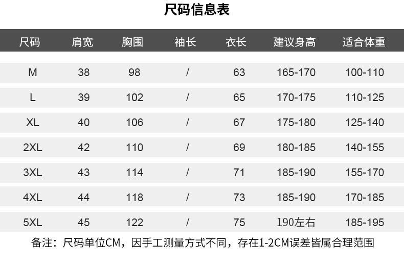 M, L, XL, 2XL, 3XL, 4XL, 5XL
