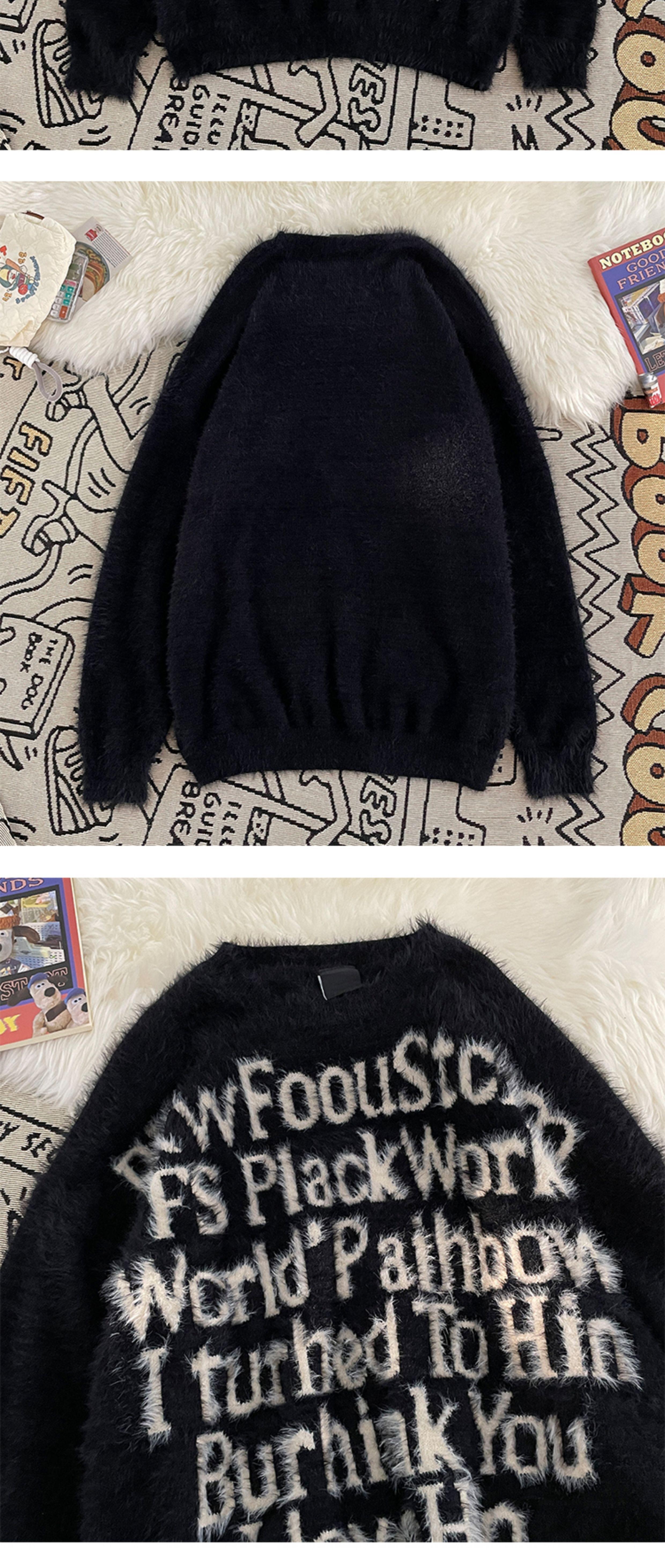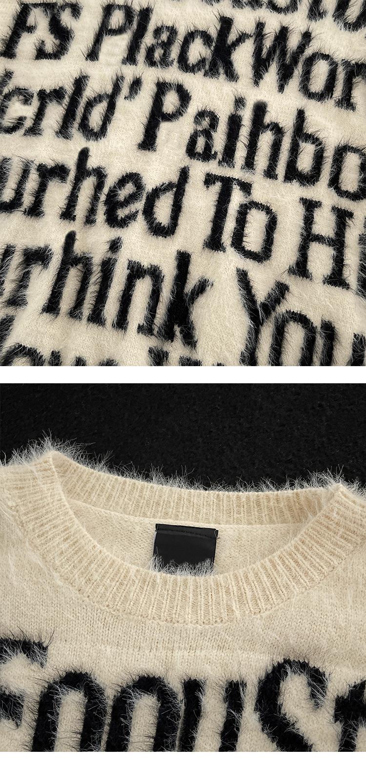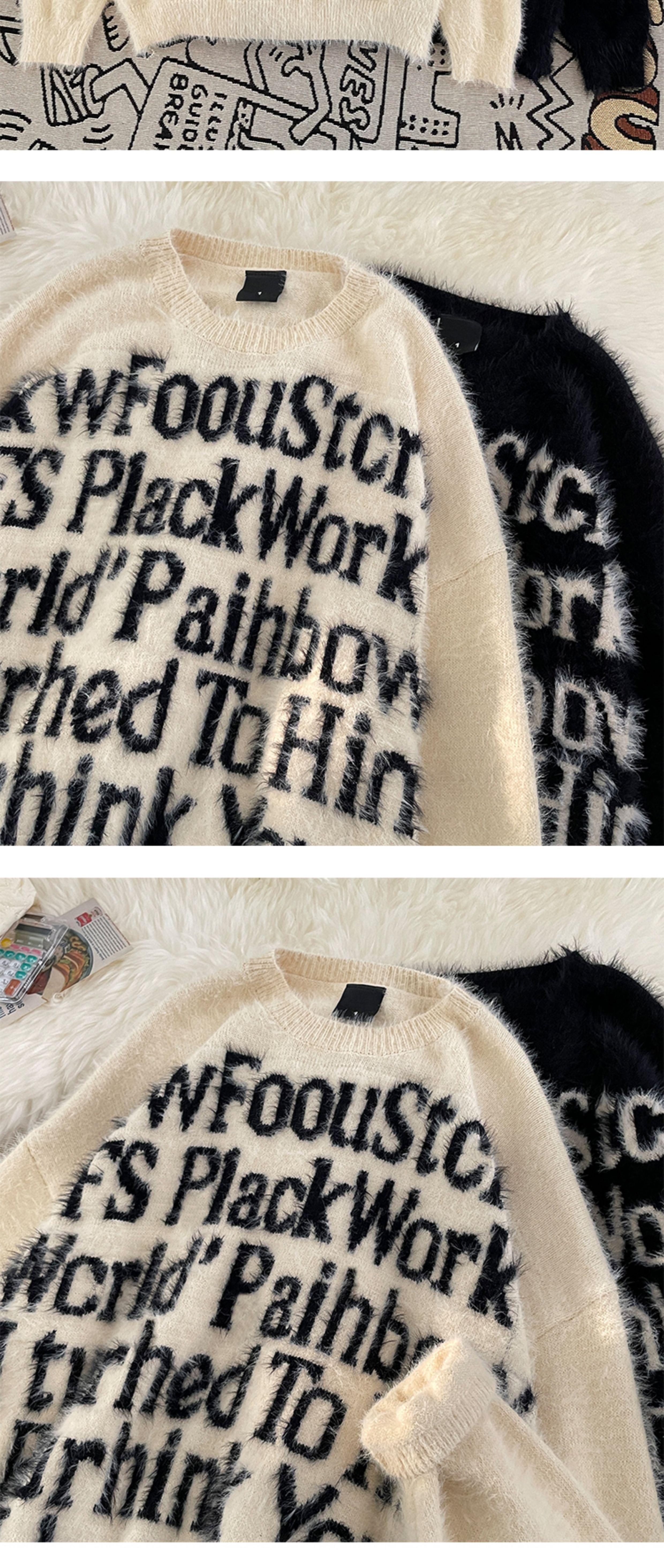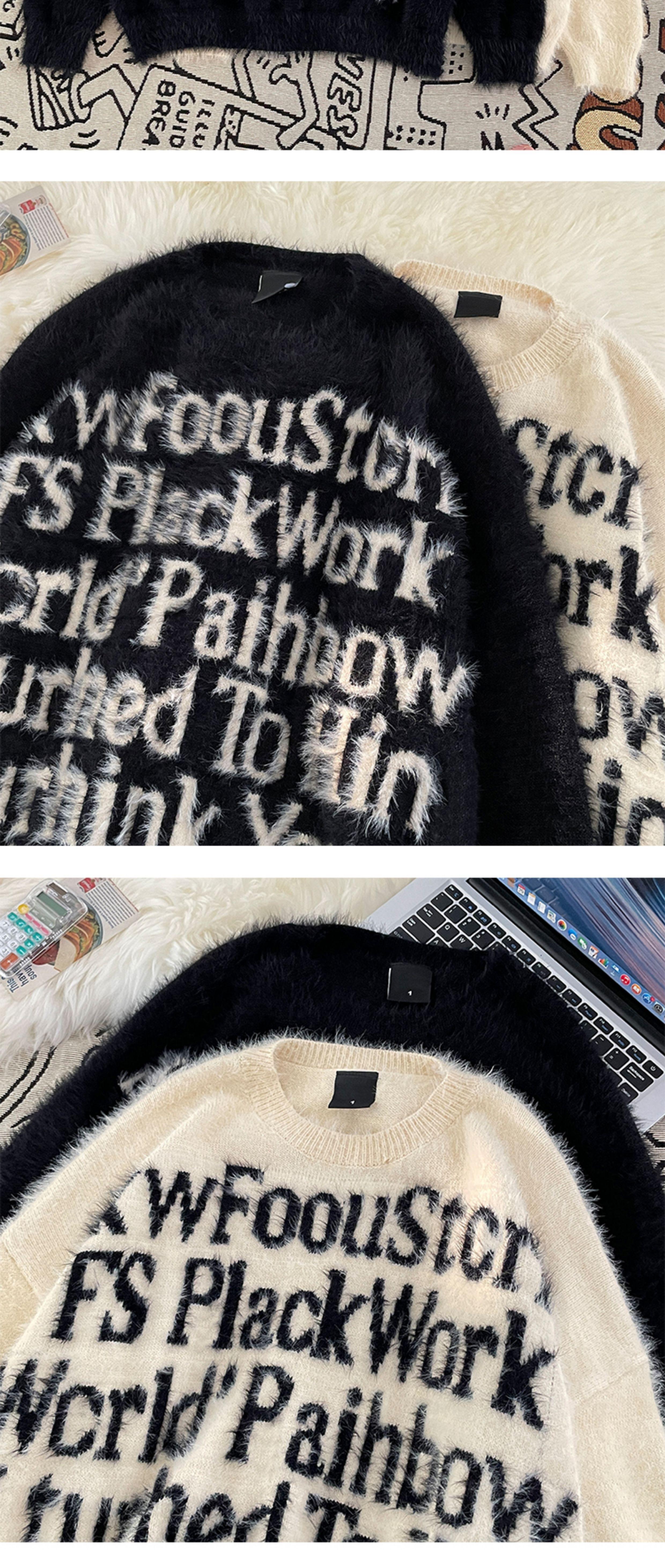 Compra Suéter de otoño e invierno suave y ceroso con diseño de visón de imitación de marca de moda de estilo americano para hombre, suéter de punto holgado con letras de jacquard creativas retro para pareja al por mayor en Joom.pro