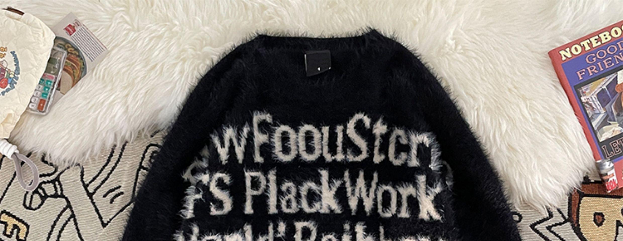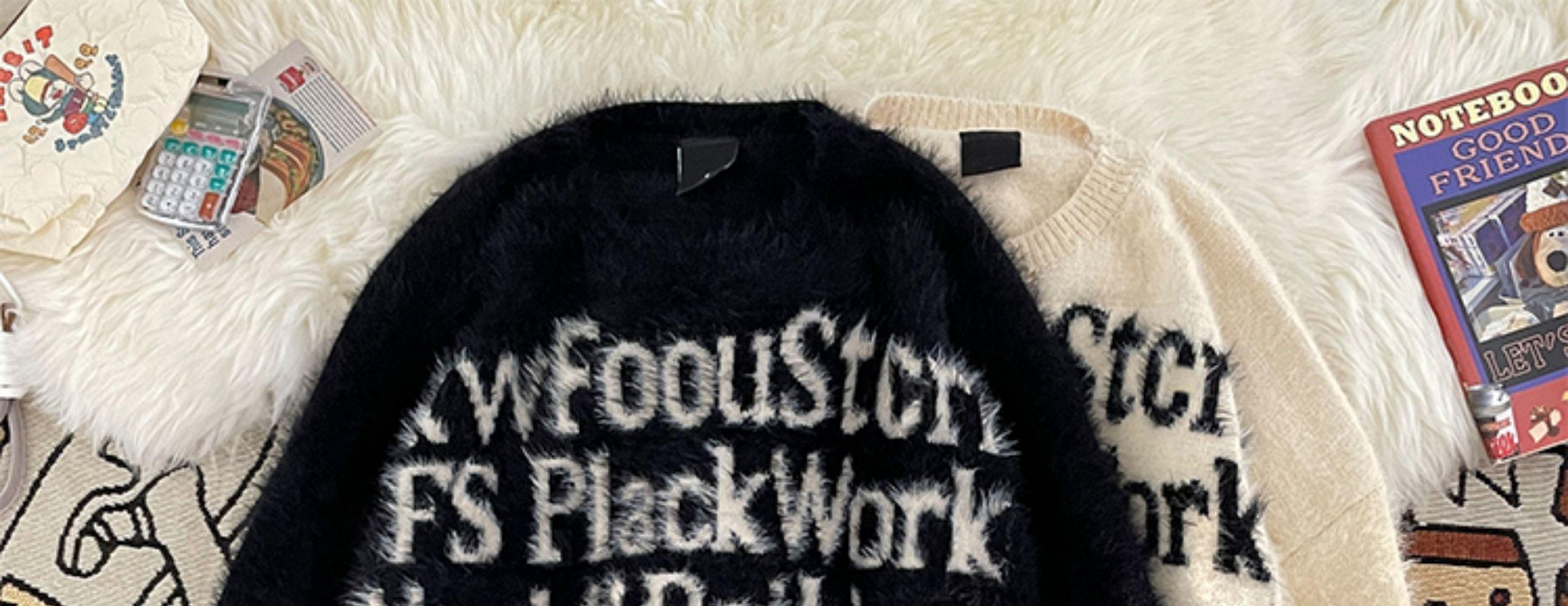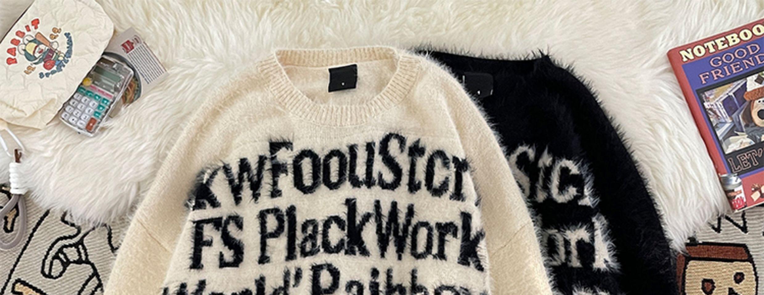 Compra Suéter de otoño e invierno suave y ceroso con diseño de visón de imitación de marca de moda de estilo americano para hombre, suéter de punto holgado con letras de jacquard creativas retro para pareja al por mayor en Joom.pro