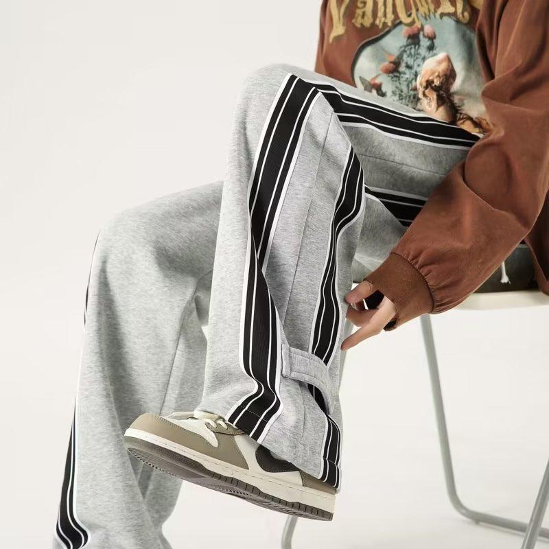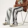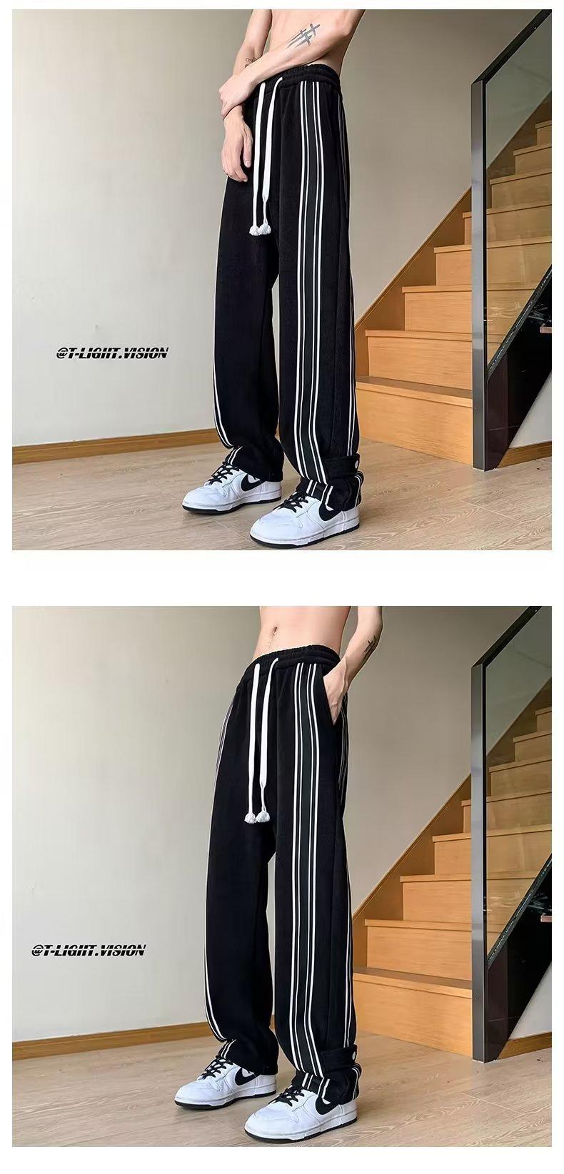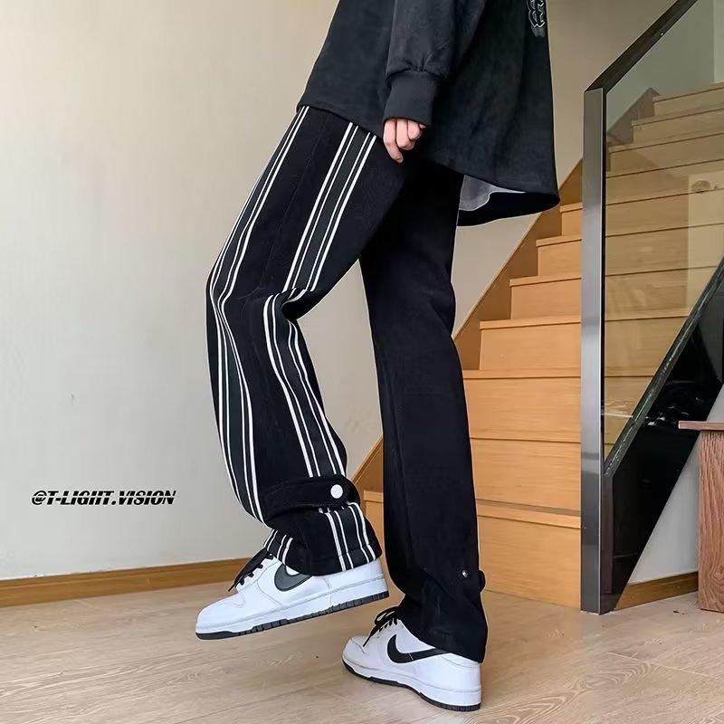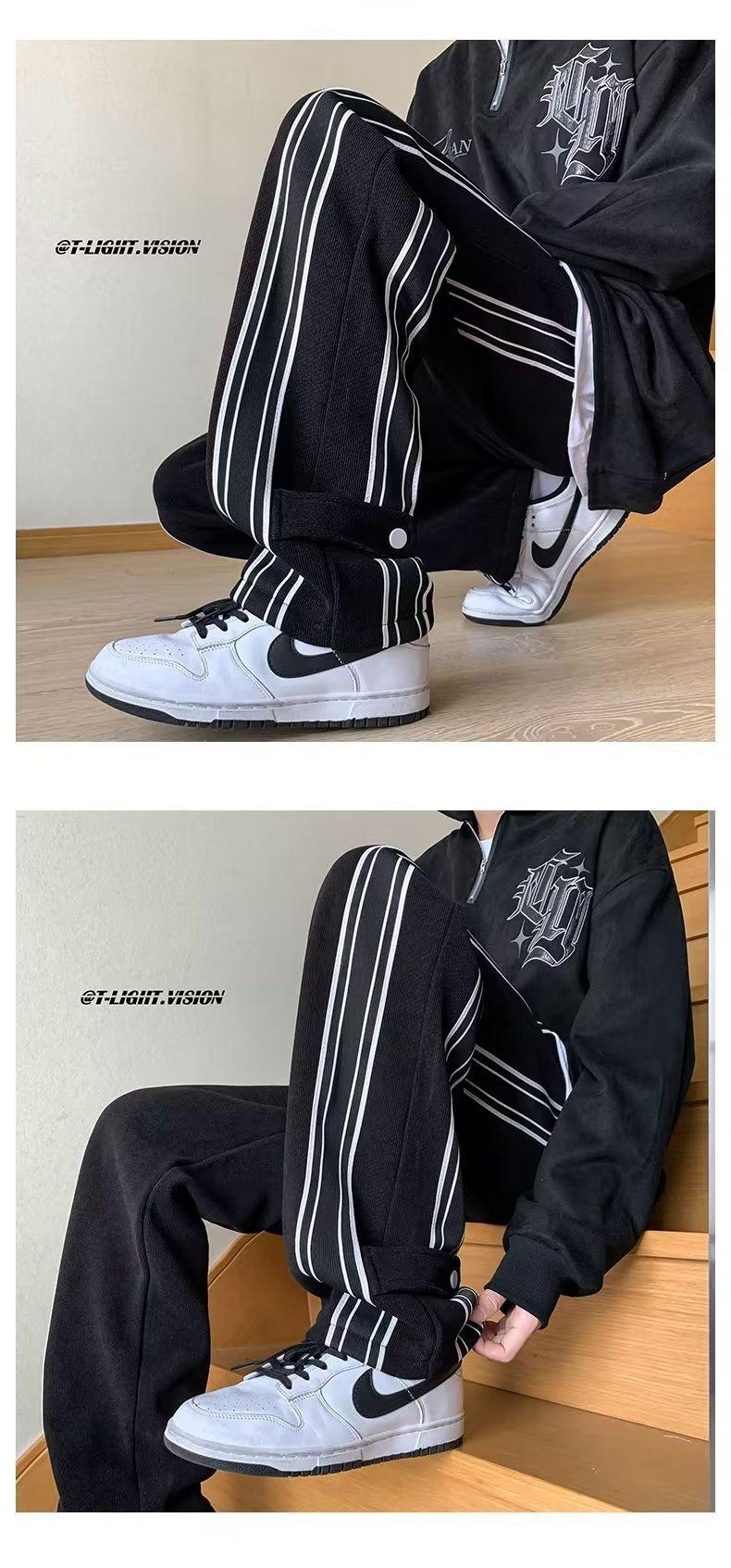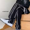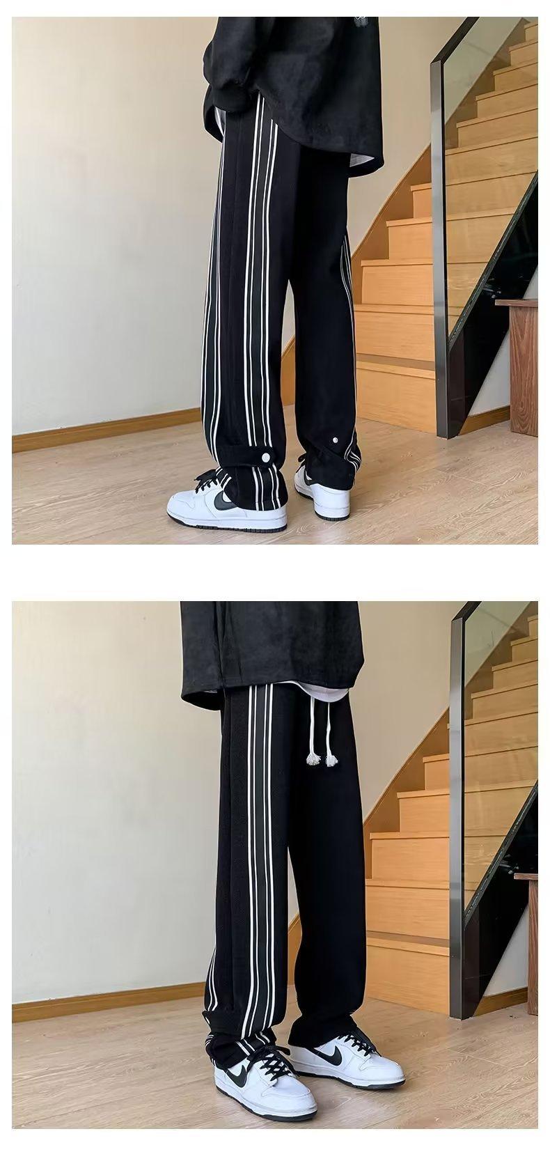 Pantalones de rayas blancas y negras para hombre, estilo americano de otoño, estilo urbano, rectos, deportivos, de marca de moda, holgados, de pierna ancha, informales.