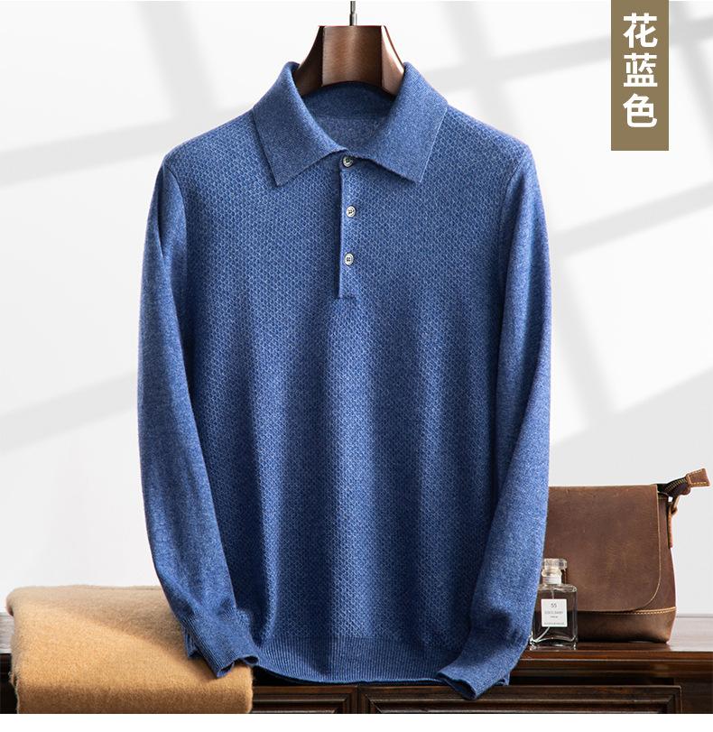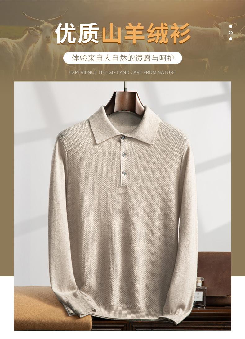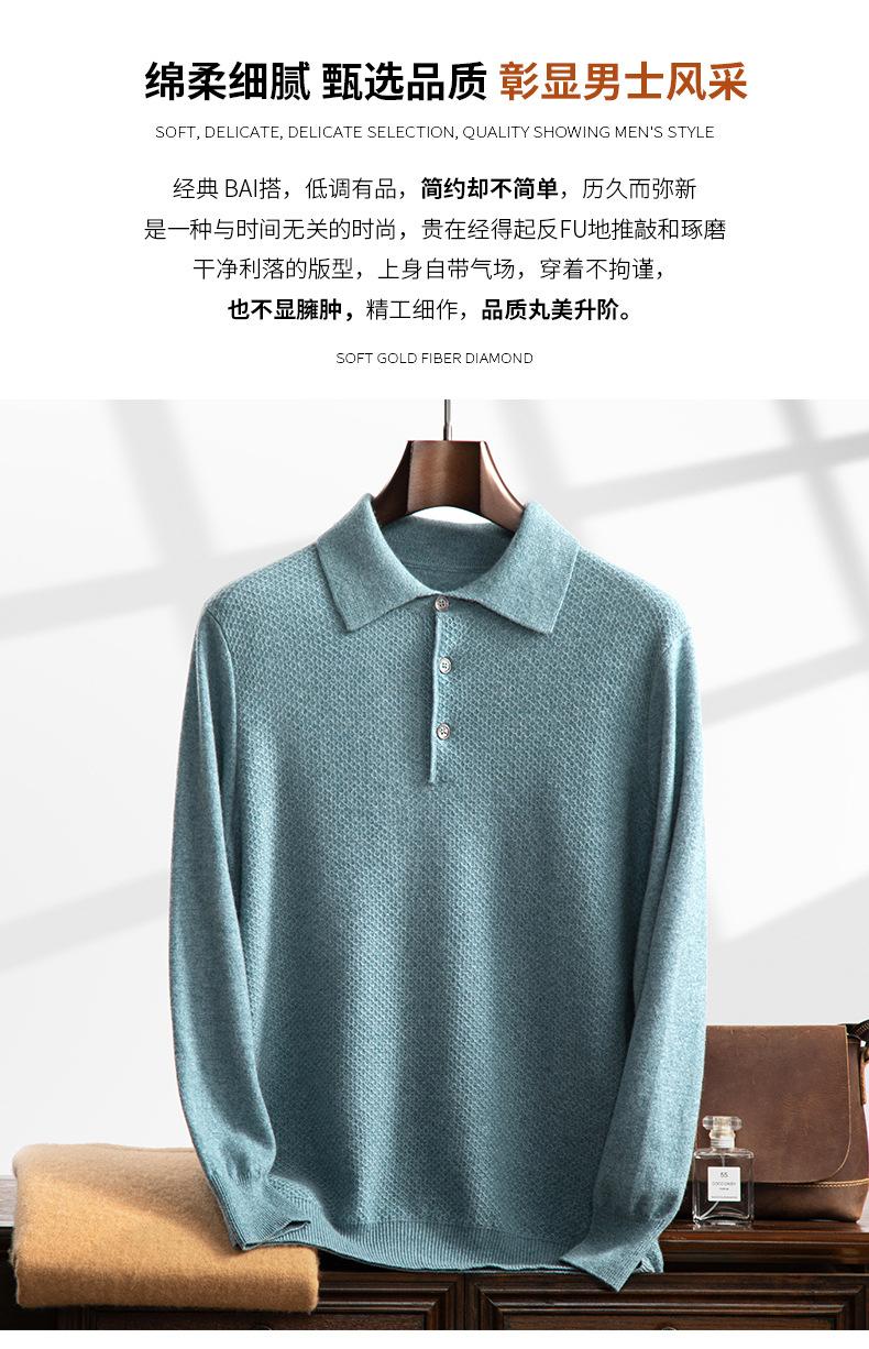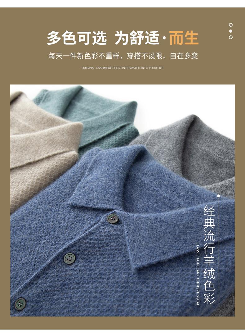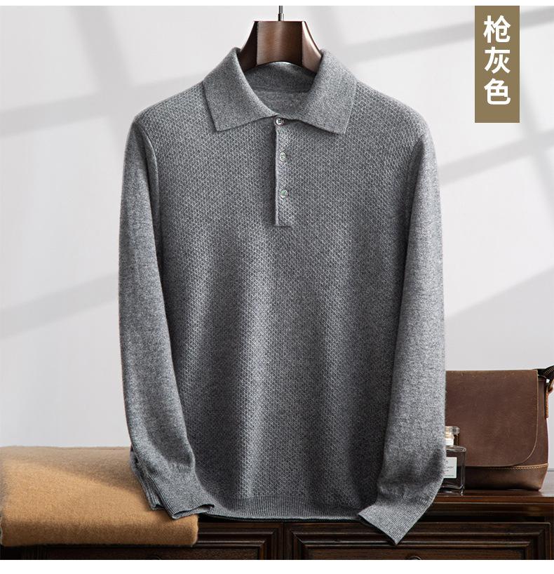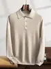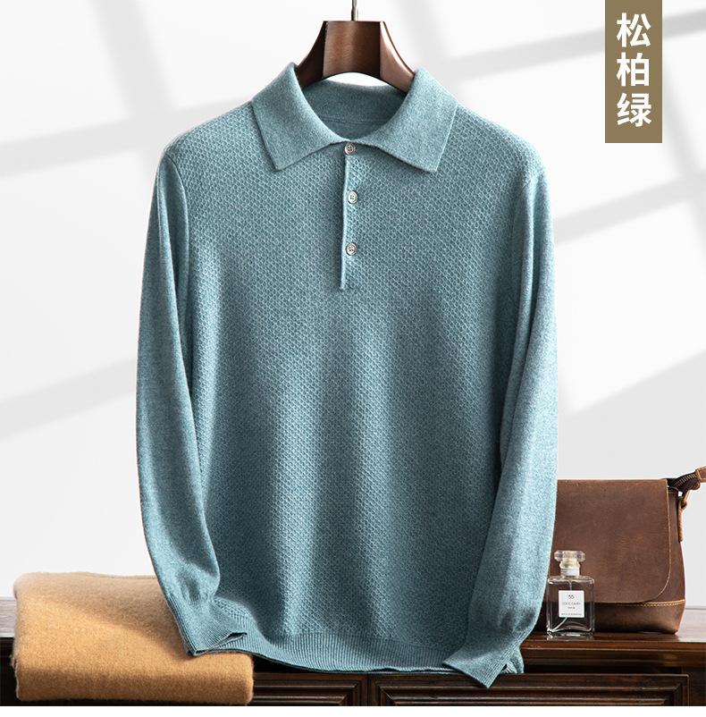 Suéter de cachemira de montaña de otoño e invierno para hombre, cuello de camisa, verde medio, informal, de negocios, suelto, de manga larga, de punto, nuevo, de alta gama