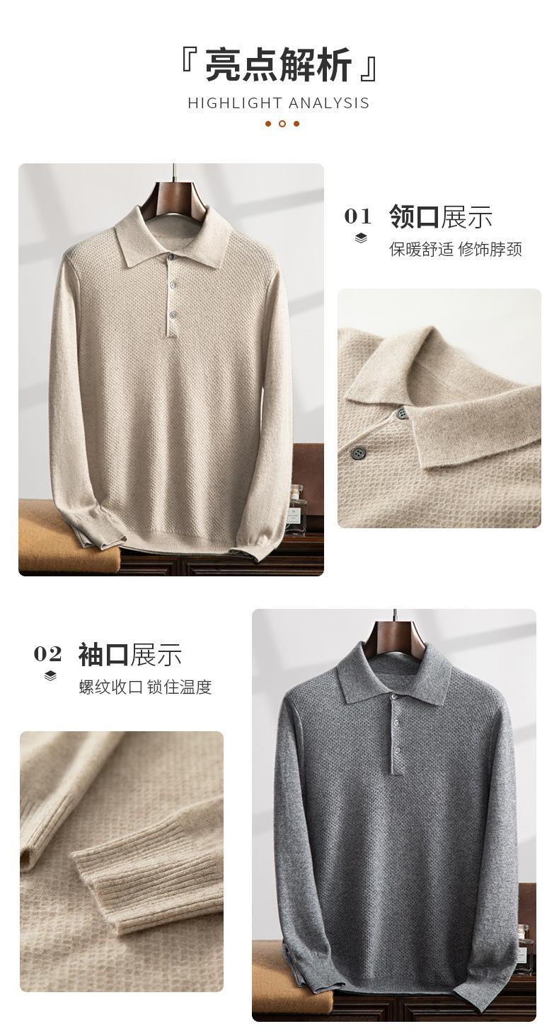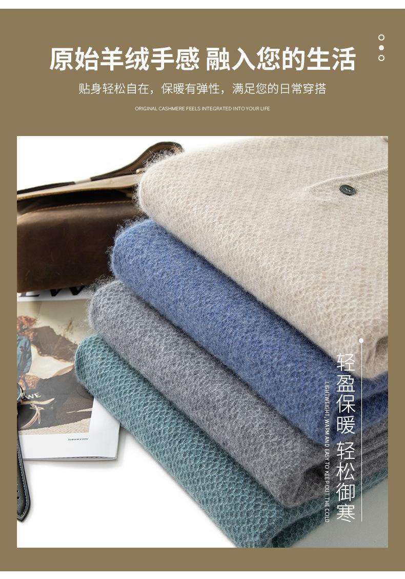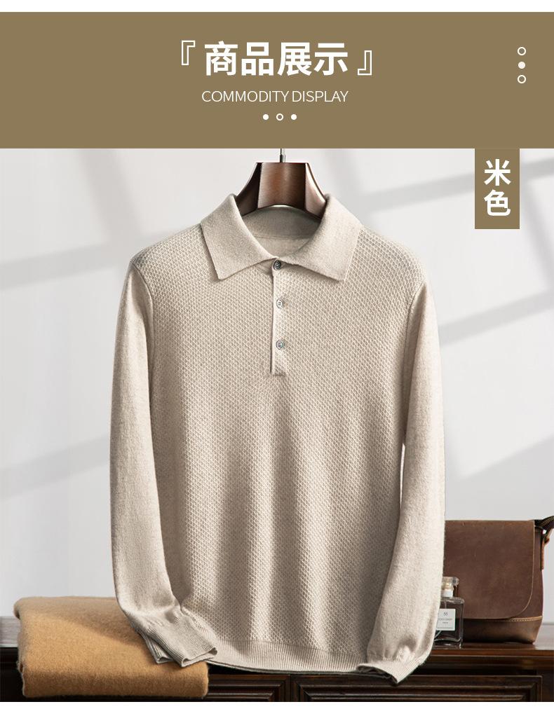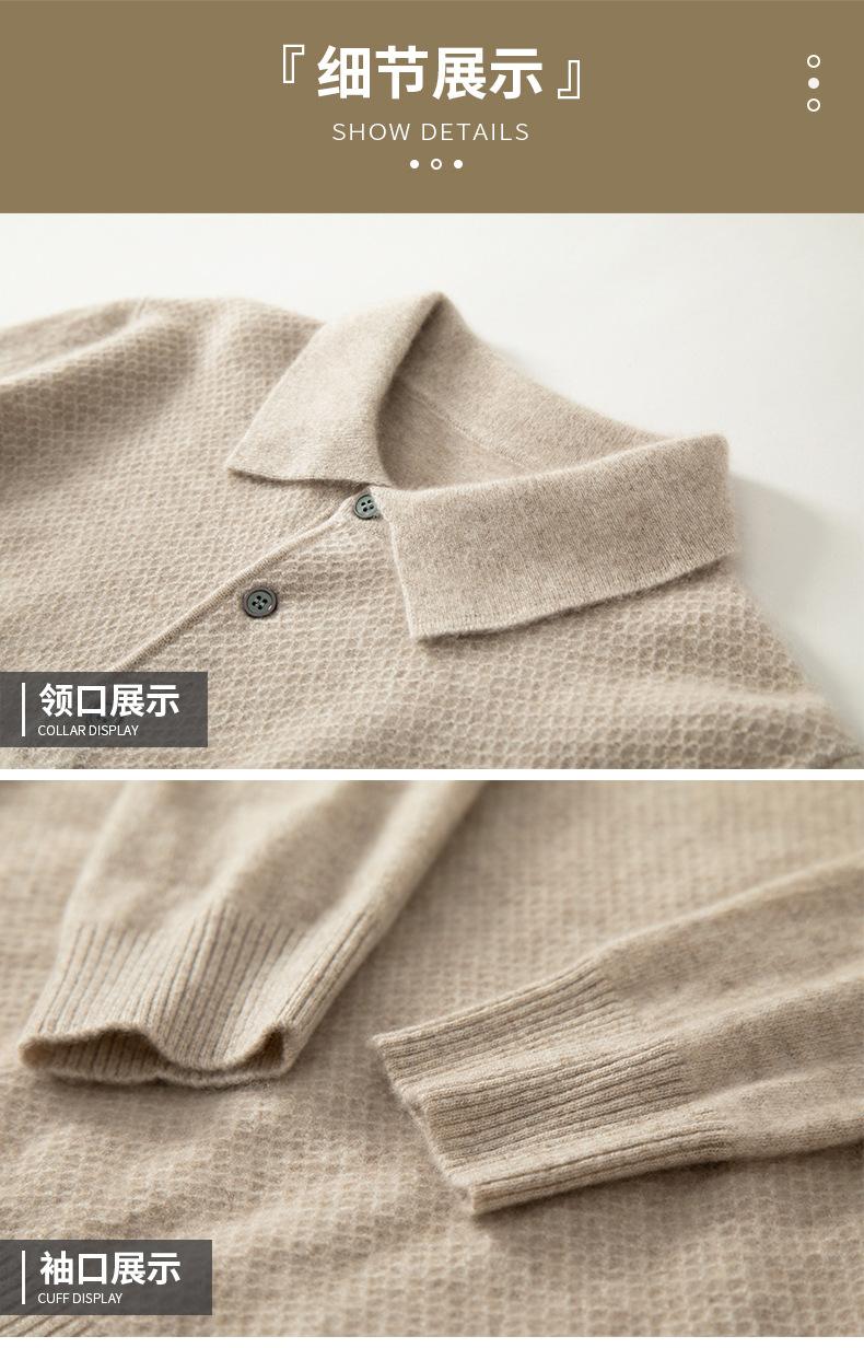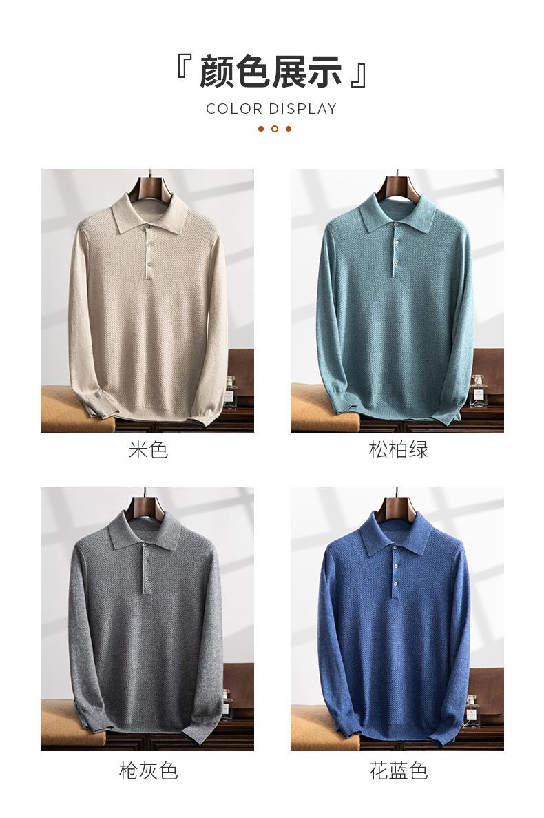Suéter de cachemira de montaña de otoño e invierno para hombre, cuello de camisa, verde medio, informal, de negocios, suelto, de manga larga, de punto, nuevo, de alta gama