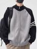 Suéter tipo cárdigan con cremallera y contraste de gran tamaño para hombre, abrigo con mangas raglán, venta al por mayor de fábrica, otoño e invierno
