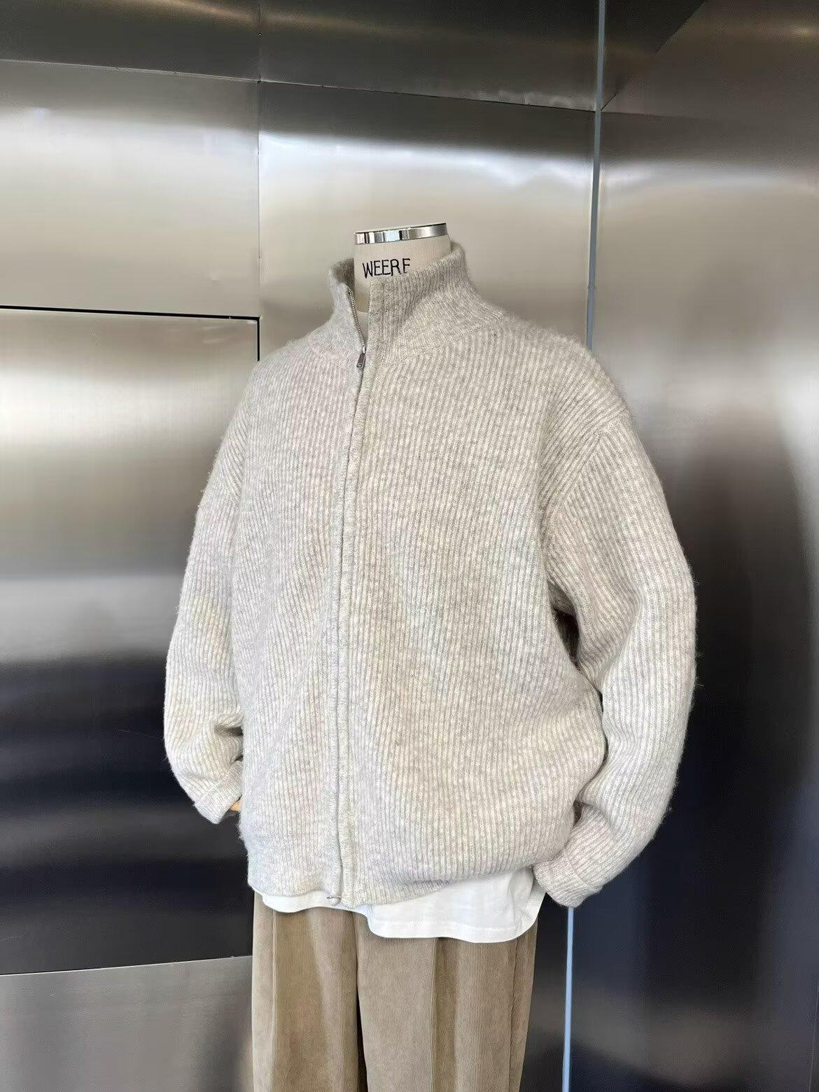 Suéter Cárdigan para Hombre Otoño e Invierno Estilo Japonés Retro Holgado Estilo Lazy Suéter de Punto Abrigo Suéter con Cierre para Hombre