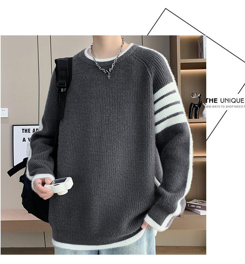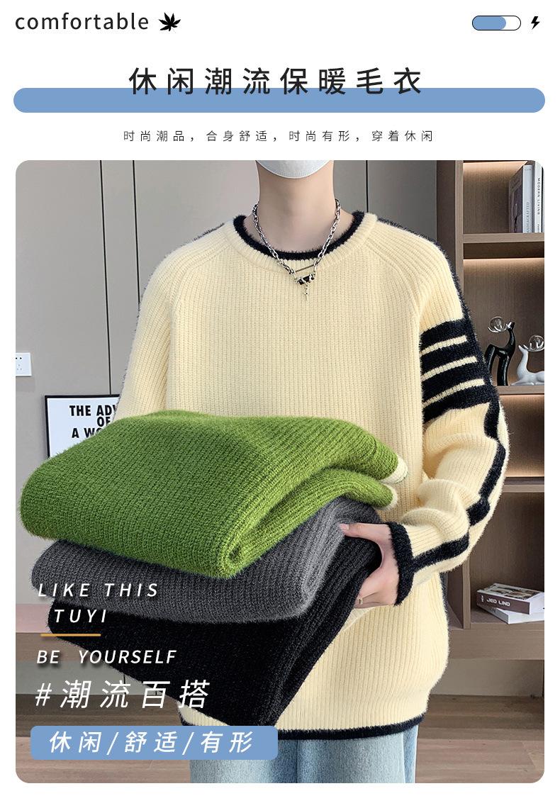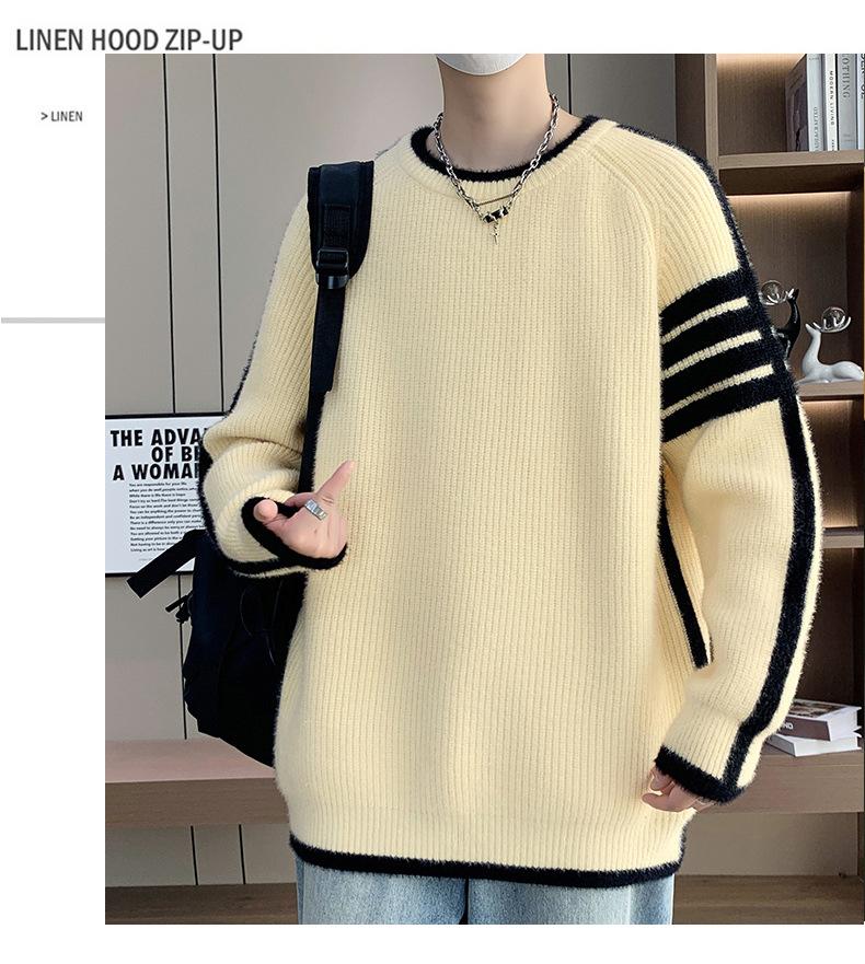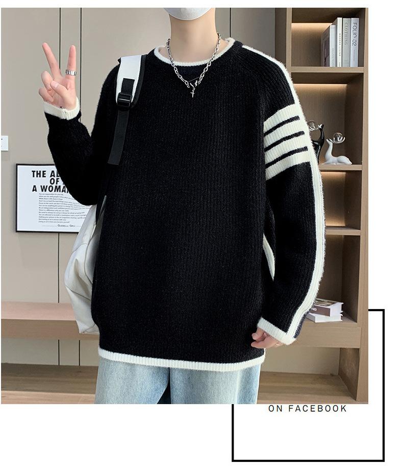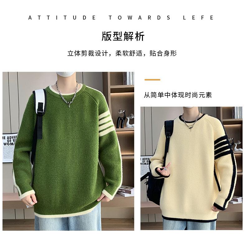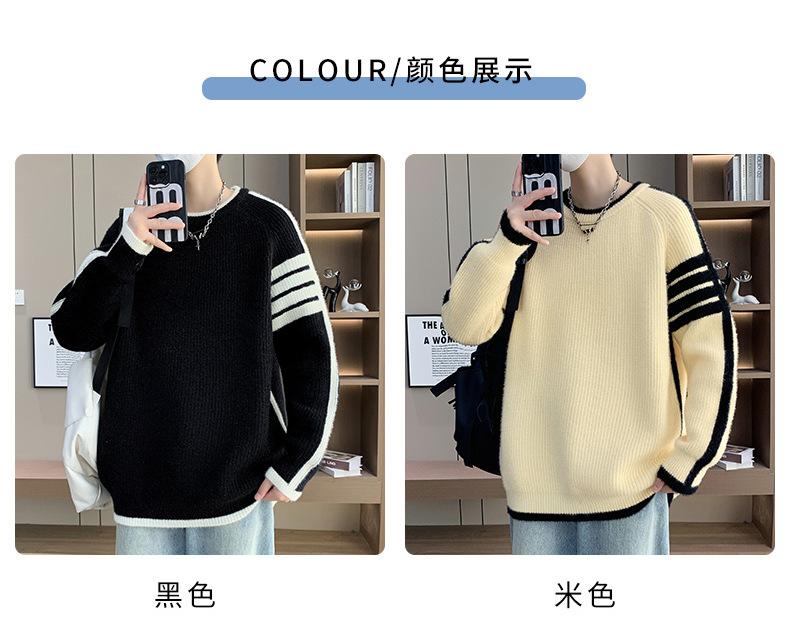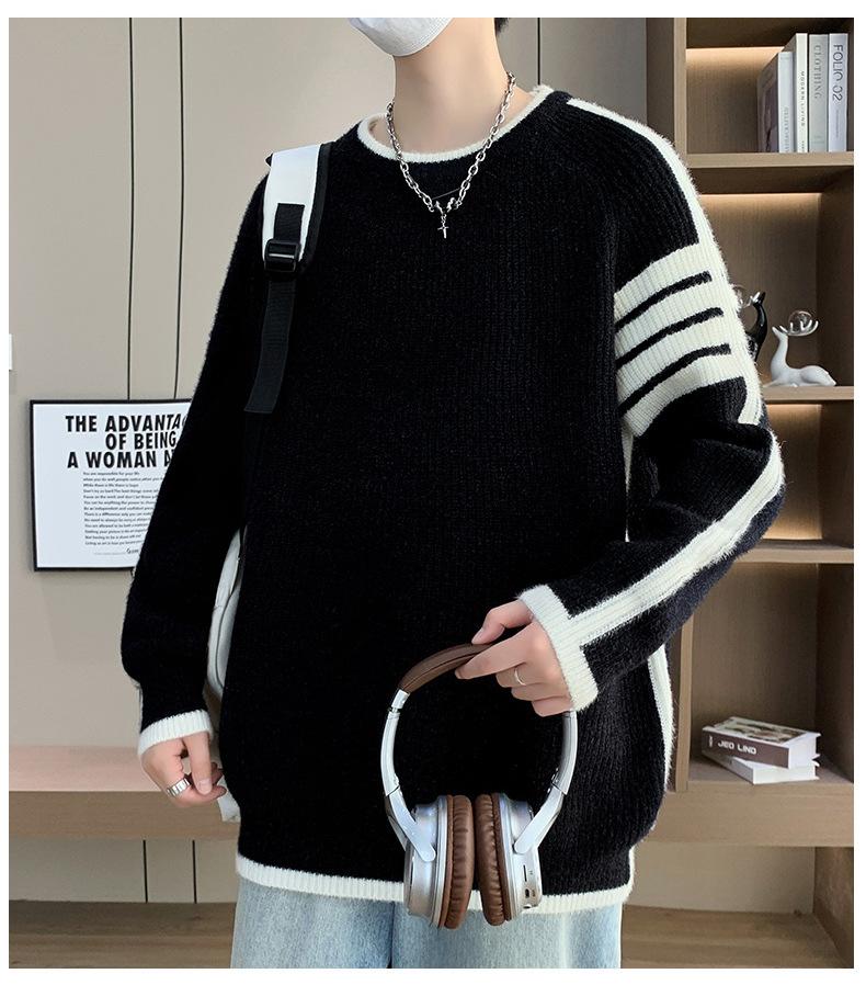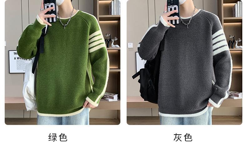 Suéter de Otoño e Invierno Cuello Redondo para Hombre Moderno Color en Contraste Nuevo Suéter Tejido Otoño e Invierno Juventud Holgado Base