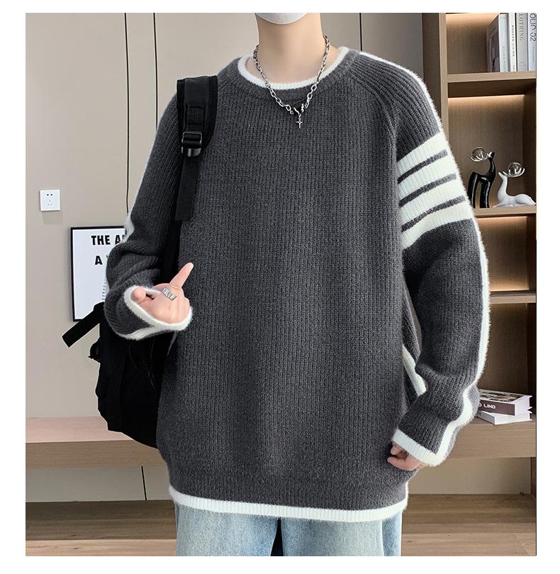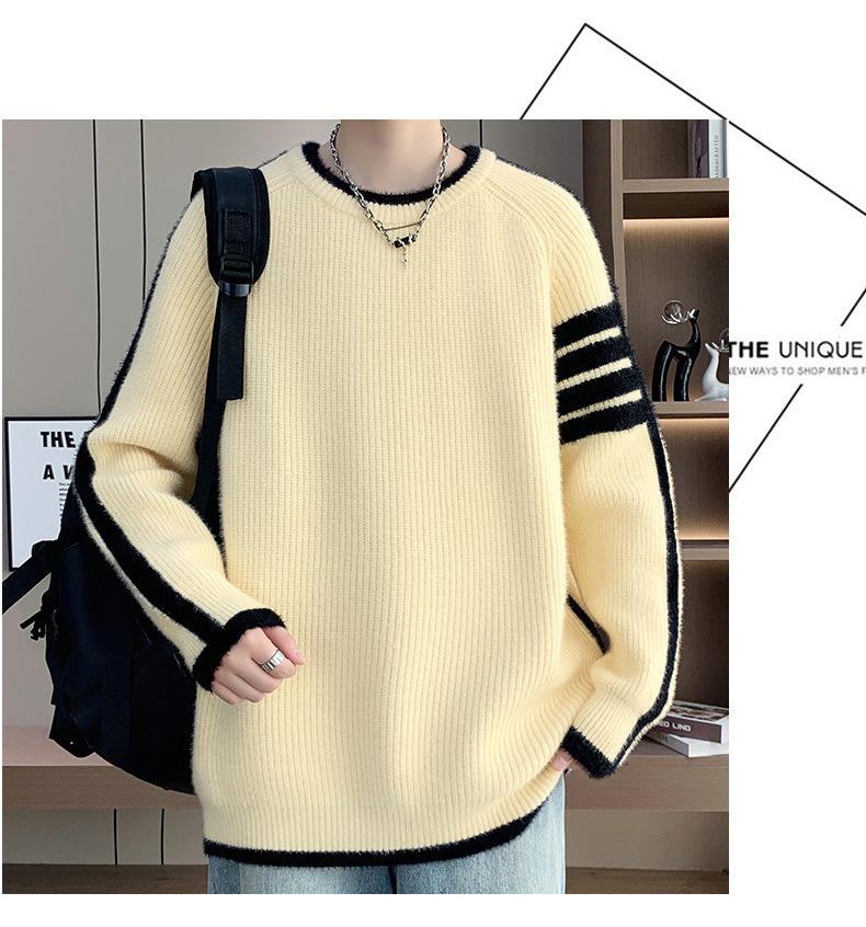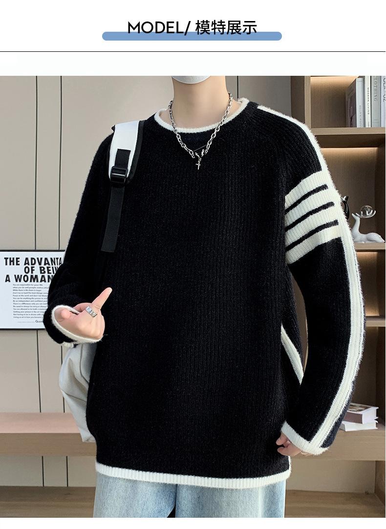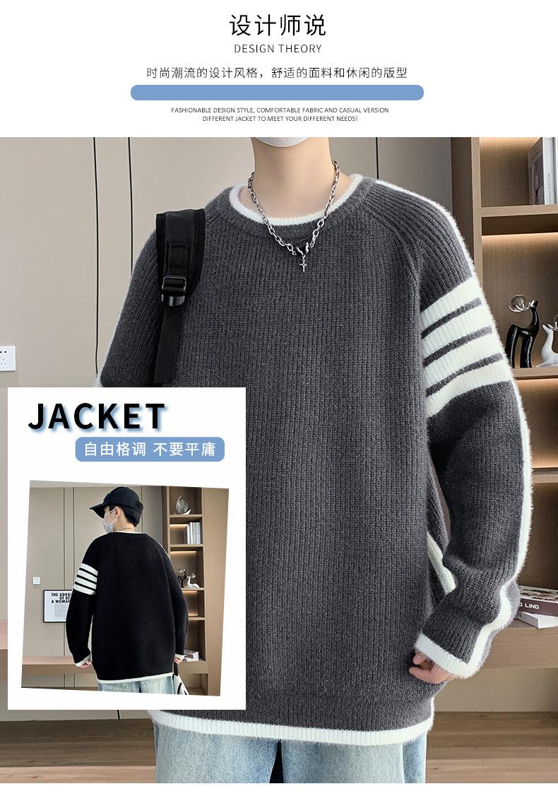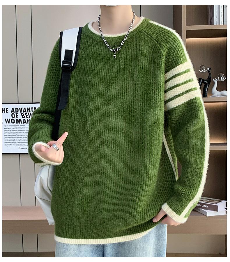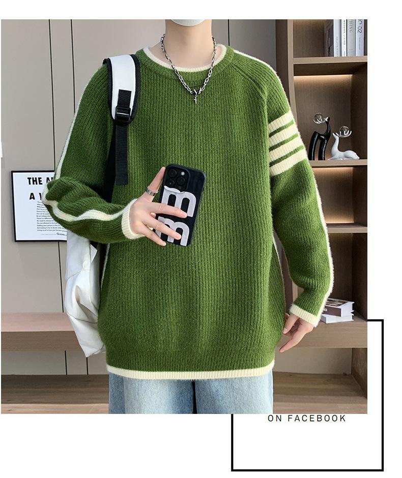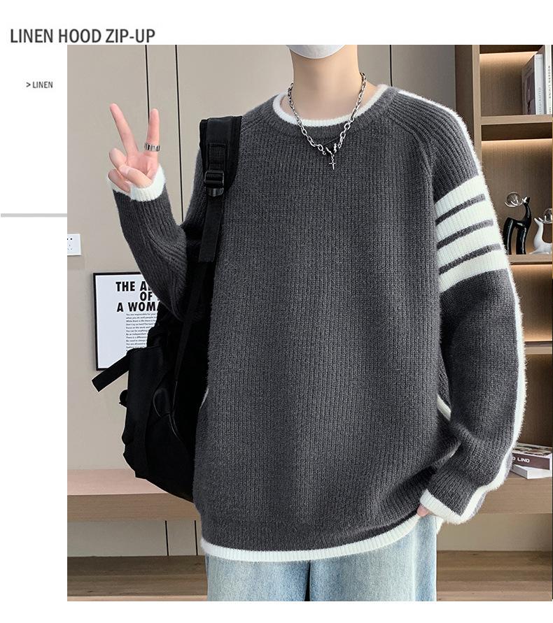 Suéter de Otoño e Invierno Cuello Redondo para Hombre Moderno Color en Contraste Nuevo Suéter Tejido Otoño e Invierno Juventud Holgado Base