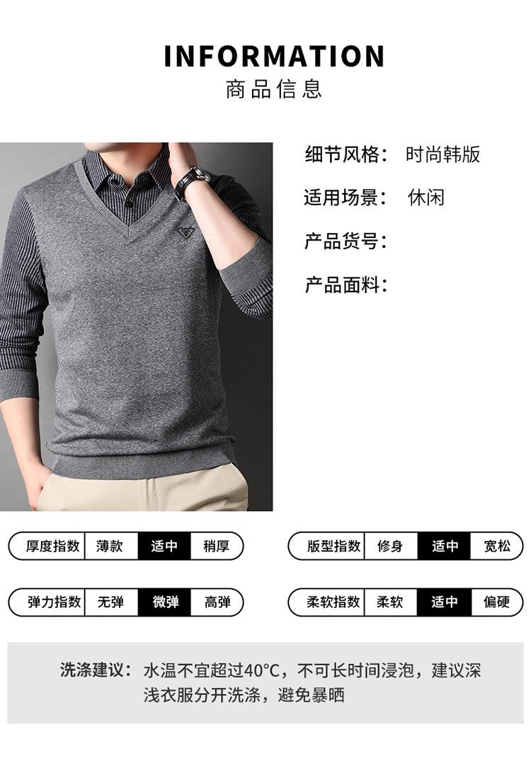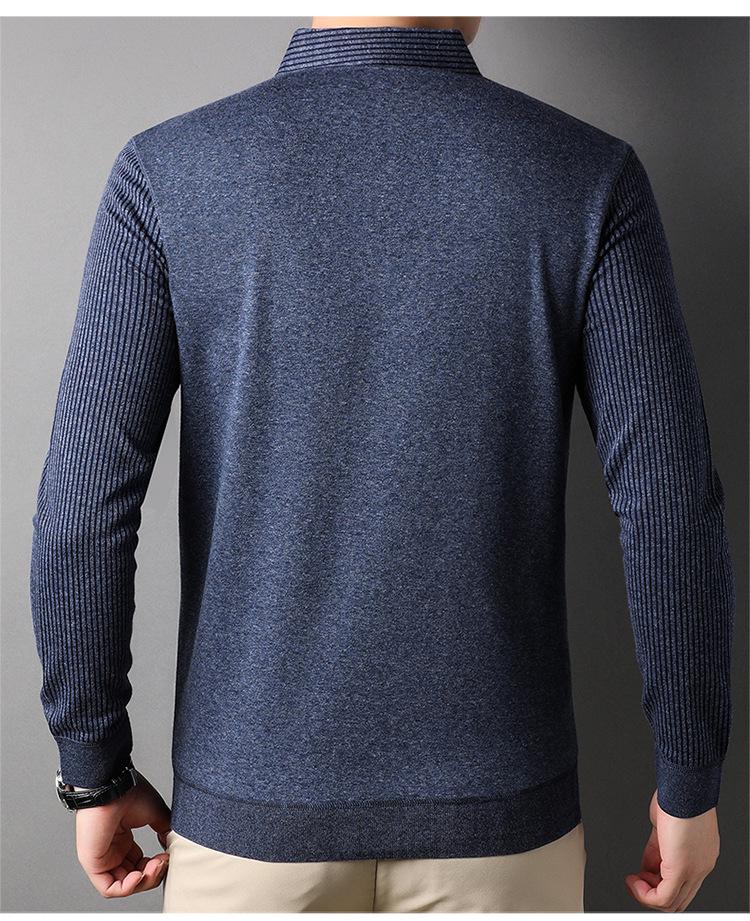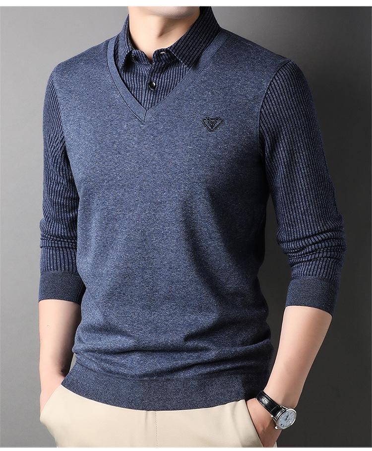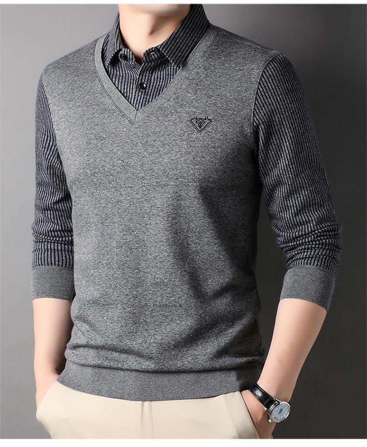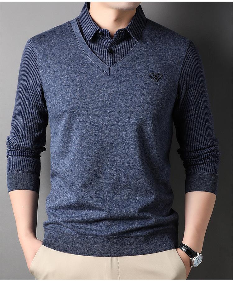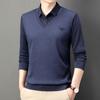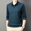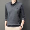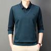 Camiseta de Manga Larga con Cuello de Camisa Falso de Dos Piezas para Hombres de Mediana Edad, Ropa de Punto Base para Suéter para Hombre, Casual de Negocios