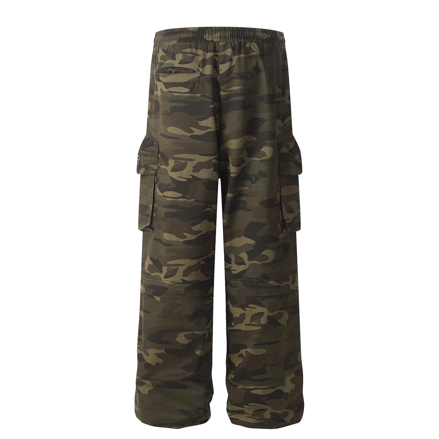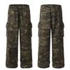 Pantalones largos de mezclilla estilo retro americano holgados de camuflaje para la industria pesada, lavados, de estilo nacional, con múltiples bolsillos y estilo nicho para el trabajo.