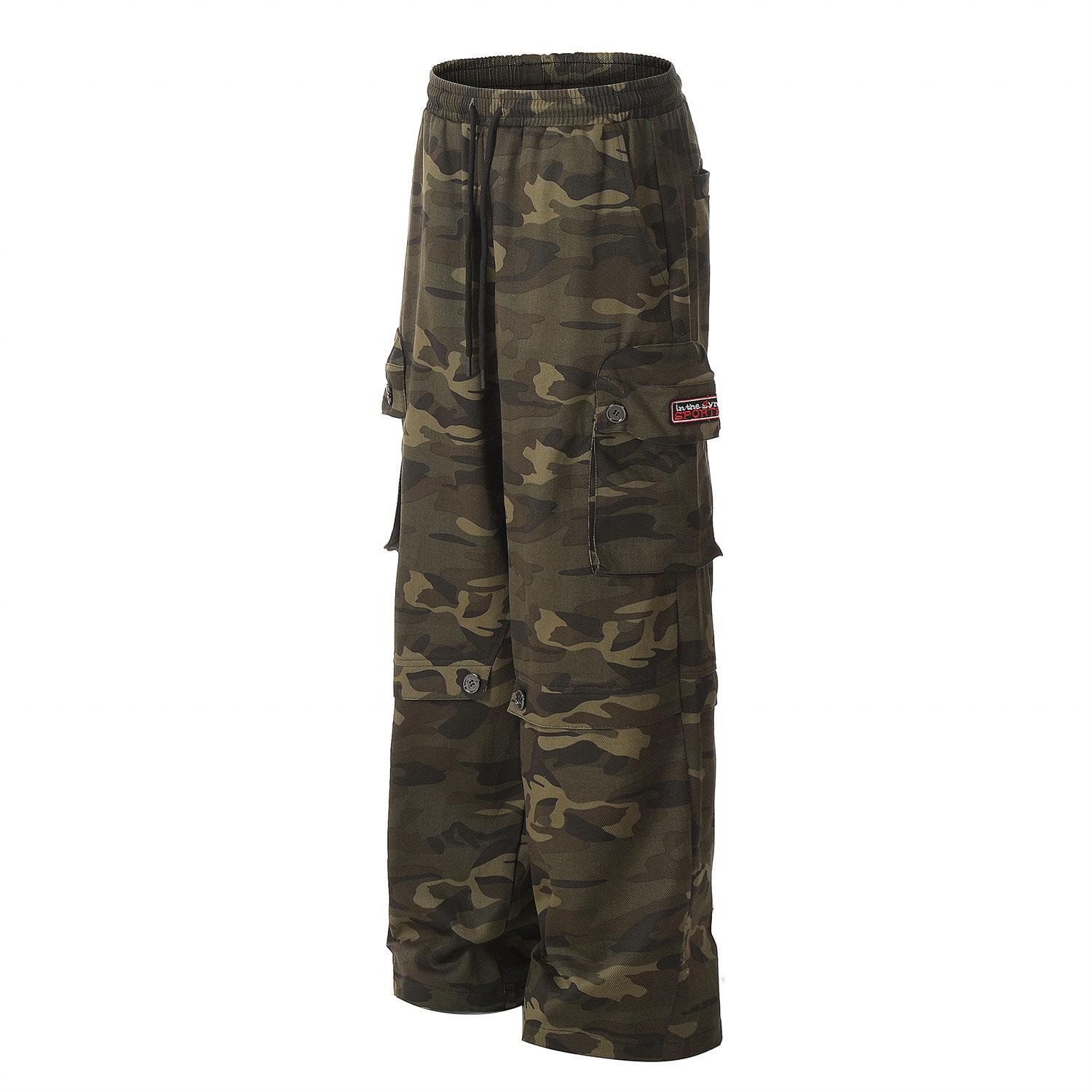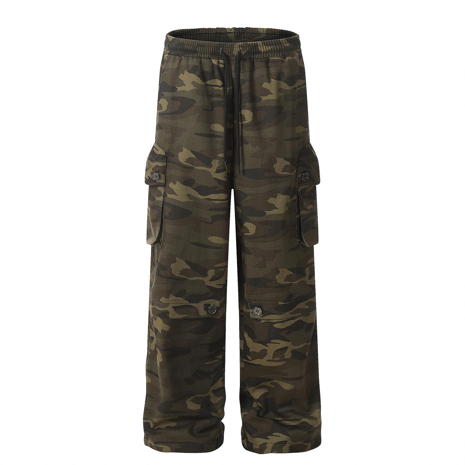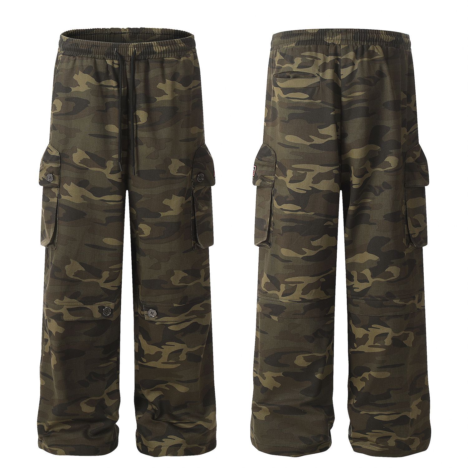 Compra Pantalones largos de mezclilla estilo retro americano holgados de camuflaje para la industria pesada, lavados, de estilo nacional, con múltiples bolsillos y estilo nicho para el trabajo. al por mayor en Joom.pro