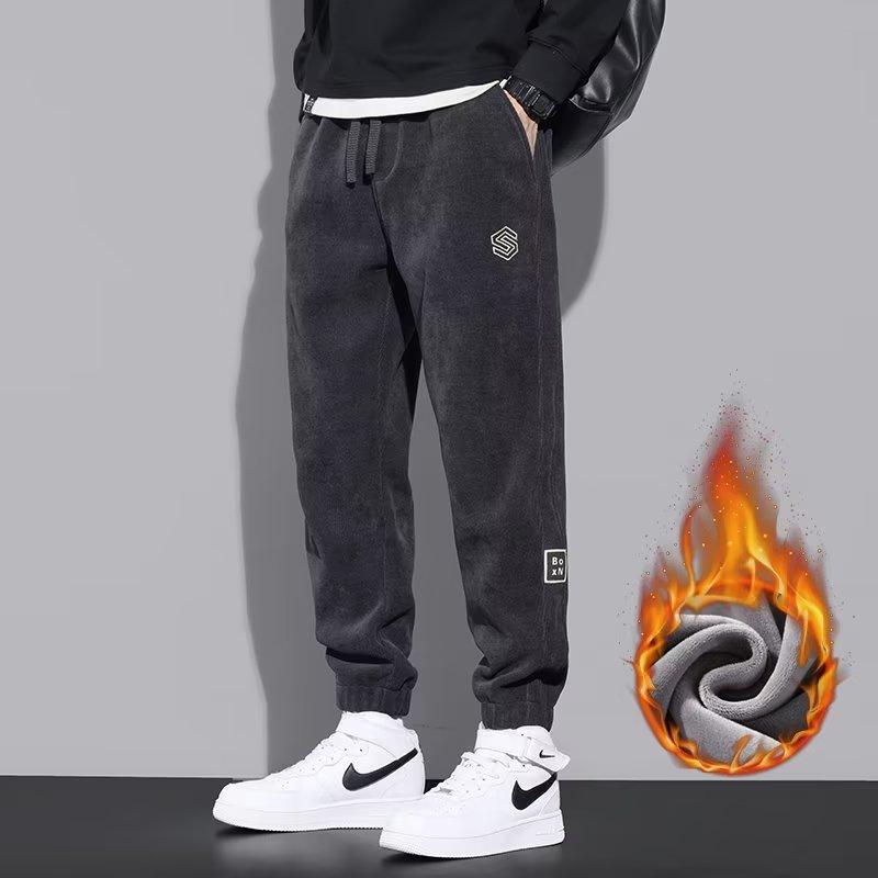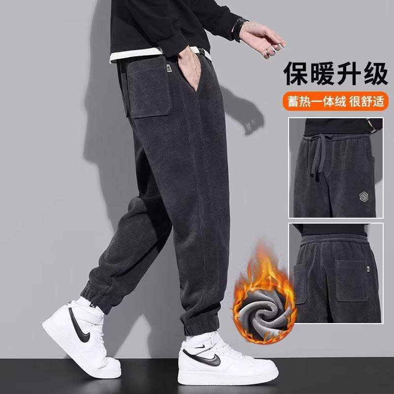 Pantalones casuales de comercio transfronterizo para hombre, pantalones holgados de otoño e invierno con forro polar, pantalones deportivos gruesos y cálidos de moda