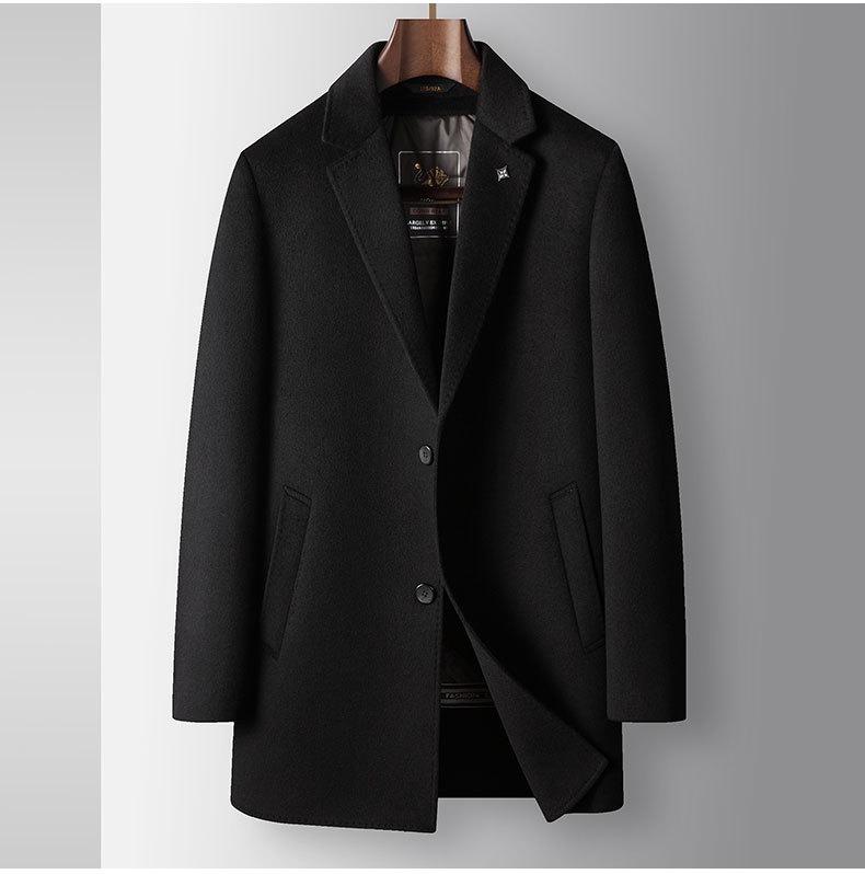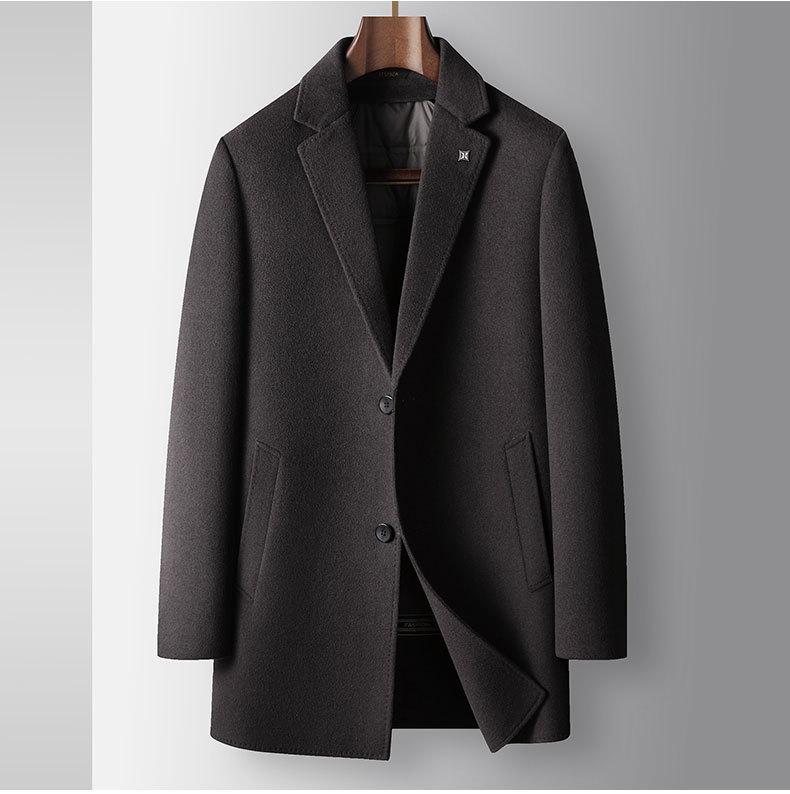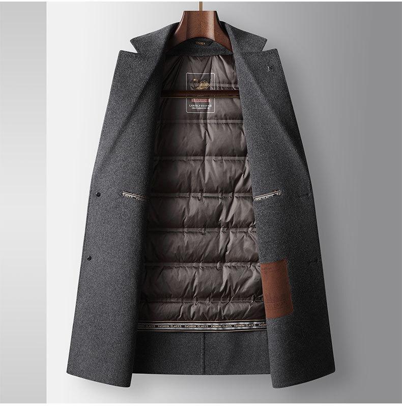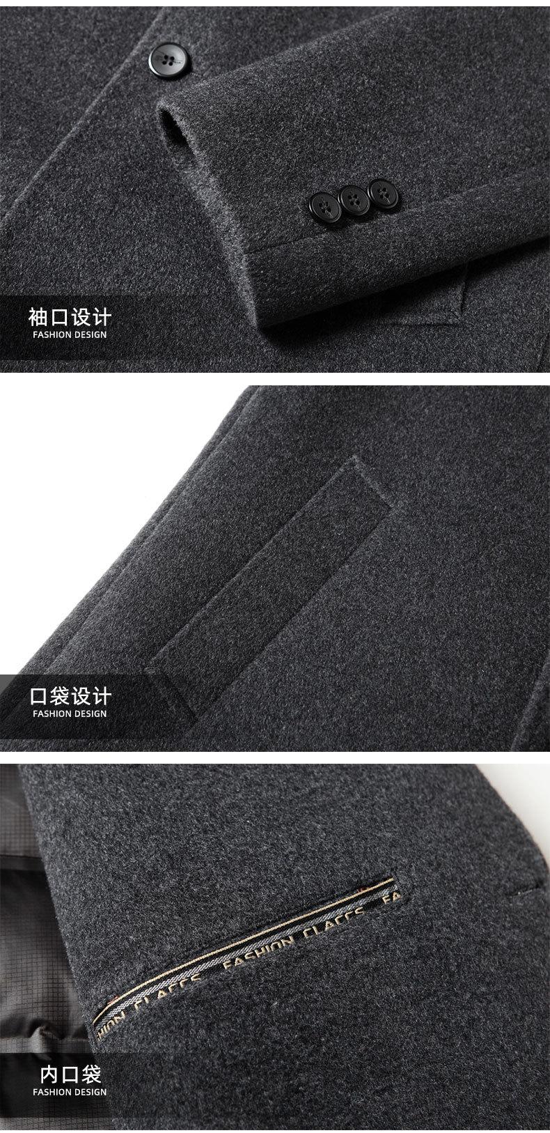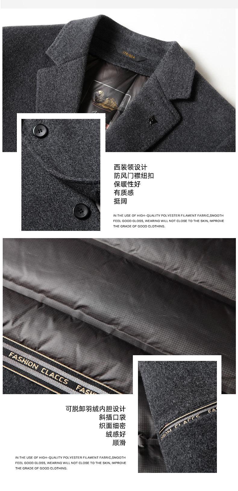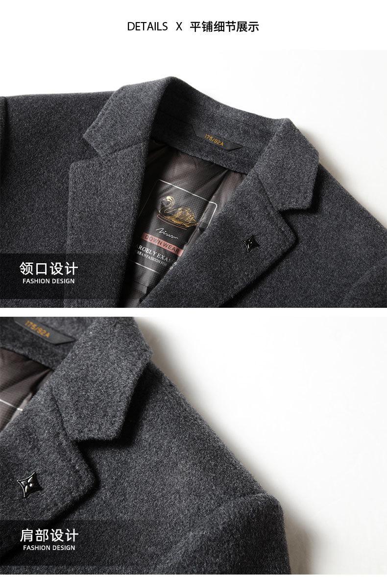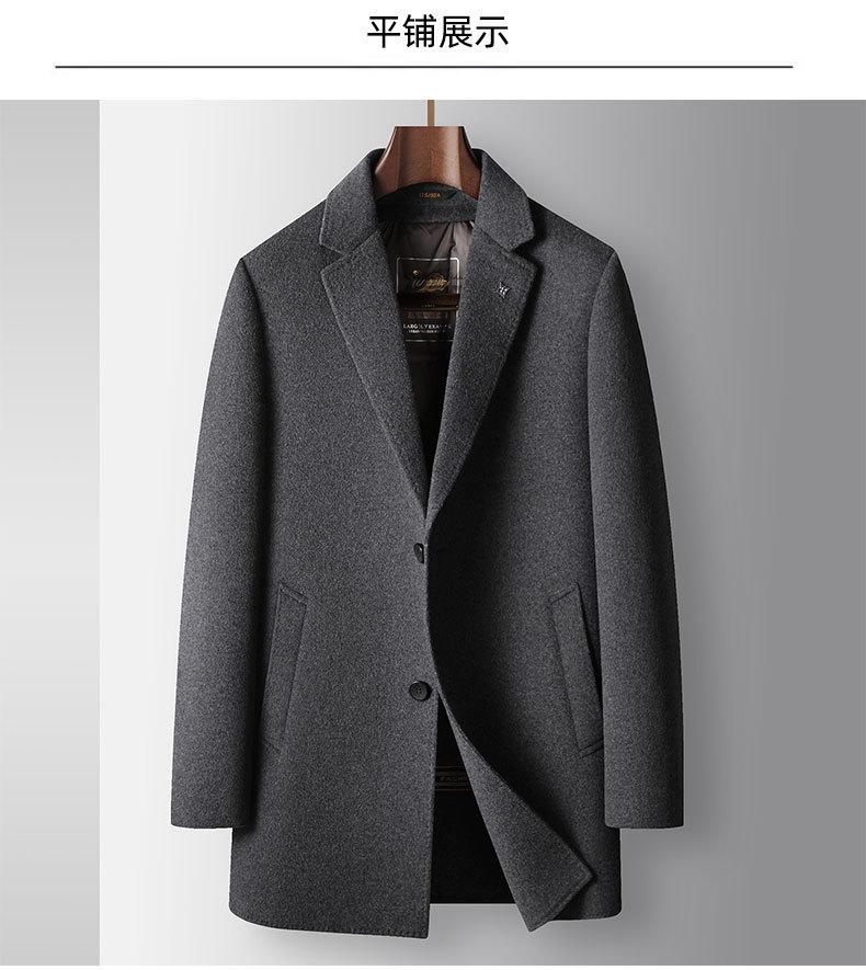 Chaqueta de lana para hombre, otoño e invierno 2024, cuello de traje de longitud media, juvenil, de negocios, con forro de plumón extraíble, cálida.