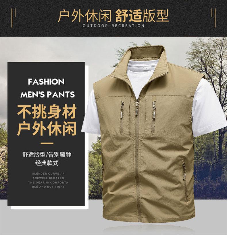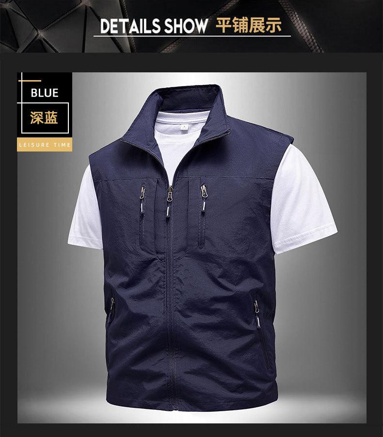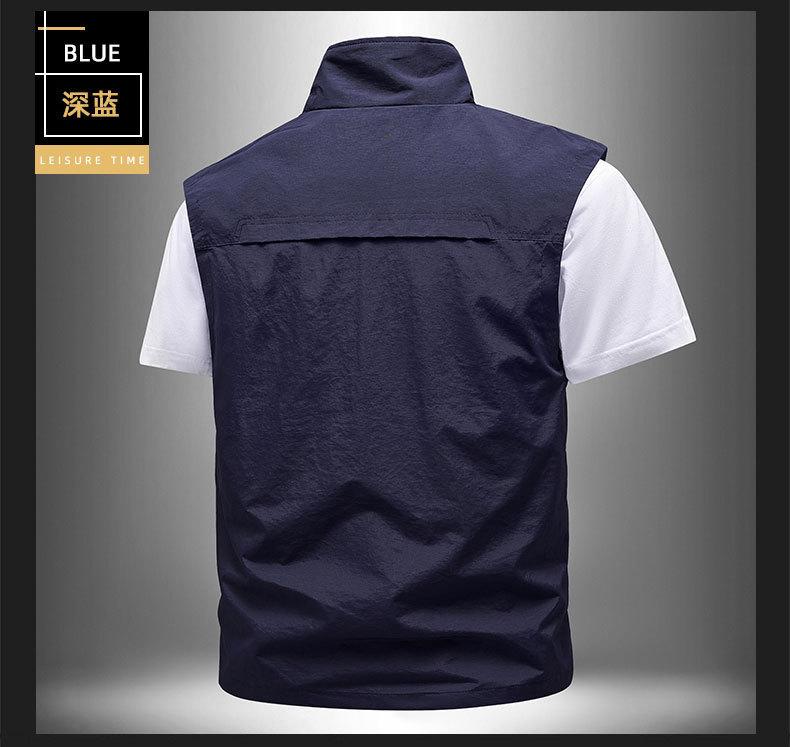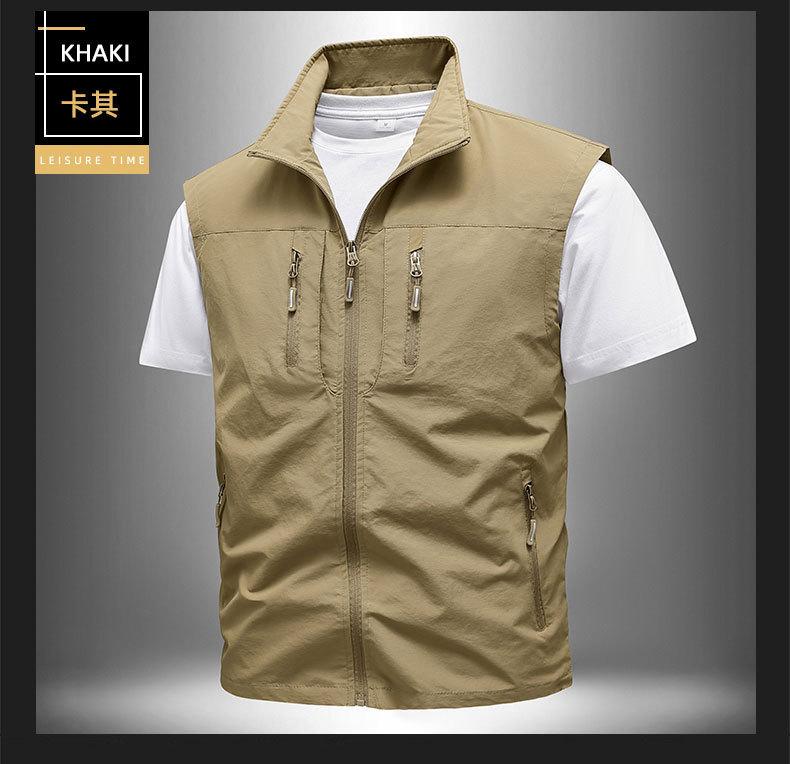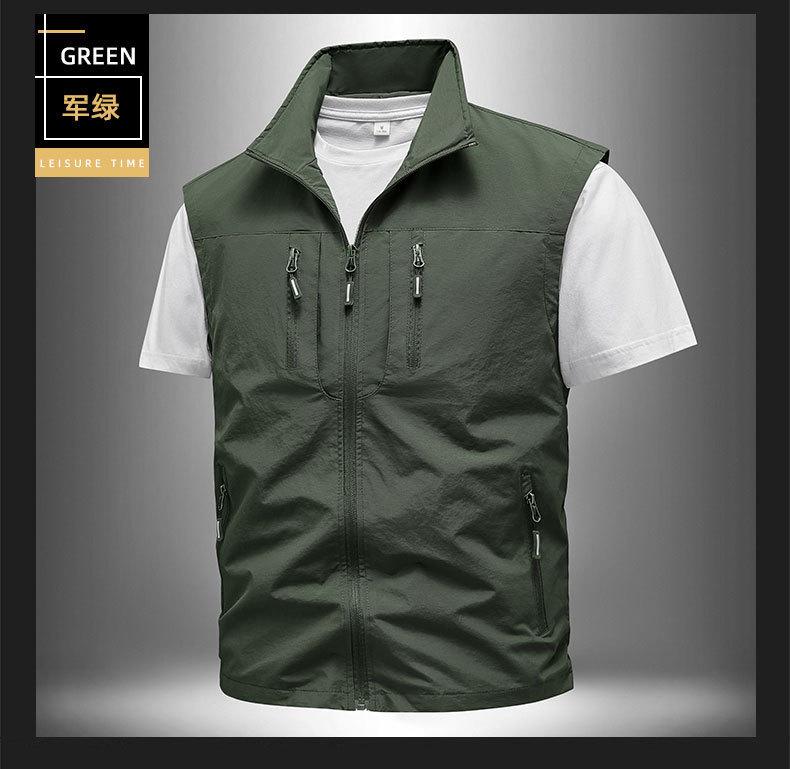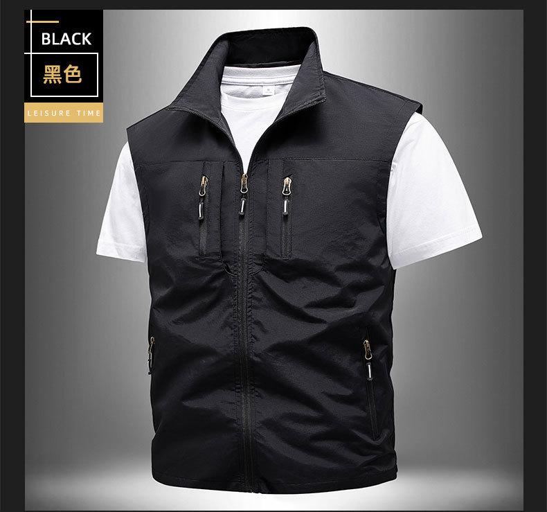 [1806] chaleco delgado de primavera y otoño para hombre para exteriores con múltiples bolsillos color sólido ropa de trabajo cuello alto chaleco casual para hombre