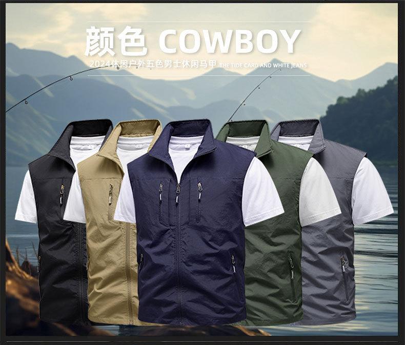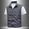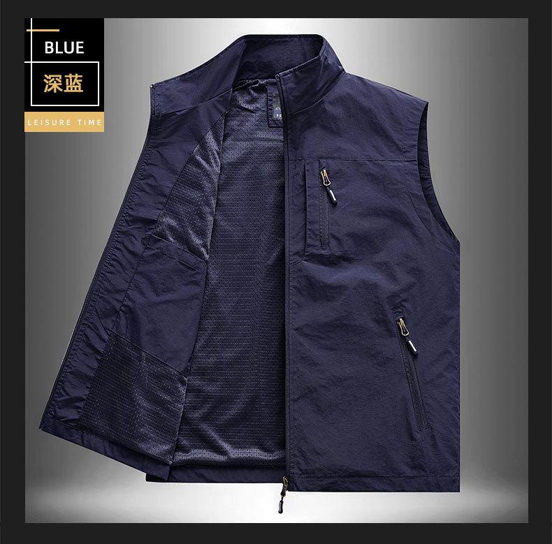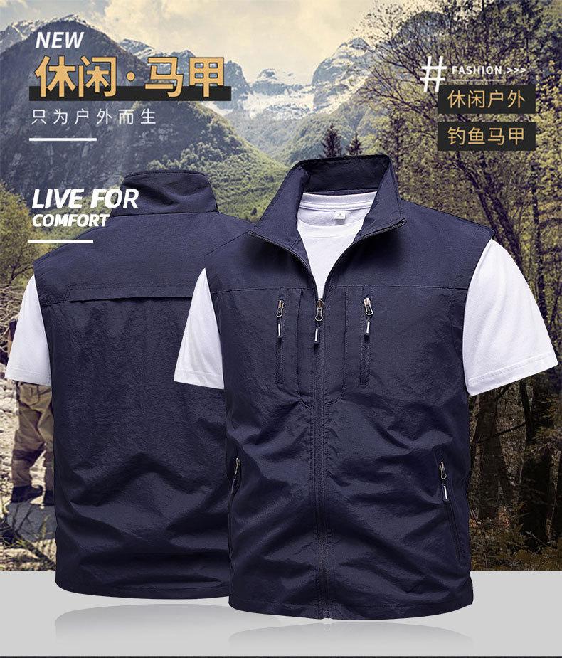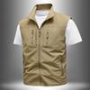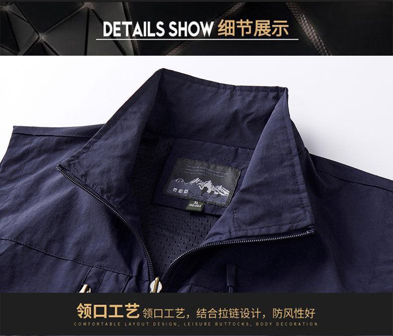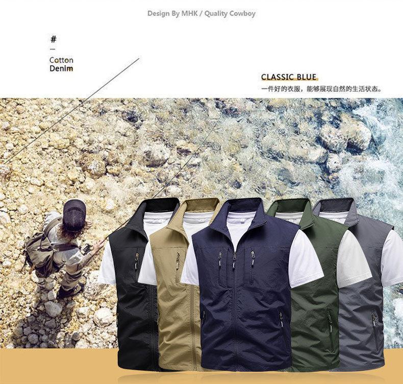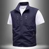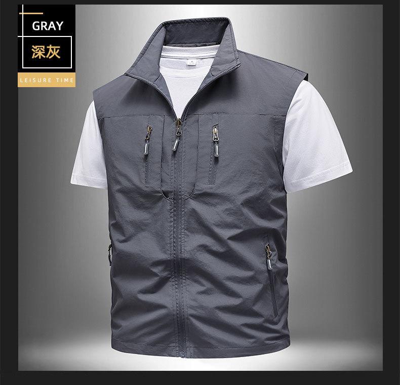 [1806] chaleco delgado de primavera y otoño para hombre para exteriores con múltiples bolsillos color sólido ropa de trabajo cuello alto chaleco casual para hombre