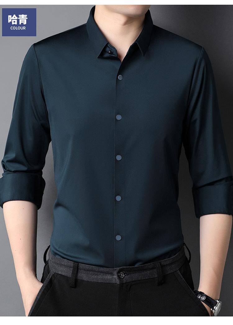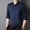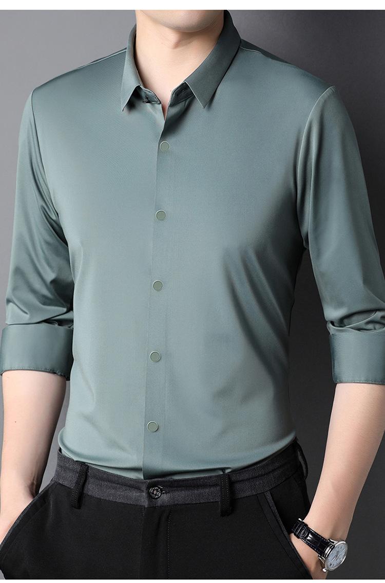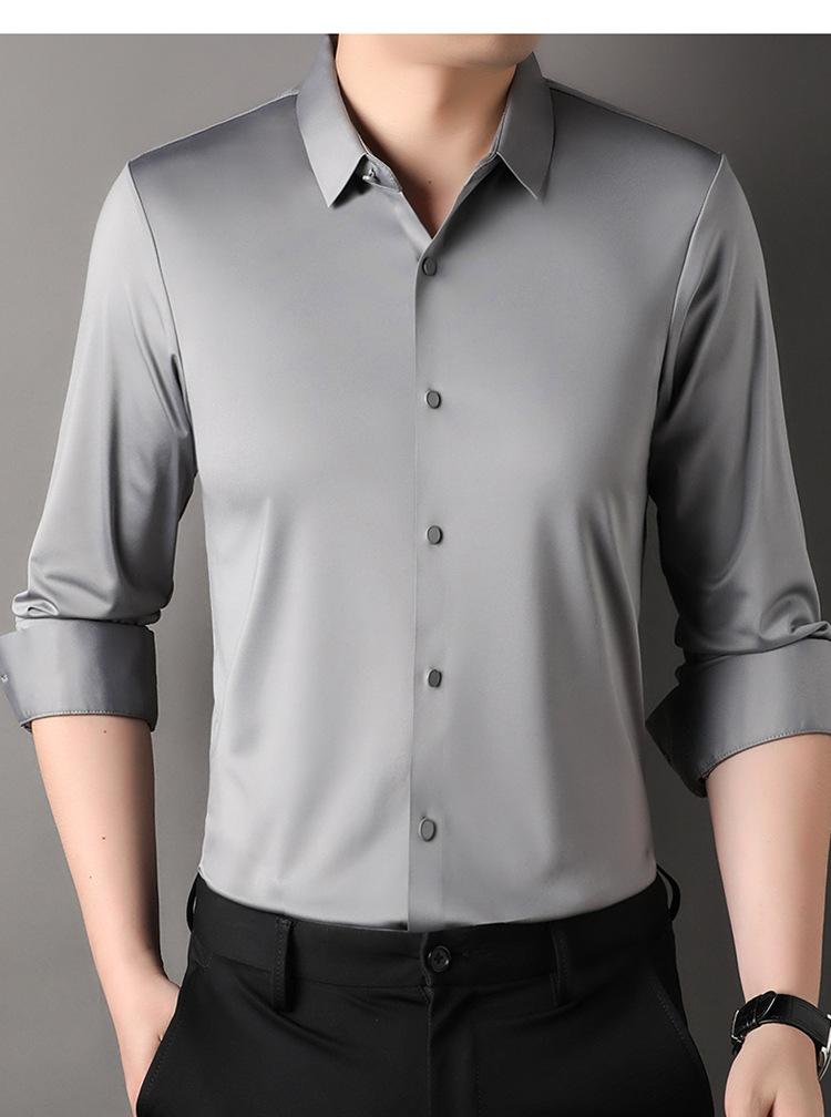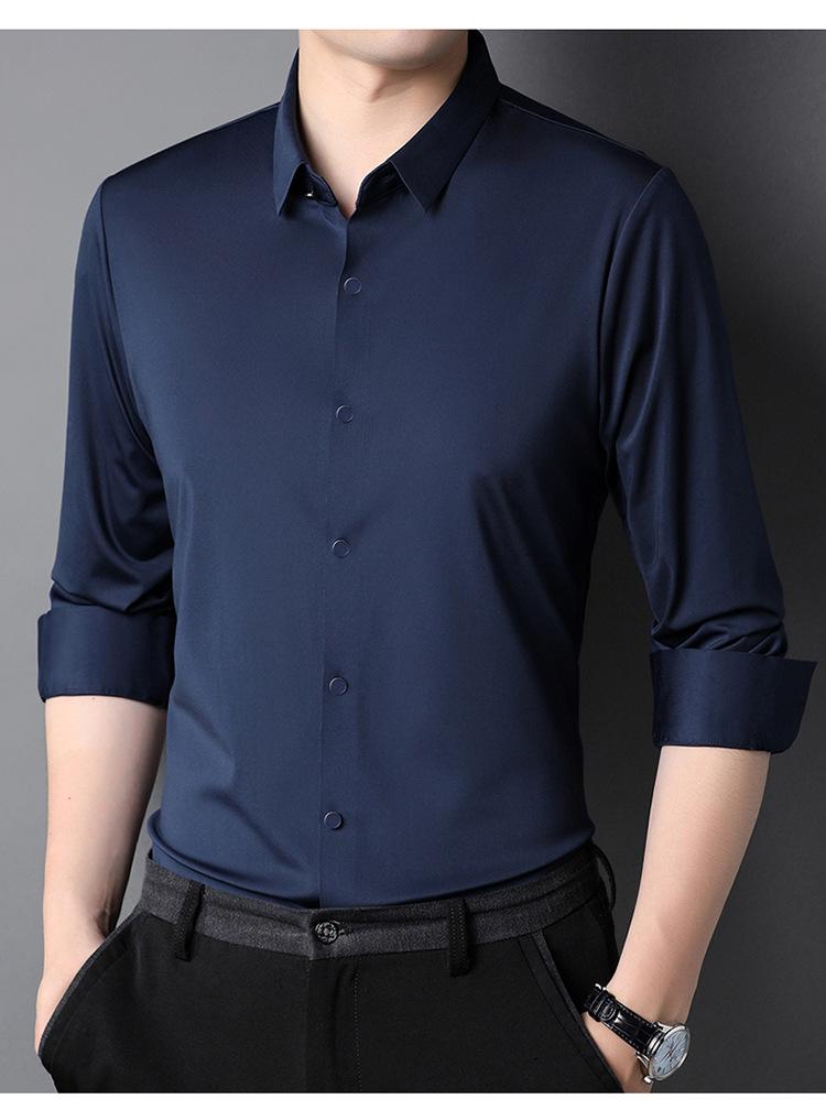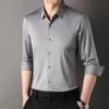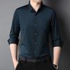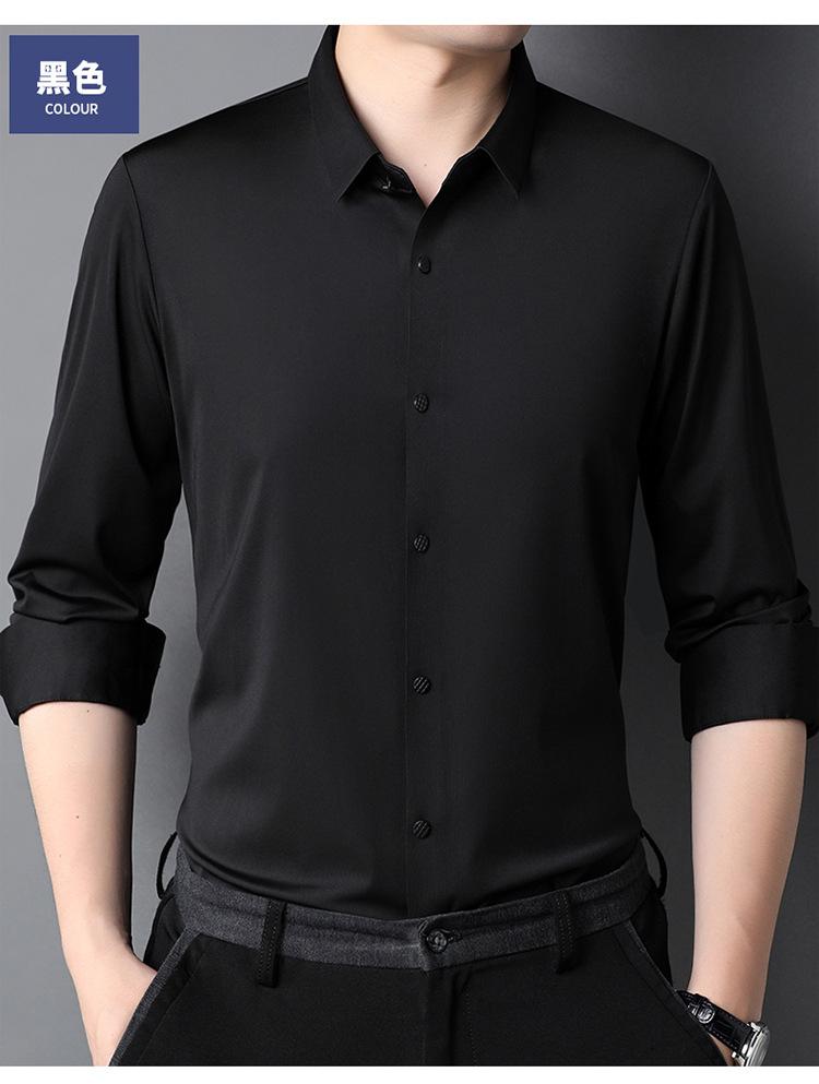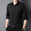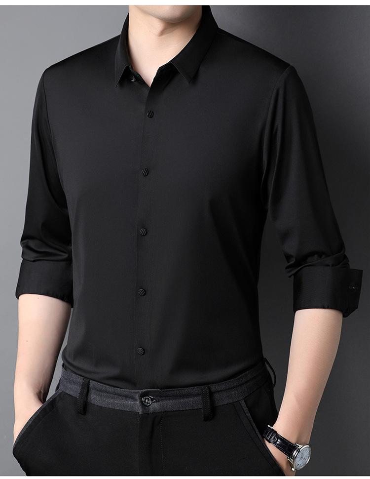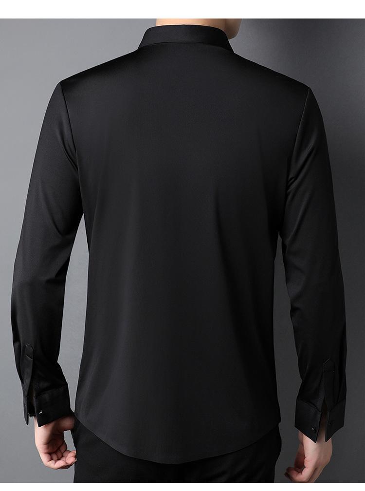 Camisa de Vestir Negra de Gama Alta para Hombre 2025, Manga Larga, Capa Interior Elástica, Estilo Coreano Ajustado para Negocios, Camisa Base de Manga Corta