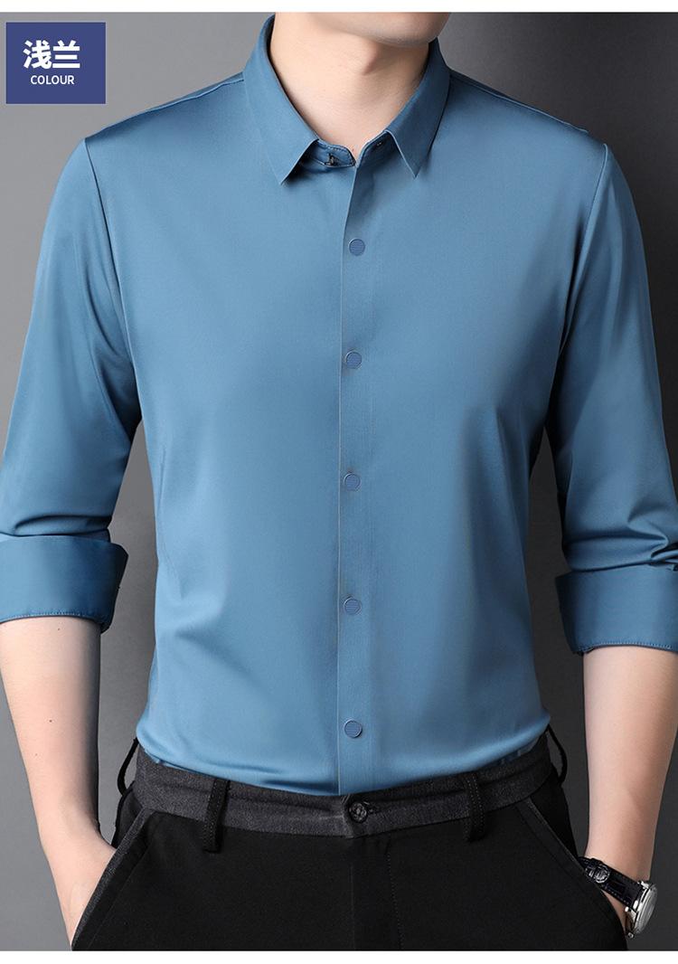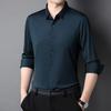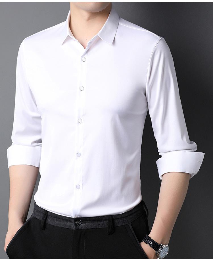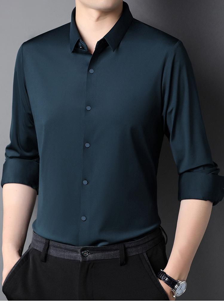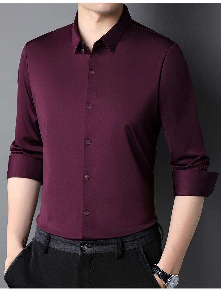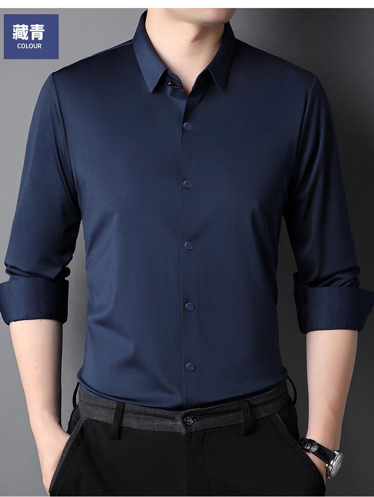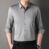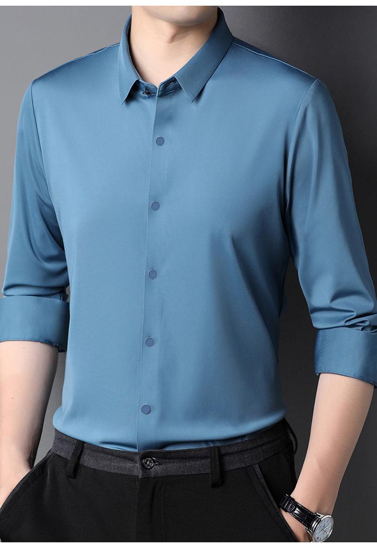 Camisa de Vestir Negra de Gama Alta para Hombre 2025, Manga Larga, Capa Interior Elástica, Estilo Coreano Ajustado para Negocios, Camisa Base de Manga Corta