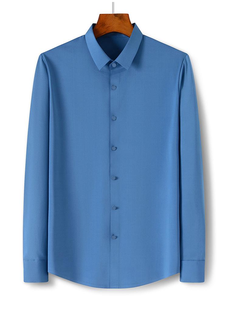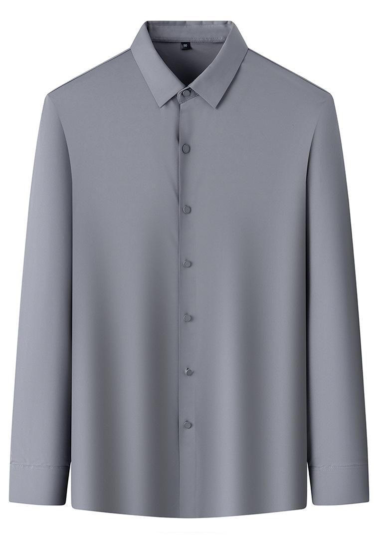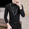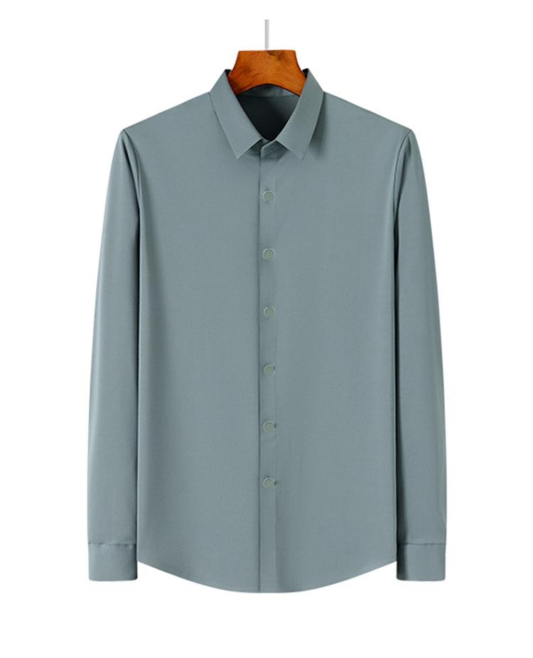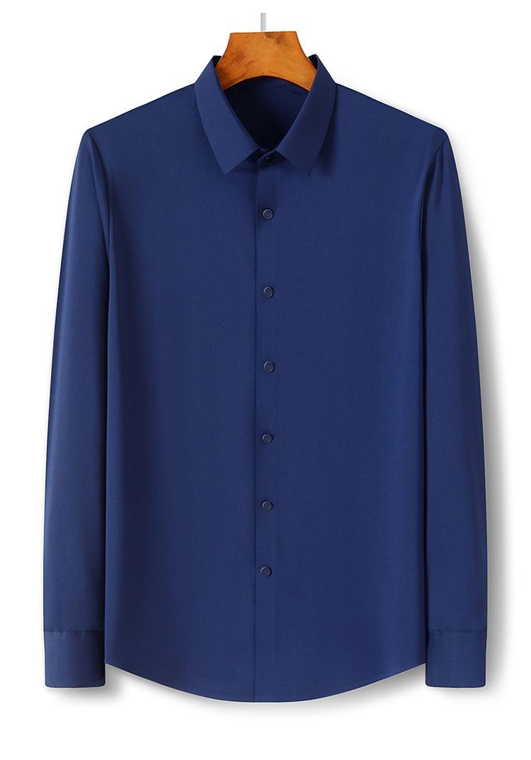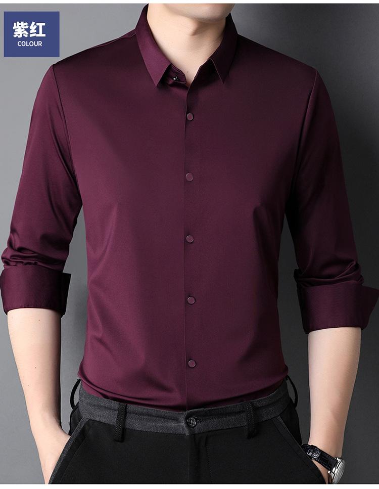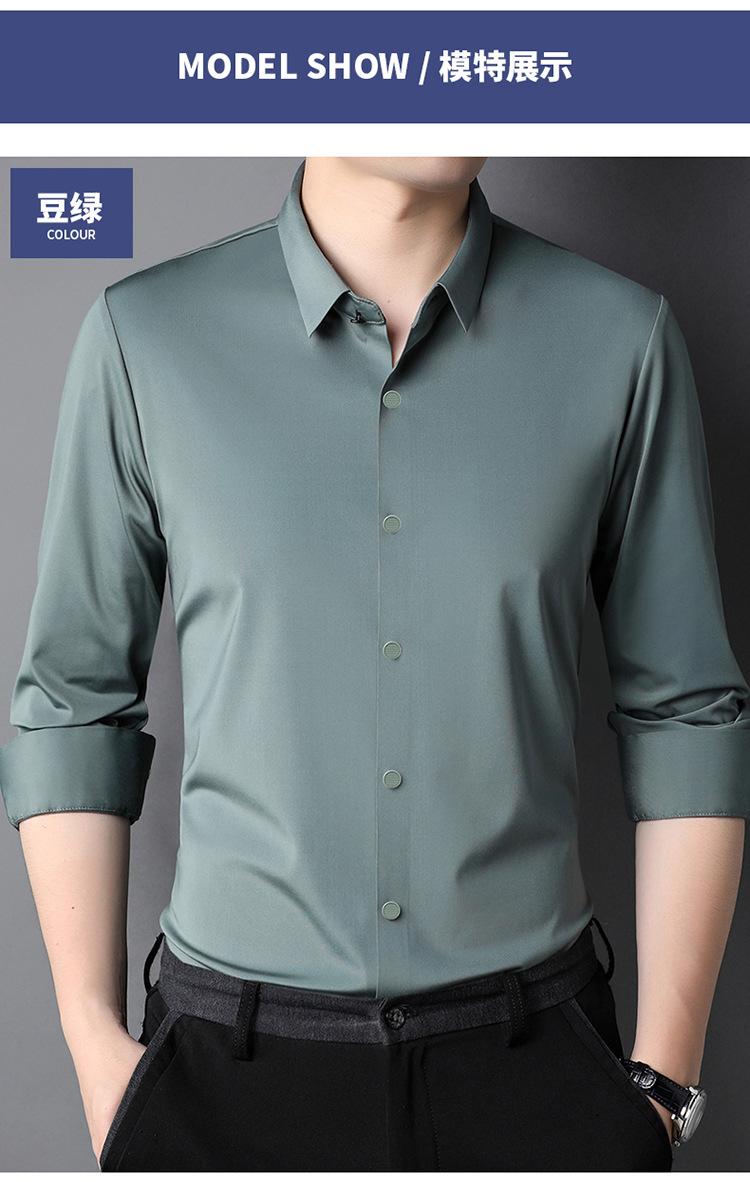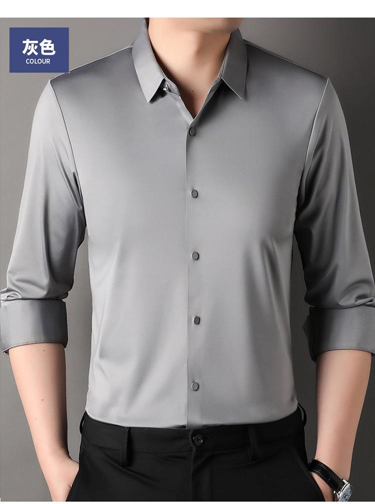 Camisa de Vestir Negra de Gama Alta para Hombre 2025, Manga Larga, Capa Interior Elástica, Estilo Coreano Ajustado para Negocios, Camisa Base de Manga Corta