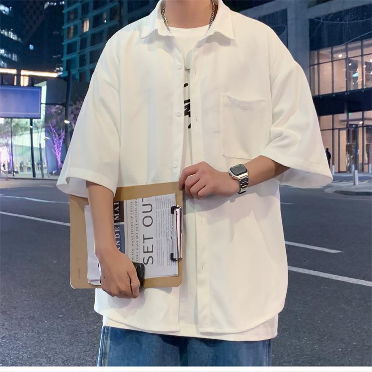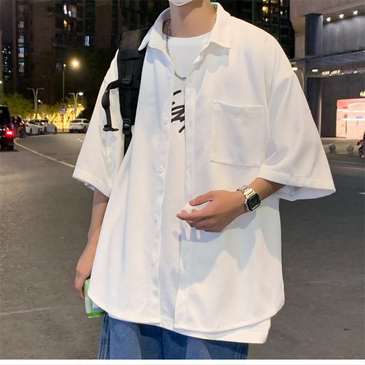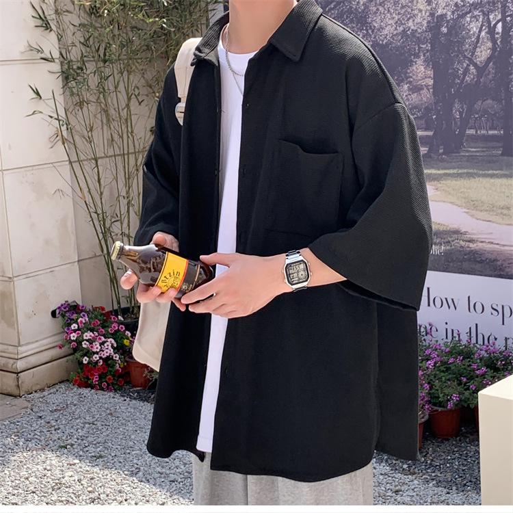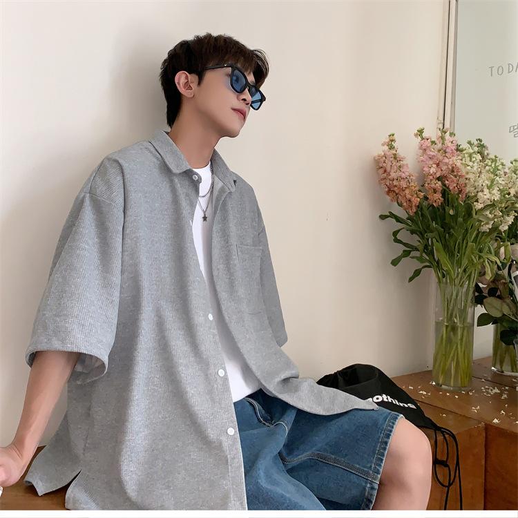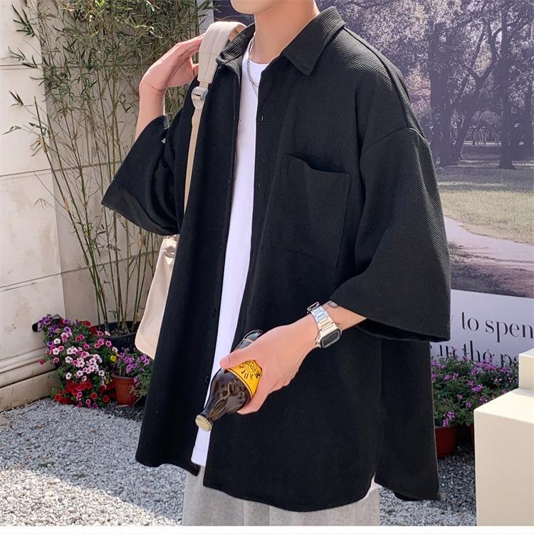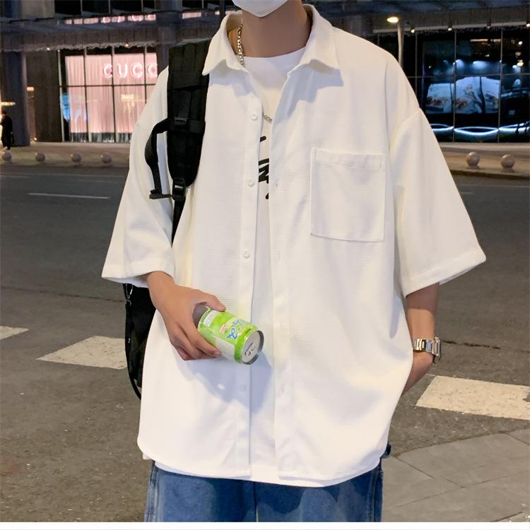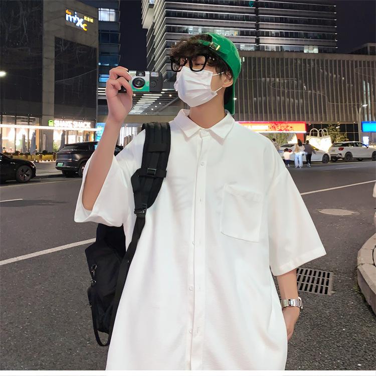 Camisa informal de color liso para hombre, estilo Xia Gang 2022, nueva camisa con ventilación tipo gofre, camisa holgada de manga corta de talla grande para hombre