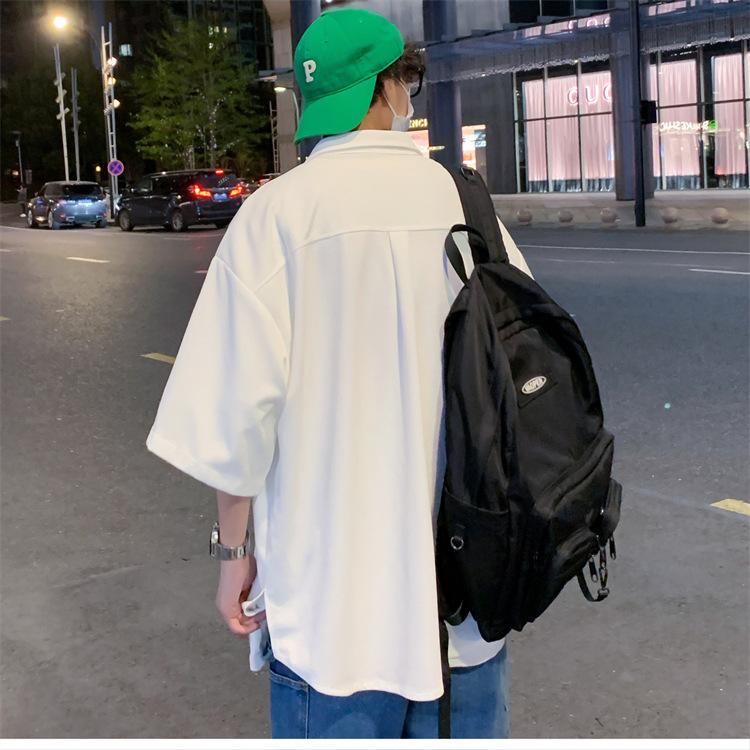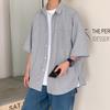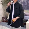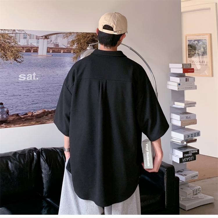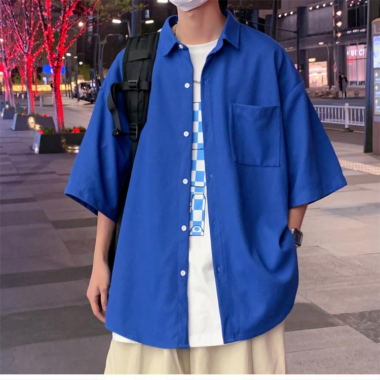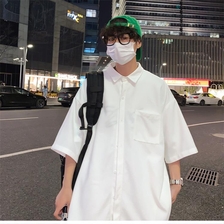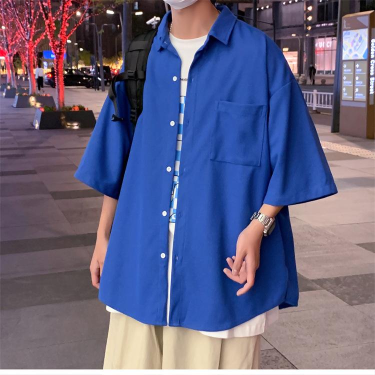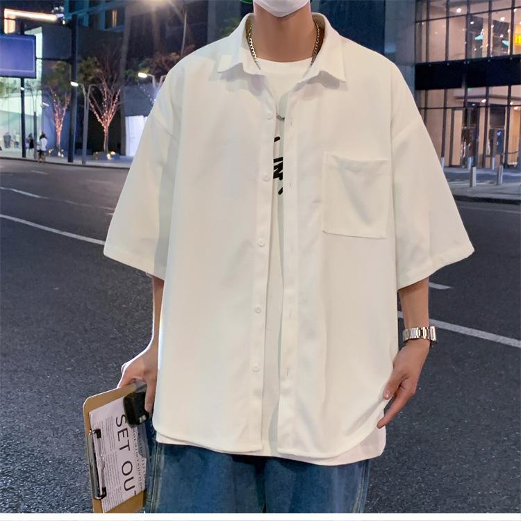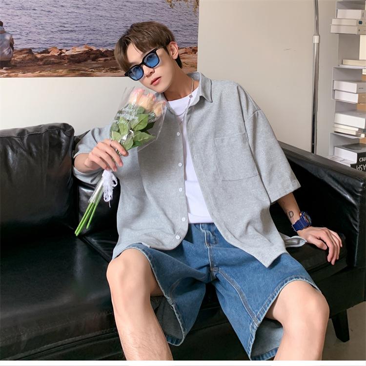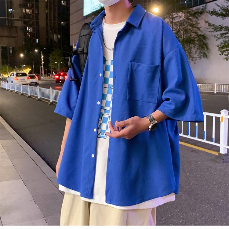 Camisa informal de color liso para hombre, estilo Xia Gang 2022, nueva camisa con ventilación tipo gofre, camisa holgada de manga corta de talla grande para hombre