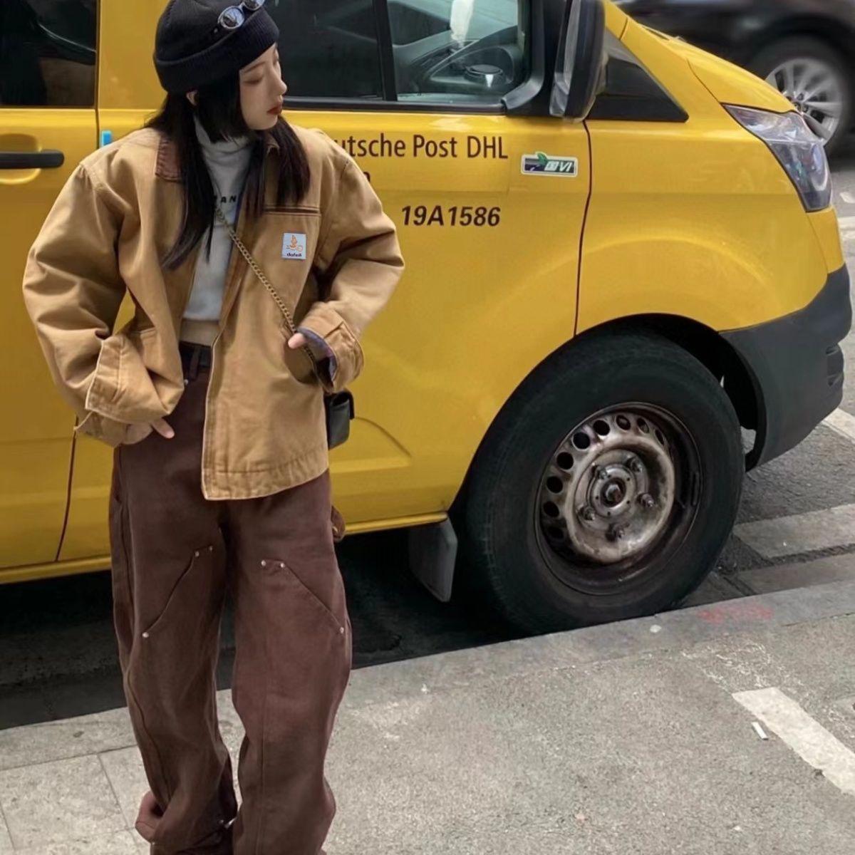 Chaqueta Detroit de primavera y otoño de 2024, estilo americano, de lona, vintage, vintageJ001, para caza y otoño, para hombre.