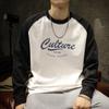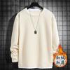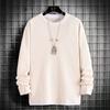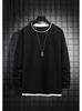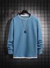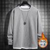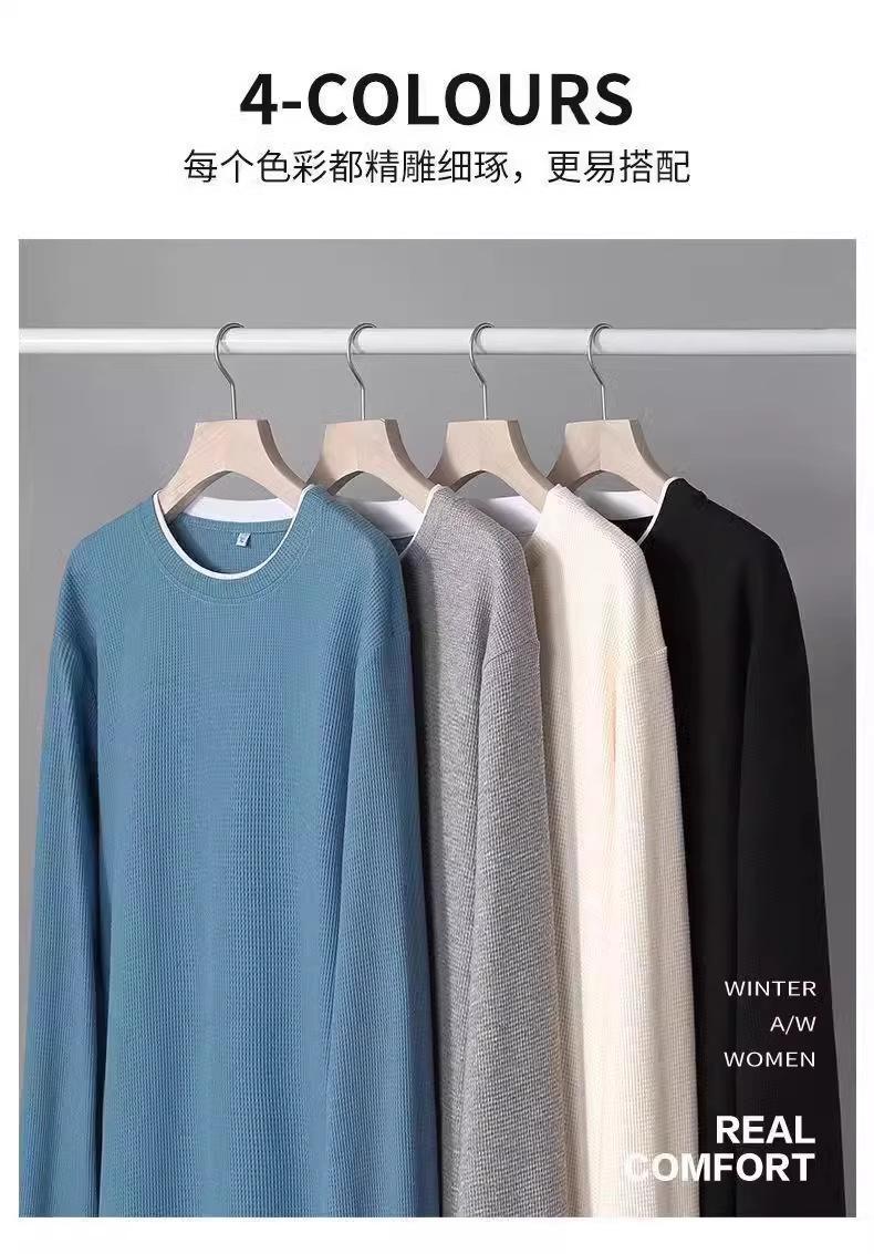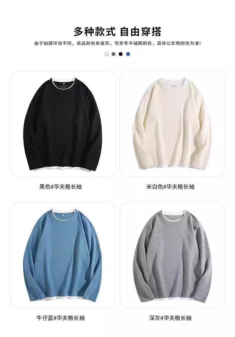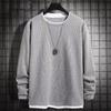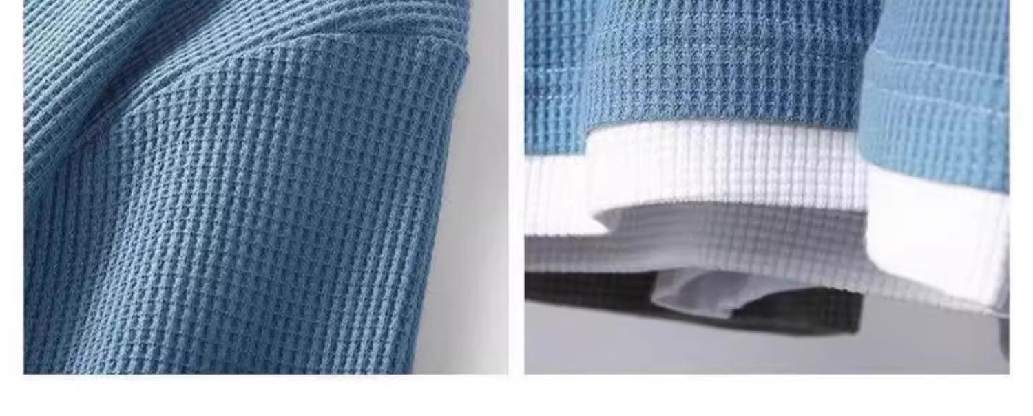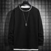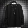 Camiseta de manga larga de dos piezas con estampado de gofres para hombre, nueva camiseta de moda con cuello redondo holgado y base interior, suéter de otoño e invierno