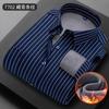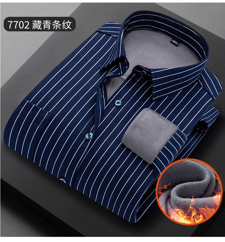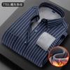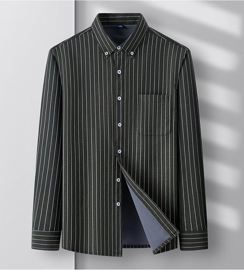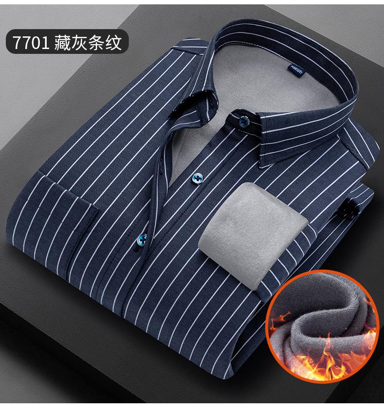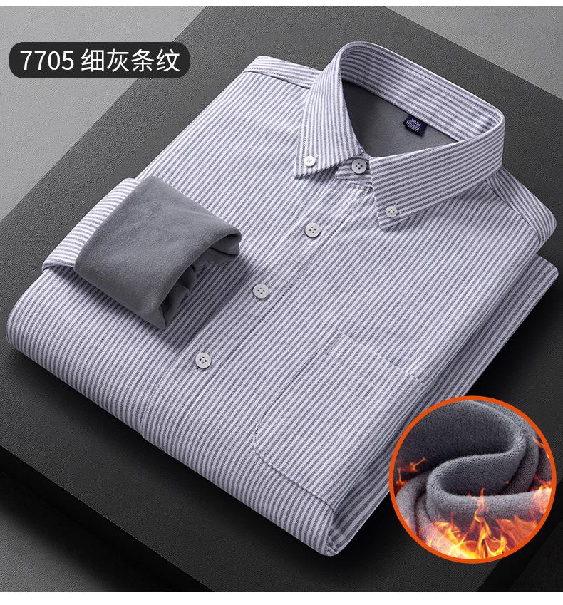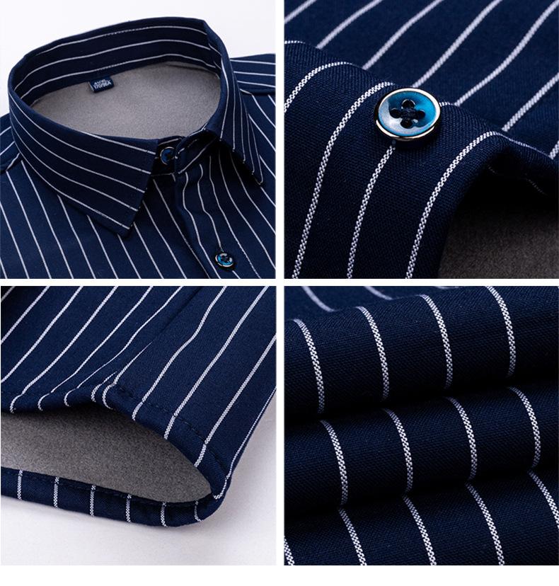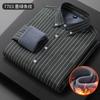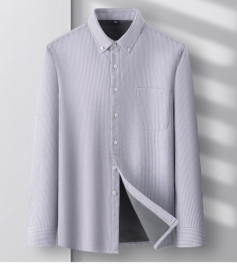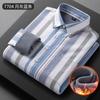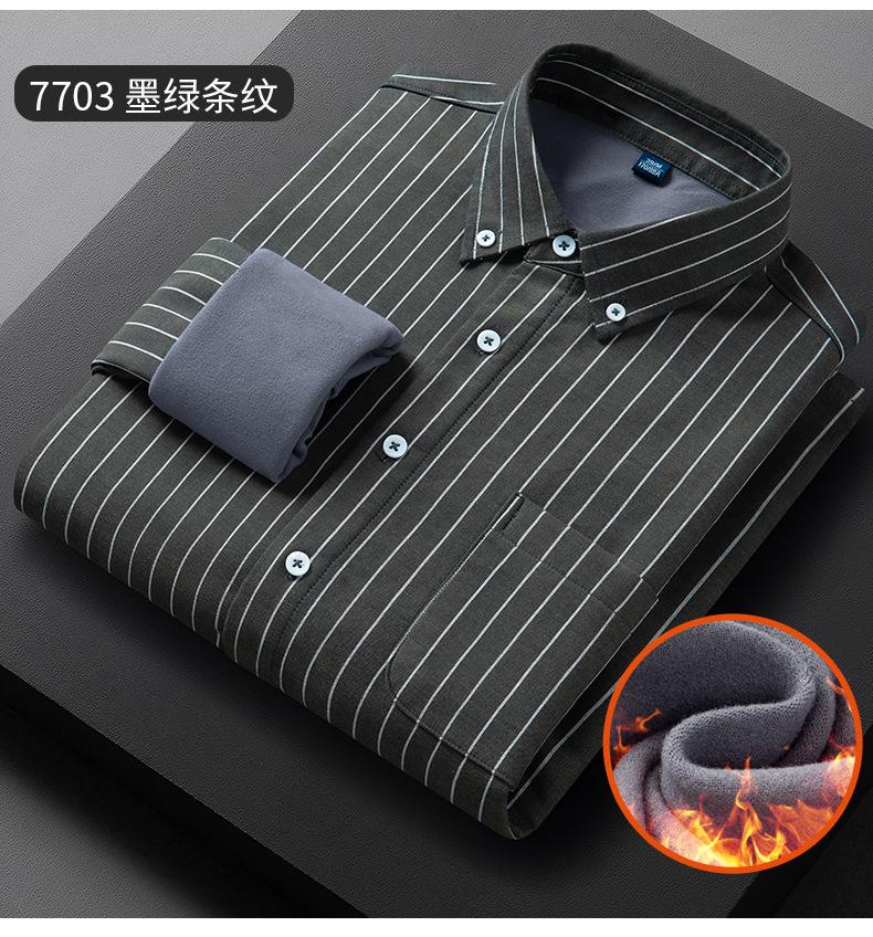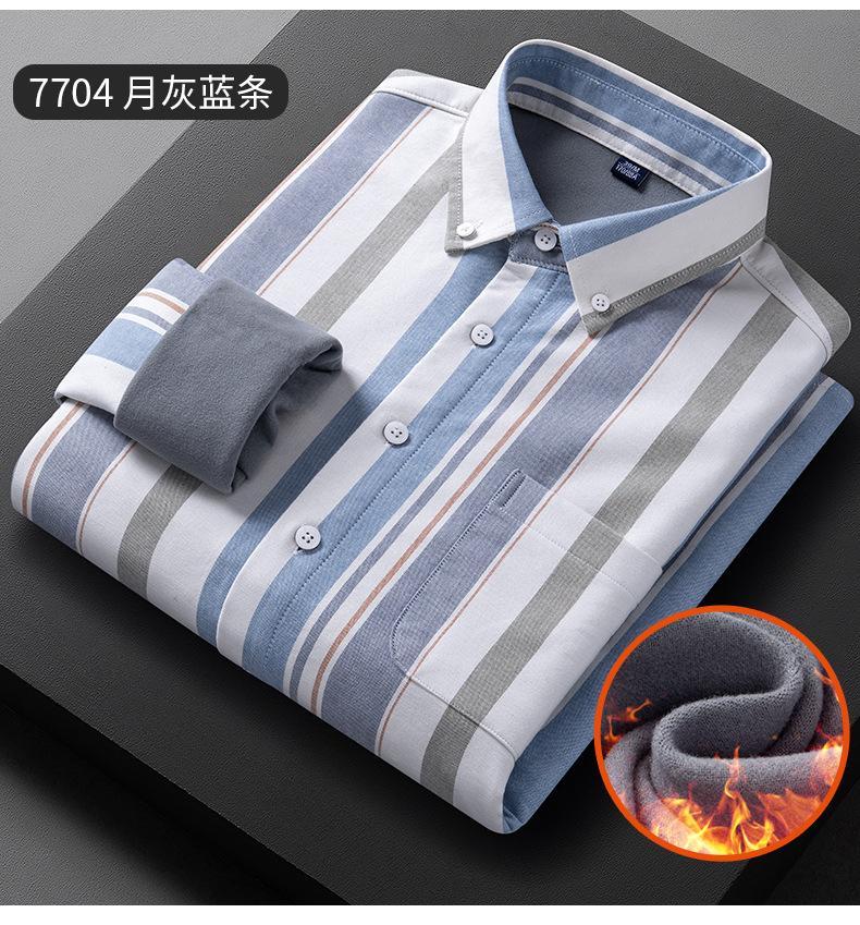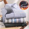 Camisa de Algodón Oxford Hilado con Forro Polar de Invierno para Hombre a Rayas Casual Slim-Fit Adelgazante Gruesa con Forro Polar Cálida