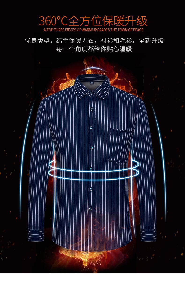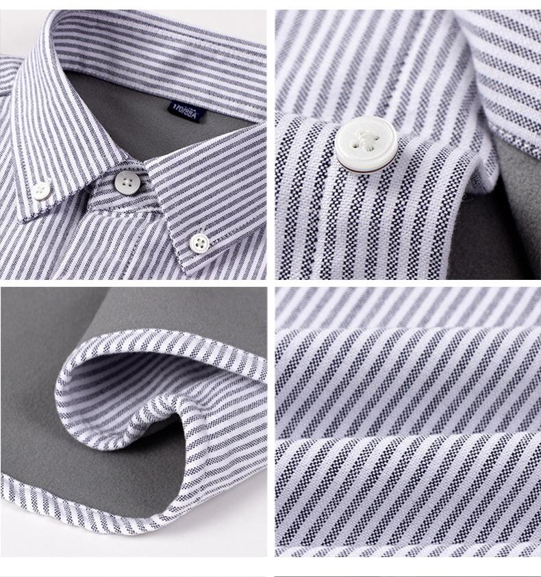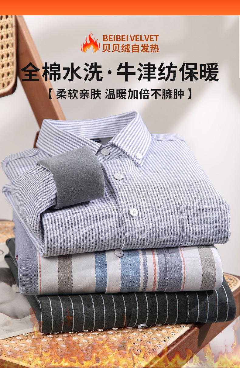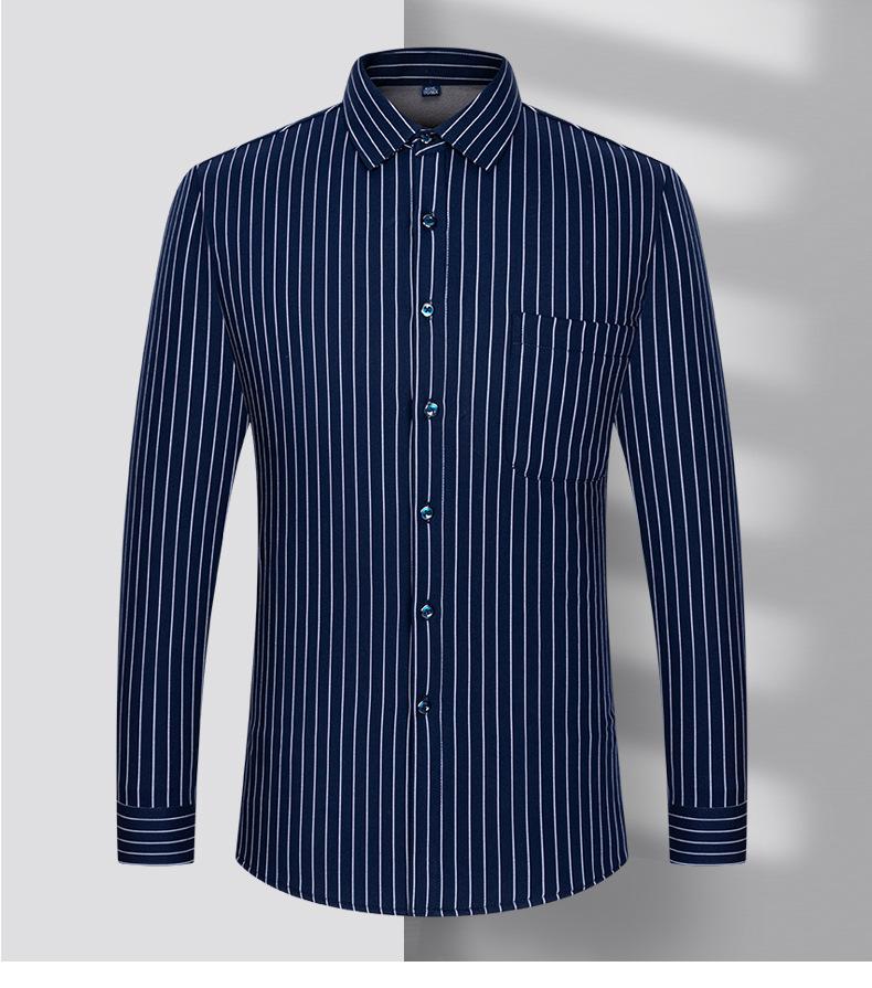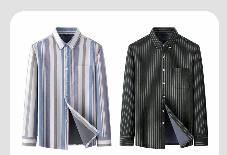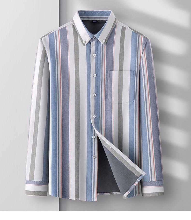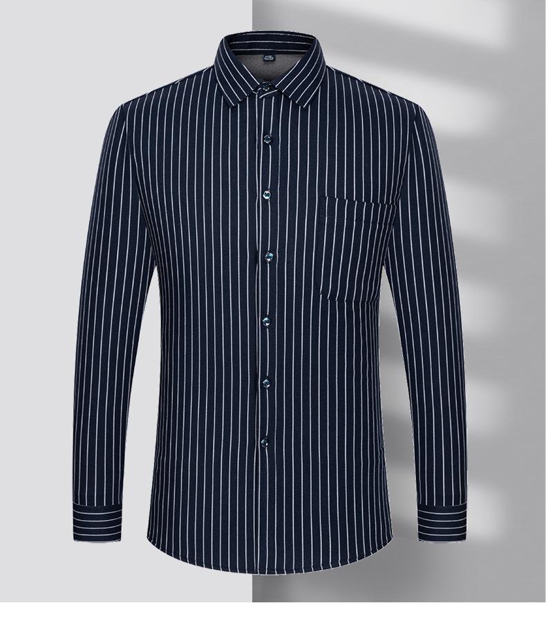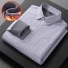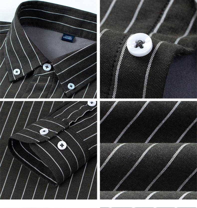 Camisa de Algodón Oxford Hilado con Forro Polar de Invierno para Hombre a Rayas Casual Slim-Fit Adelgazante Gruesa con Forro Polar Cálida