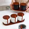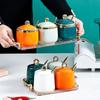 Juego de tres piezas de tarro de cerámica para condimentos, para cocina nórdica, con cuchara, salero y azucarero.